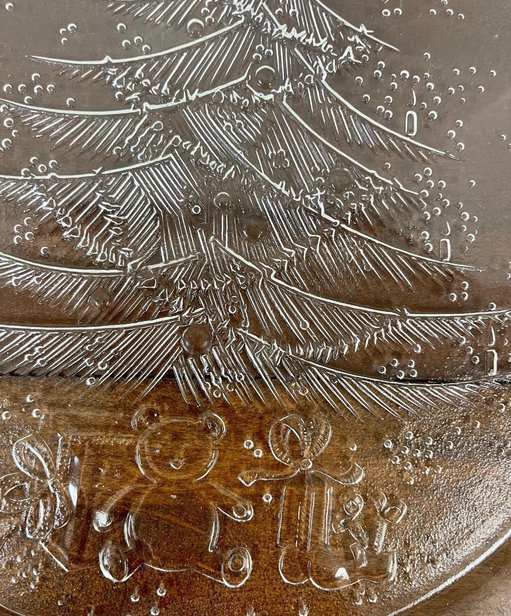 Embossed Pressed Glass Seasonal Christmas Holiday Serving Platter Plate. In good used condition.