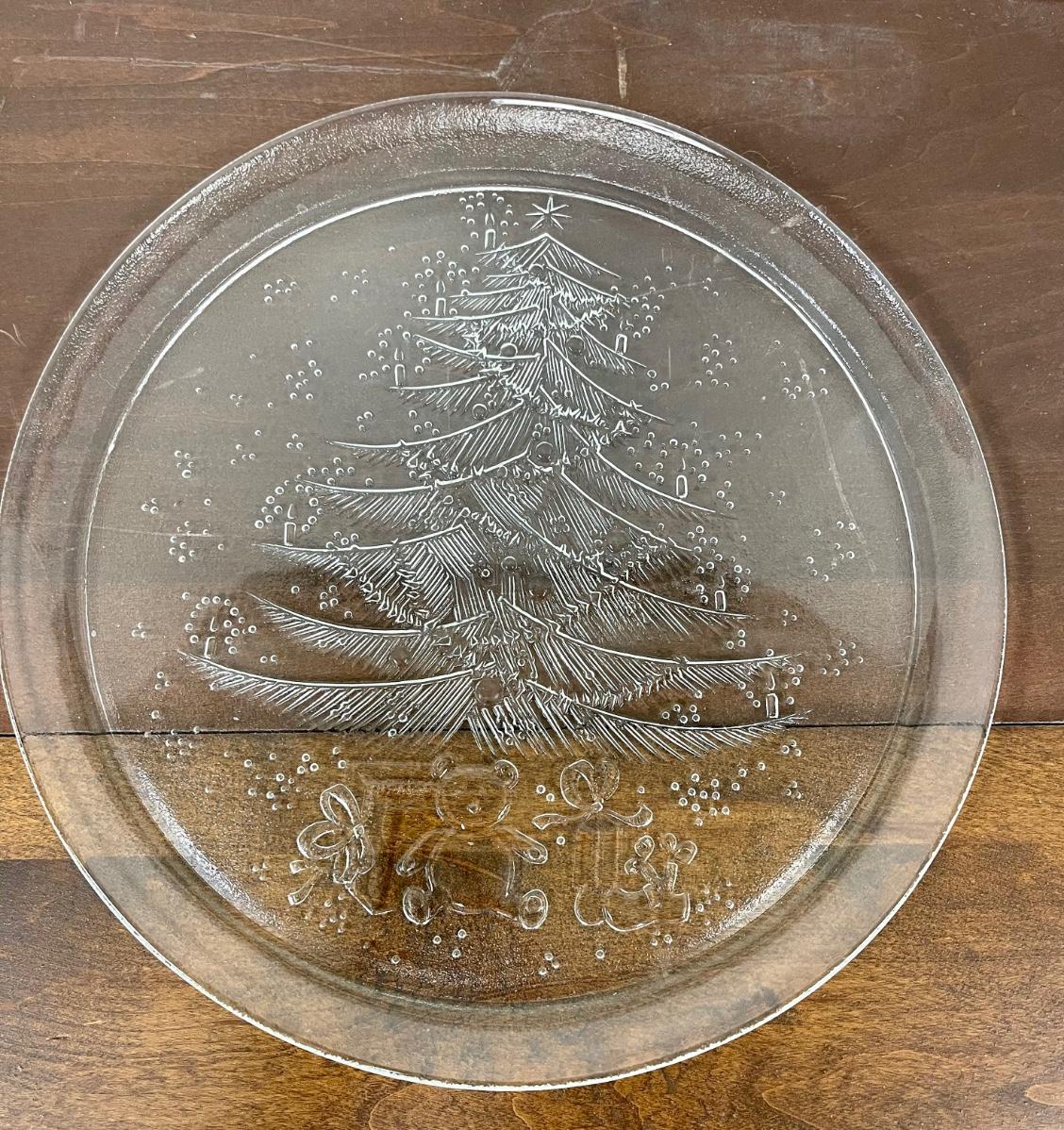Embossed Pressed Glass Seasonal Christmas Holiday Serving Platter Plate