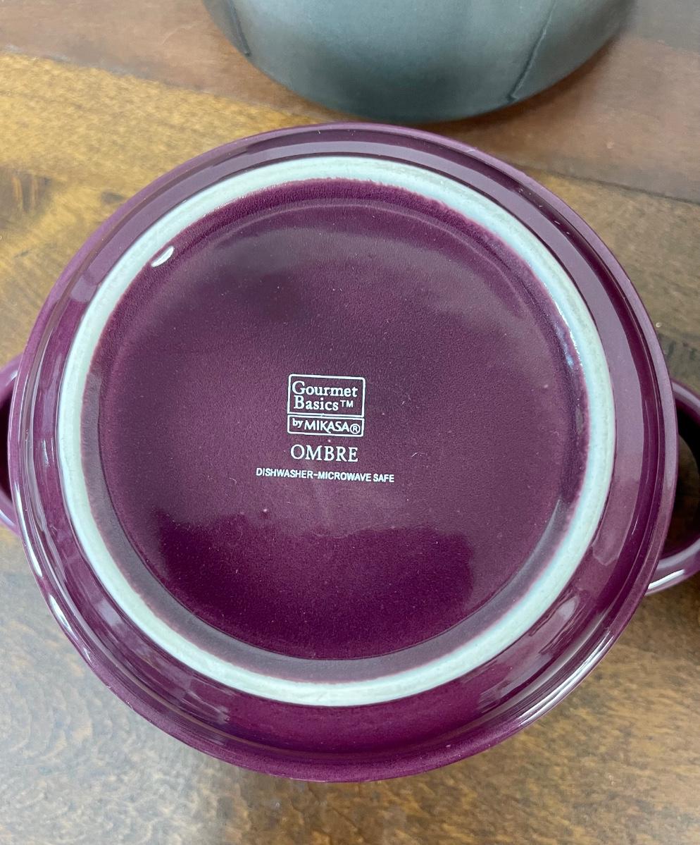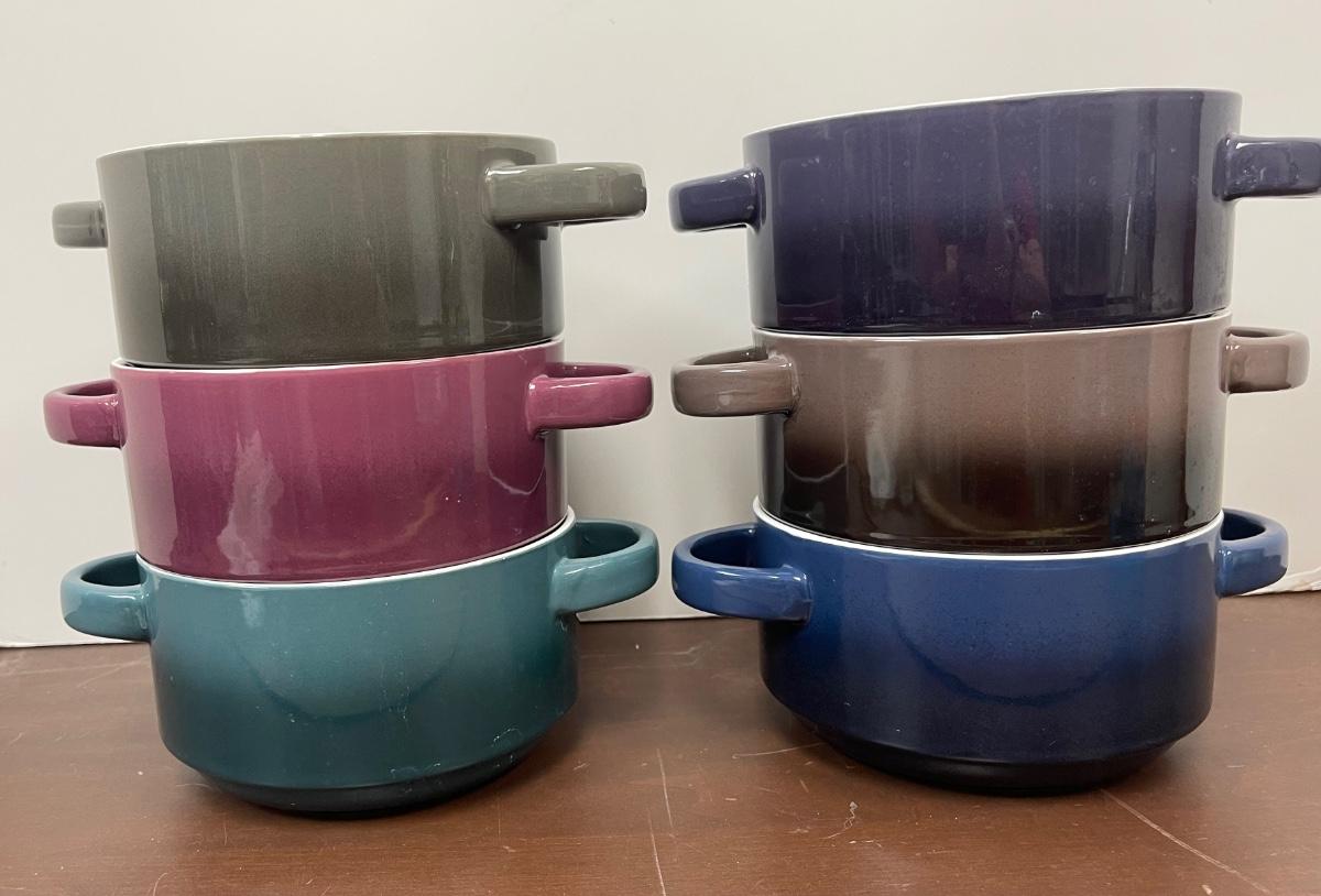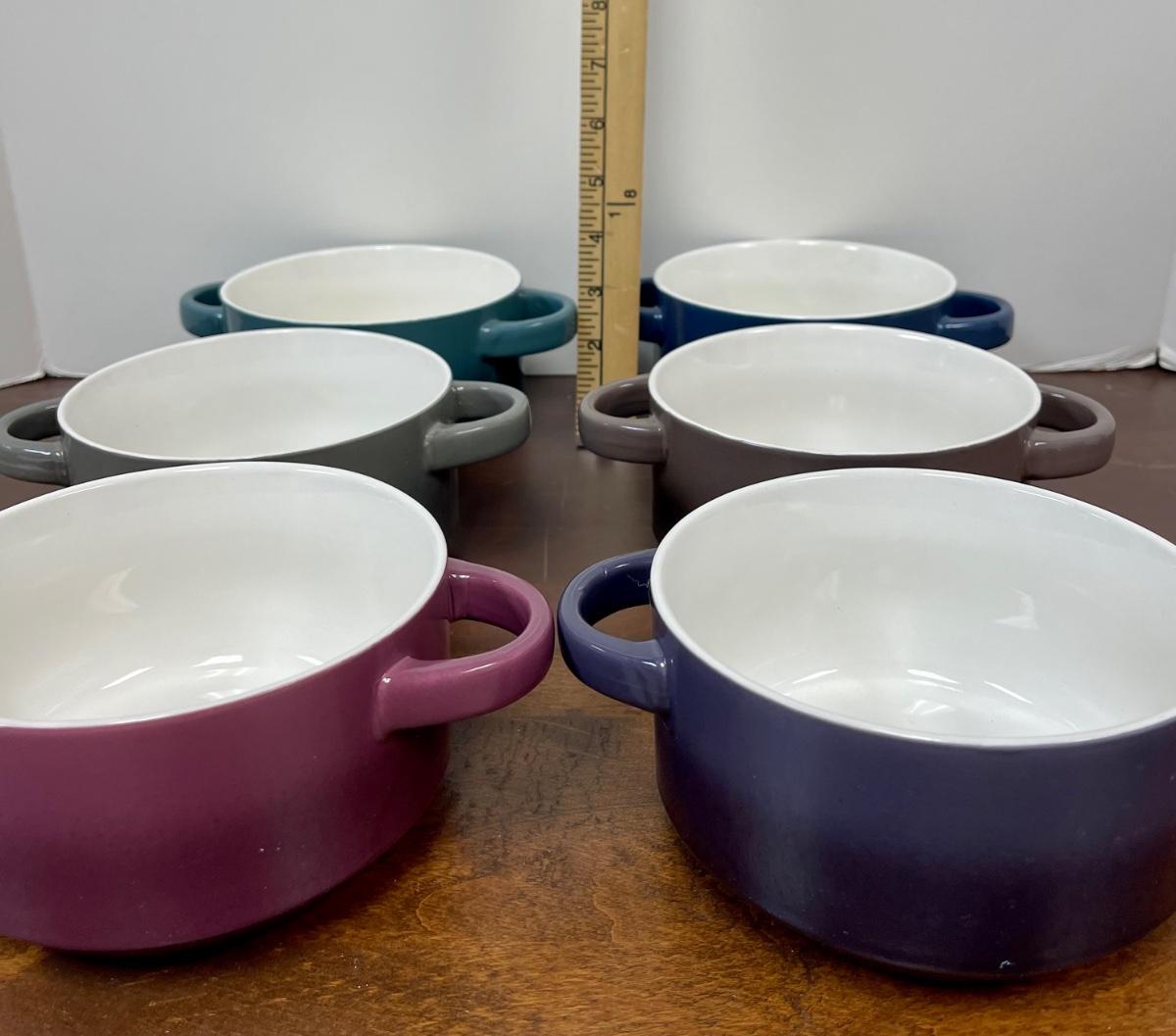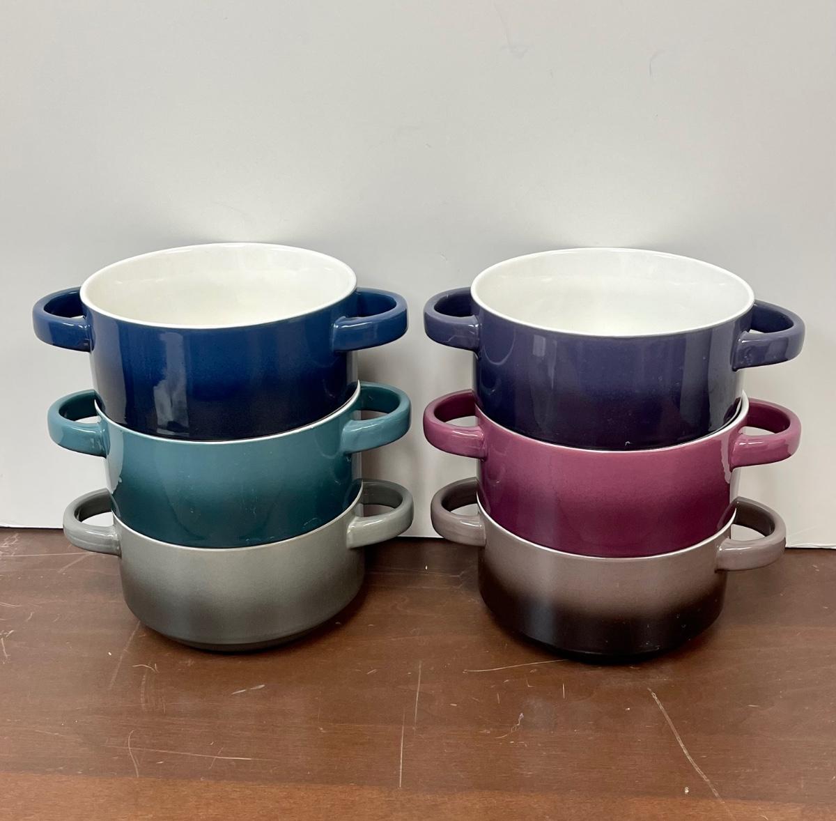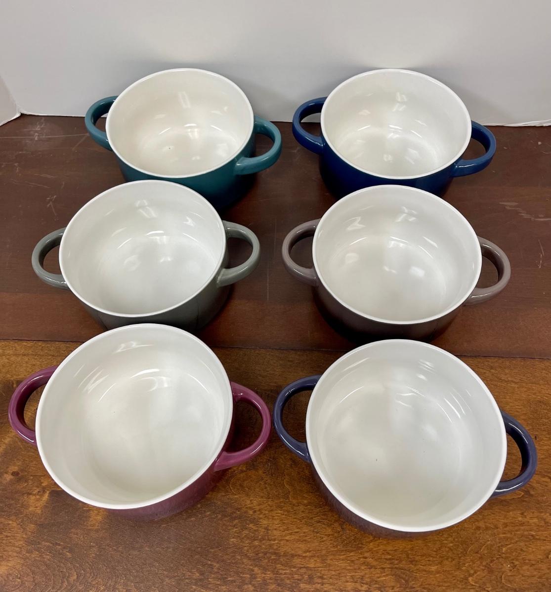 Gourmet Basics by Mikasa Ombre Set of 6" double Handle Individual Casserole Baking Dishes. Different colors, in good condition.