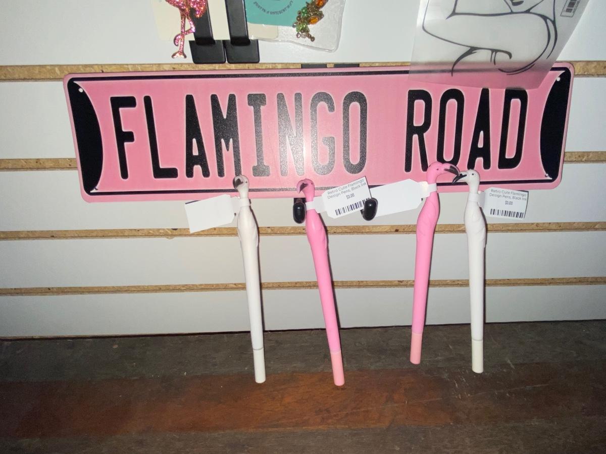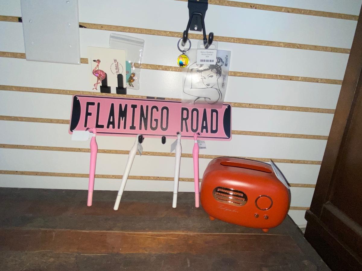 FLAMINGO ROAD SIGN AND A TISSUE BOX HOLDER