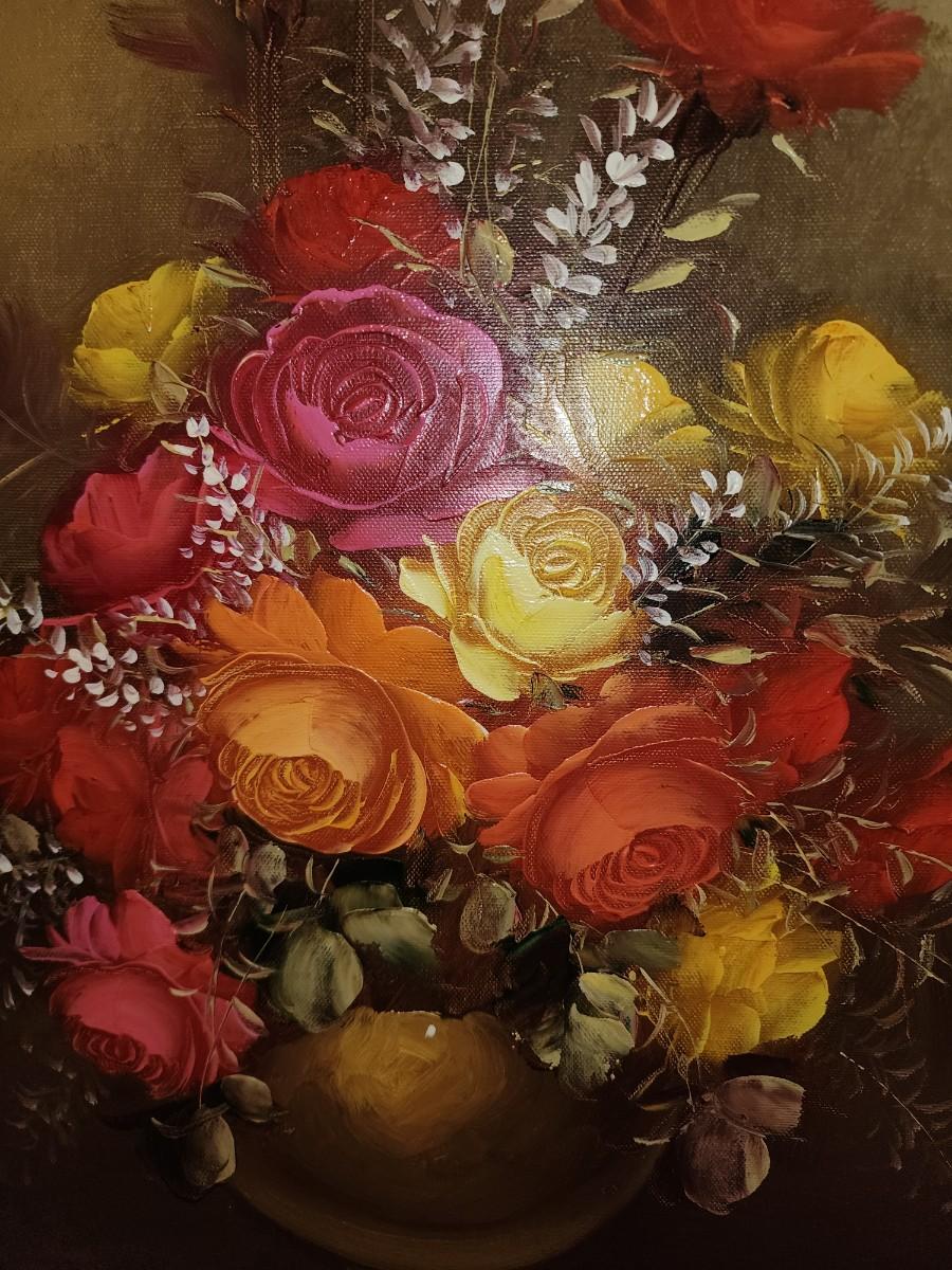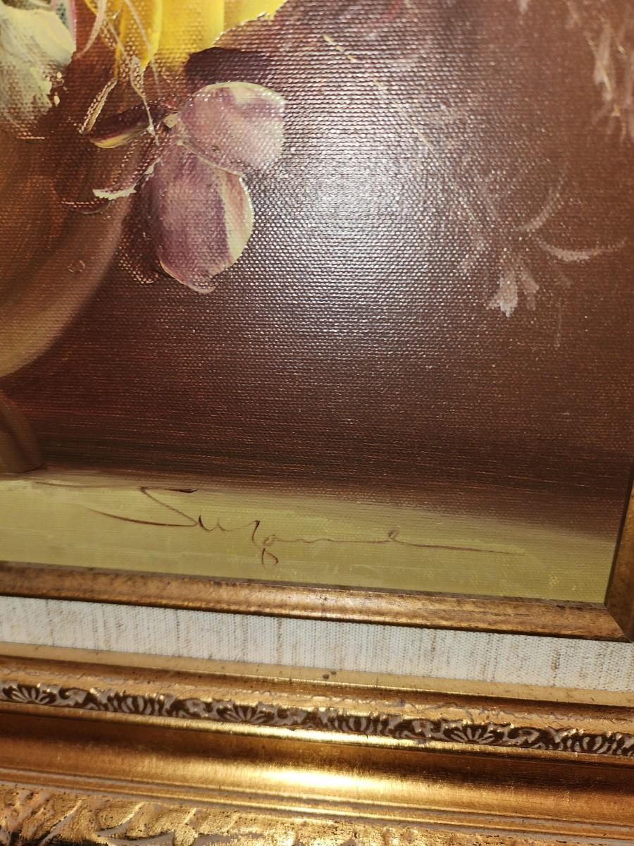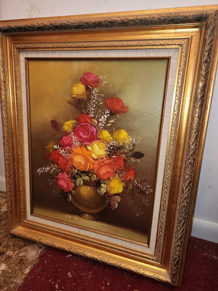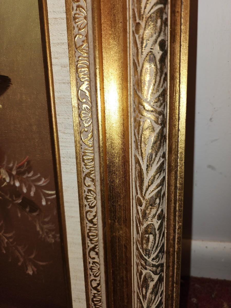 24 inches wide and 30 inches tall in gold painted wood frame.