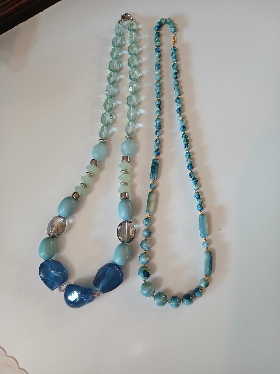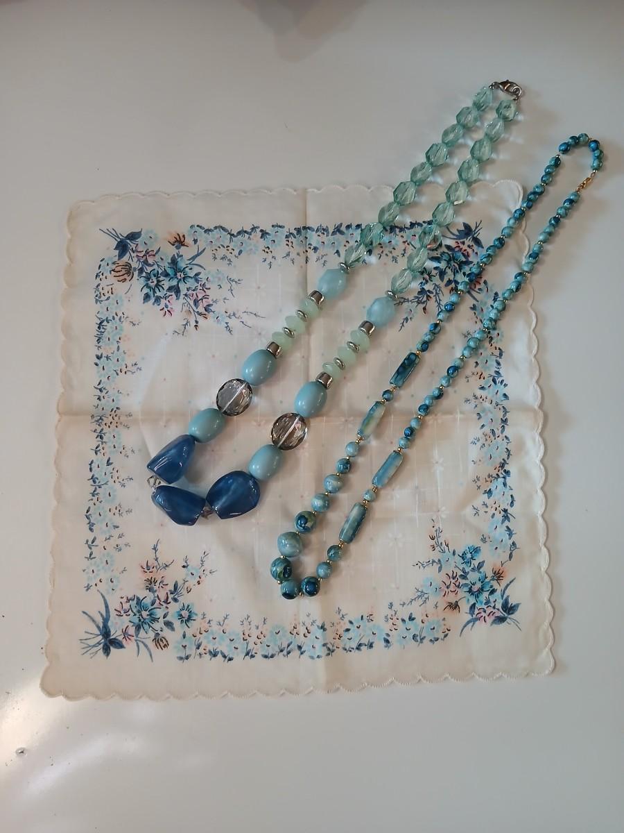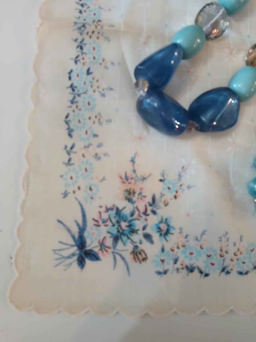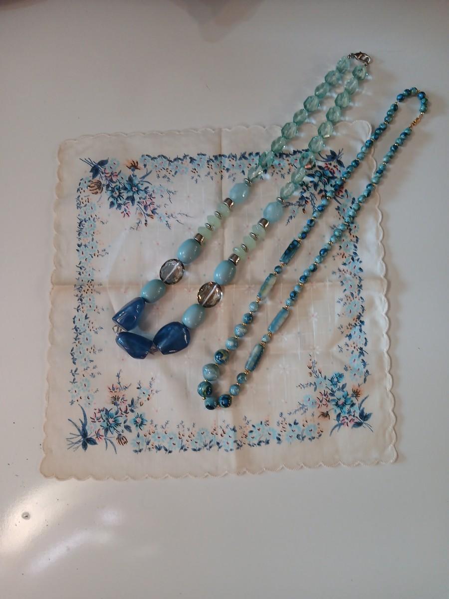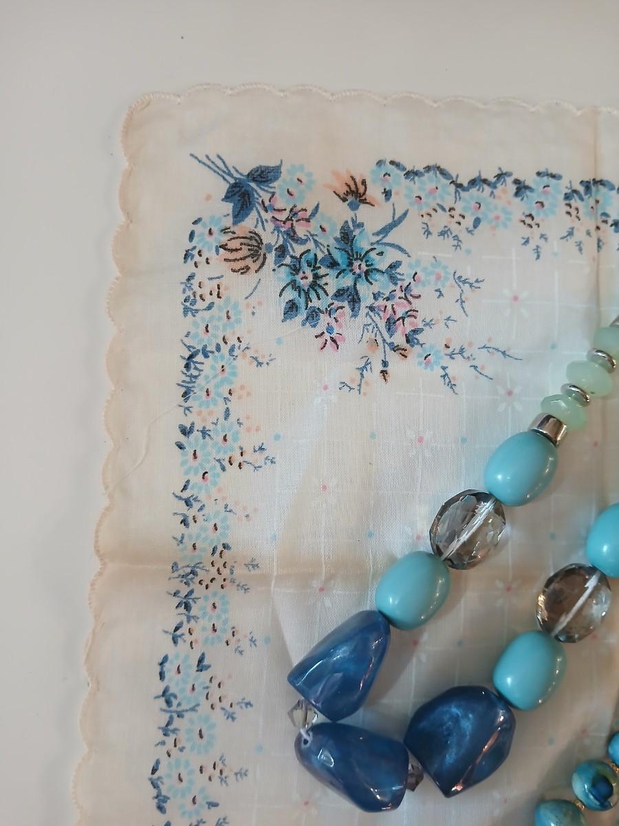 Floral silk scarf with two vintage blue beaded necklaces - pretty!