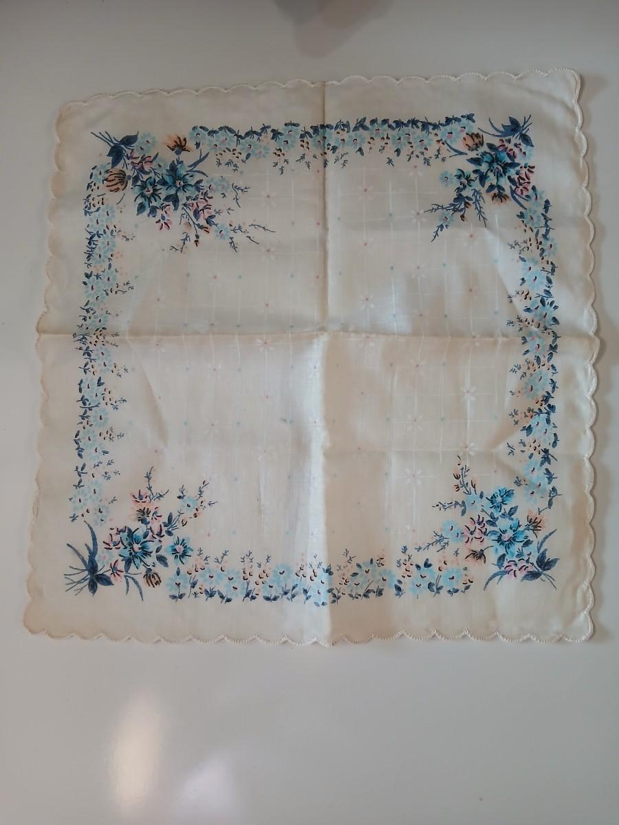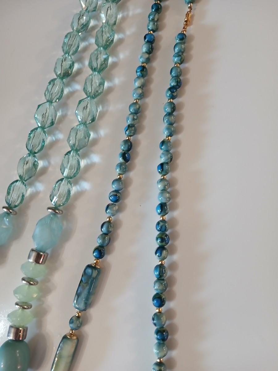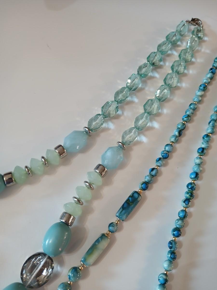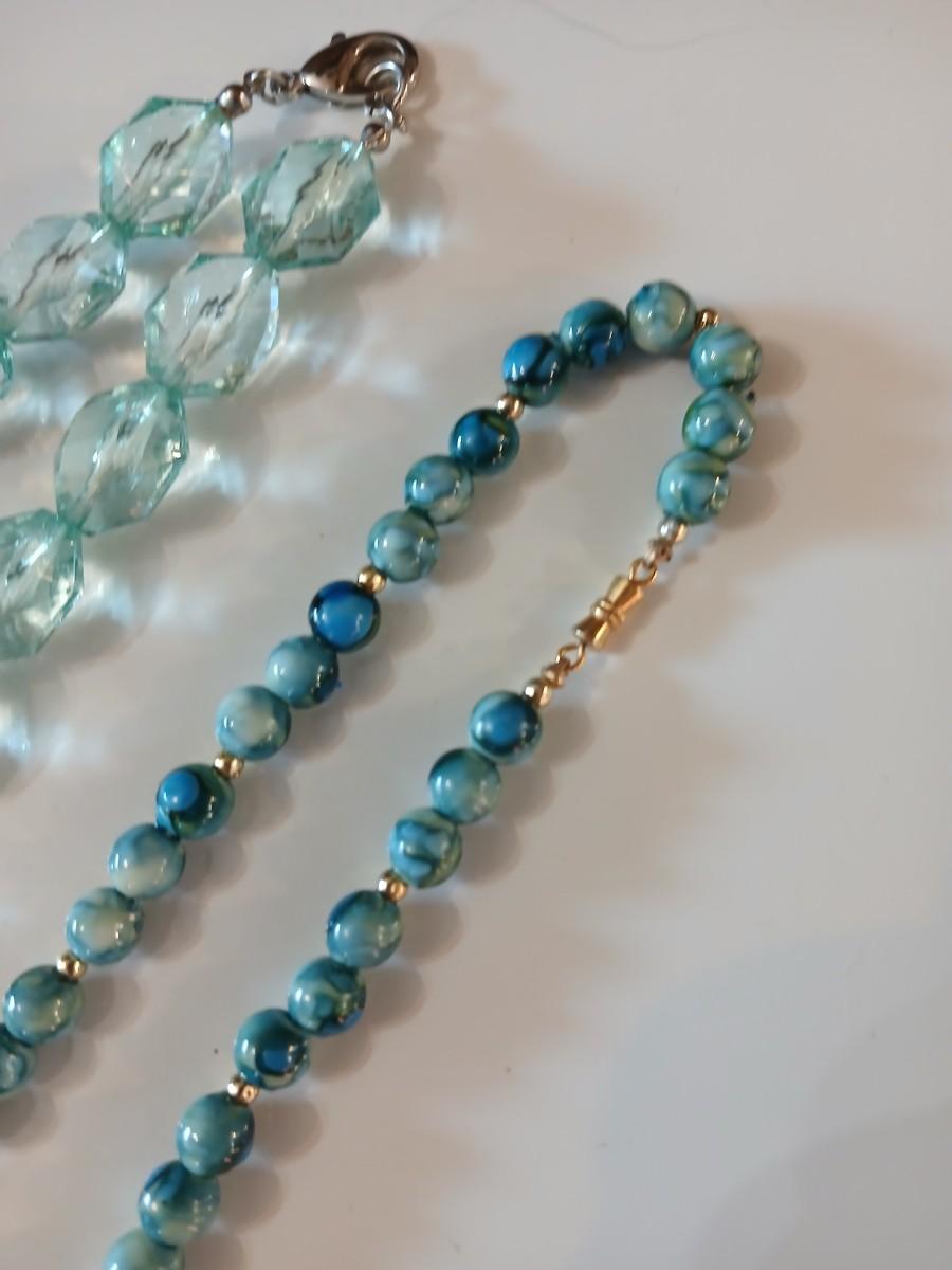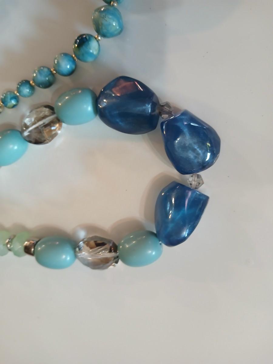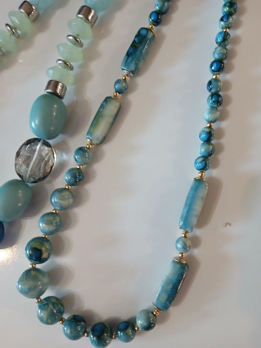 Floral silk scarf with two vintage blue beaded necklaces - pretty!