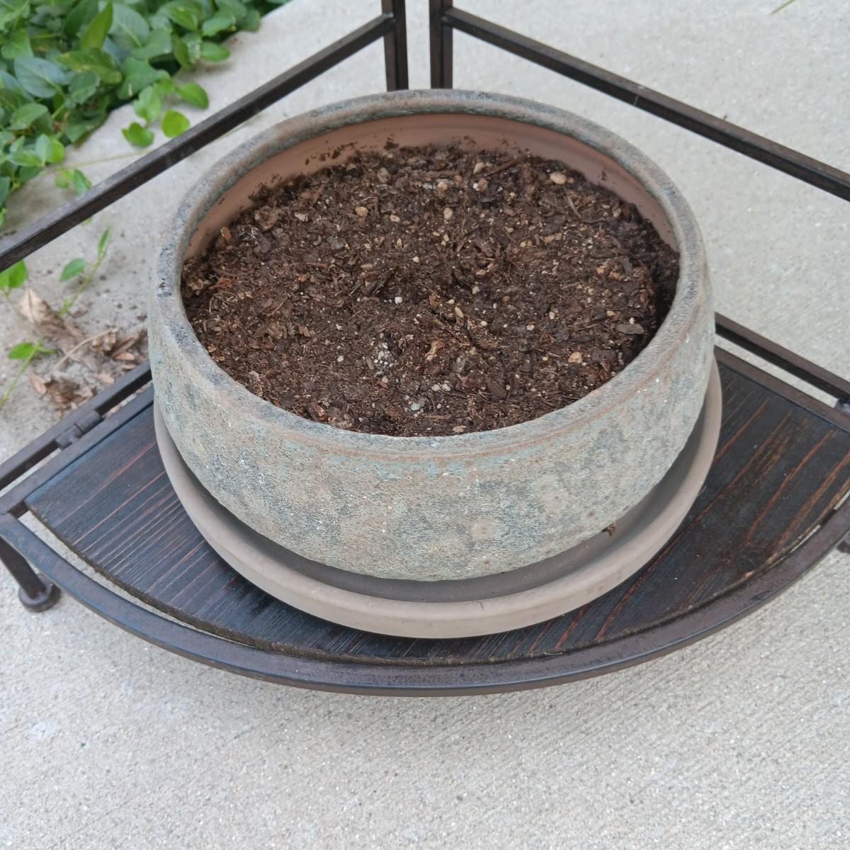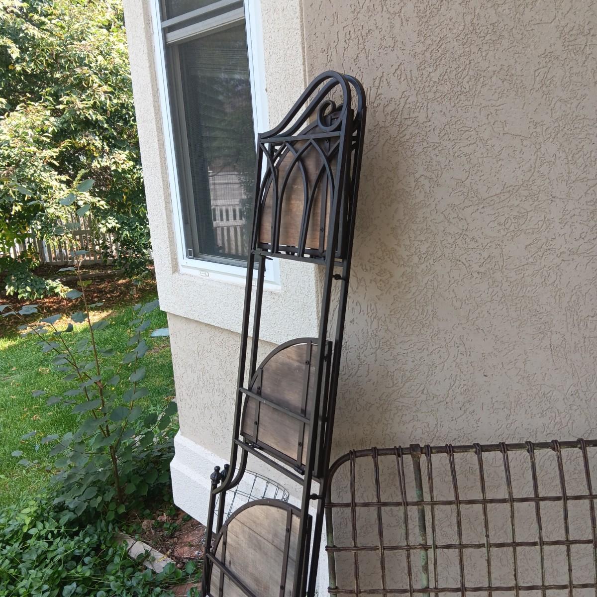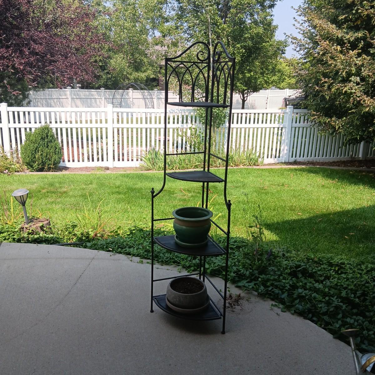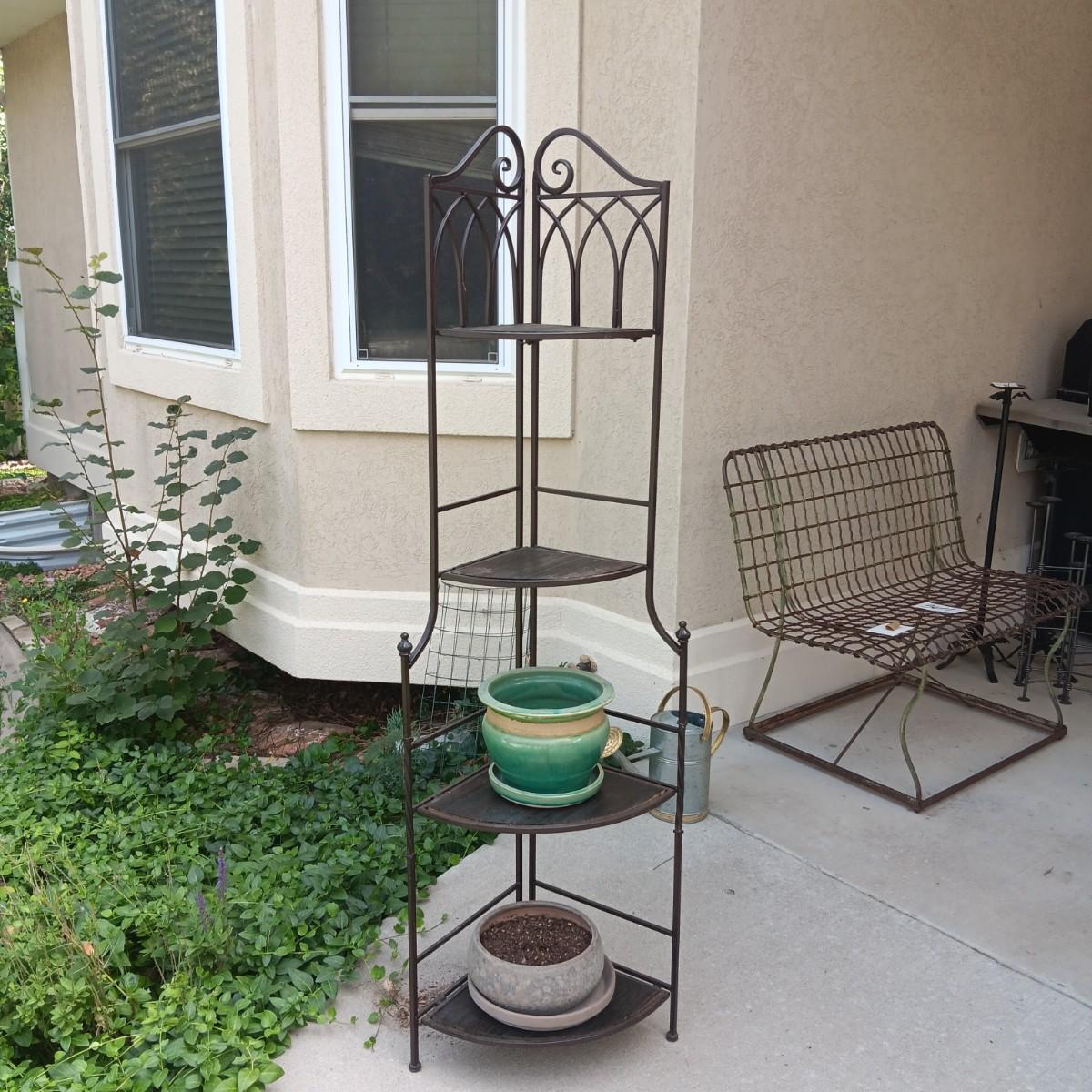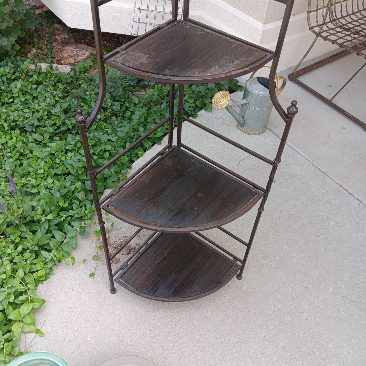 FOLDING CORNER SHELF AND 2 FLOWER POTS