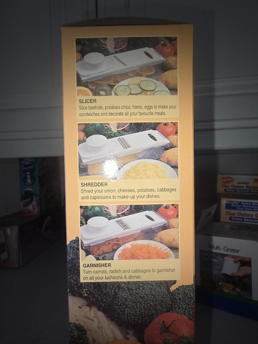 It slices, it dices, it Juliannes, it shreds. Perfect for the kitchen. As seen on tv.