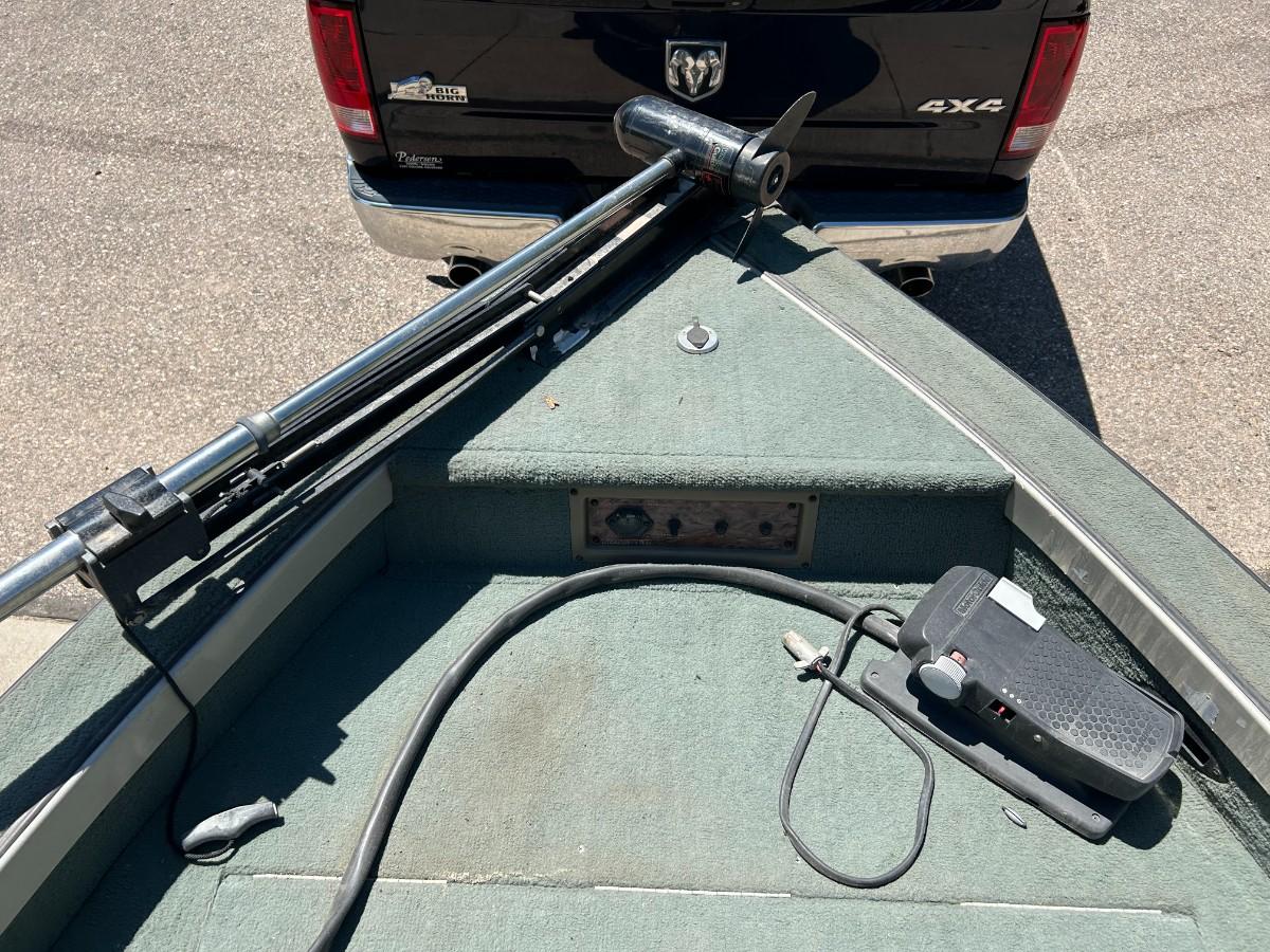 The motor needs dewinterized and serviced. Includes life vests, fishing nets, rod holders, extra oar, Fish finder & trolling motor.