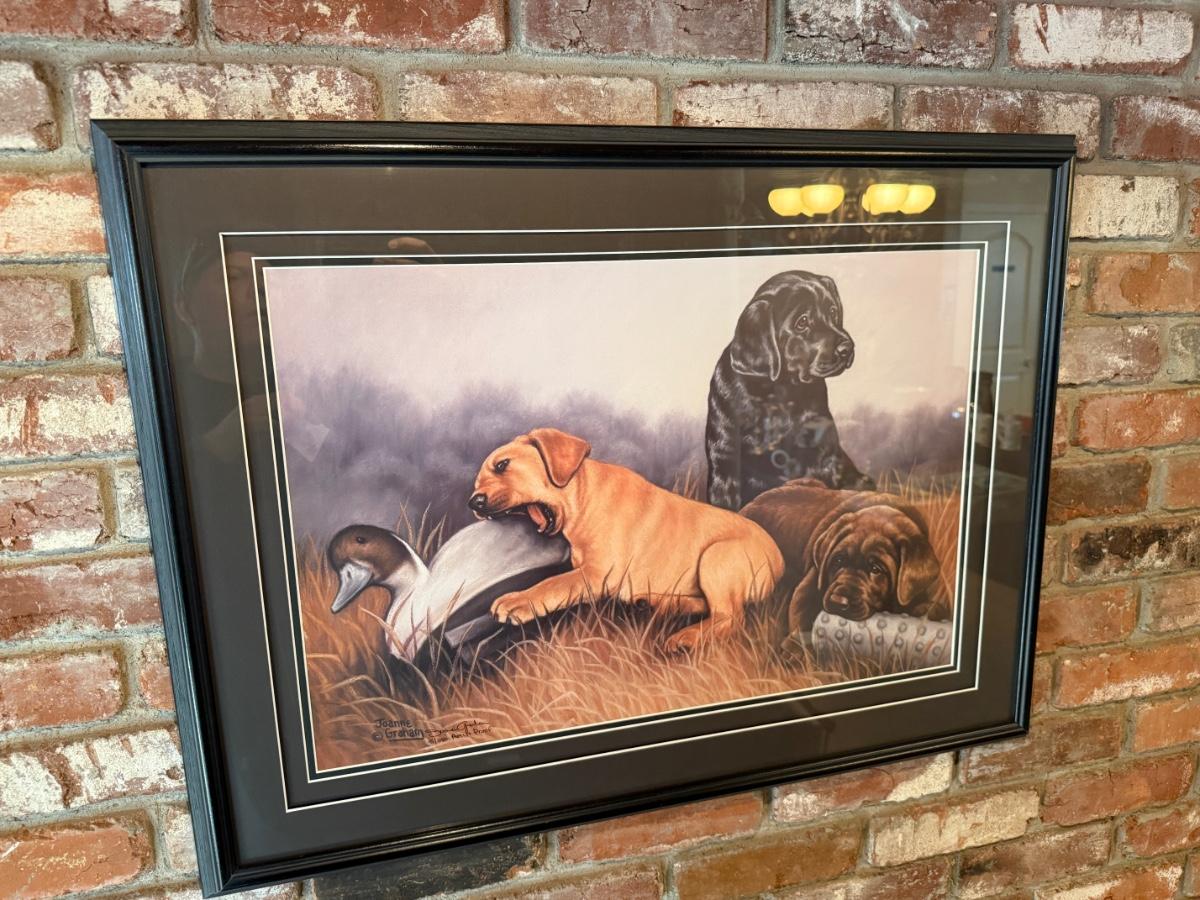 Framed art of 3 Lab Pups & Duck Decoy by Joanne Graham 5 of 250 artist proof