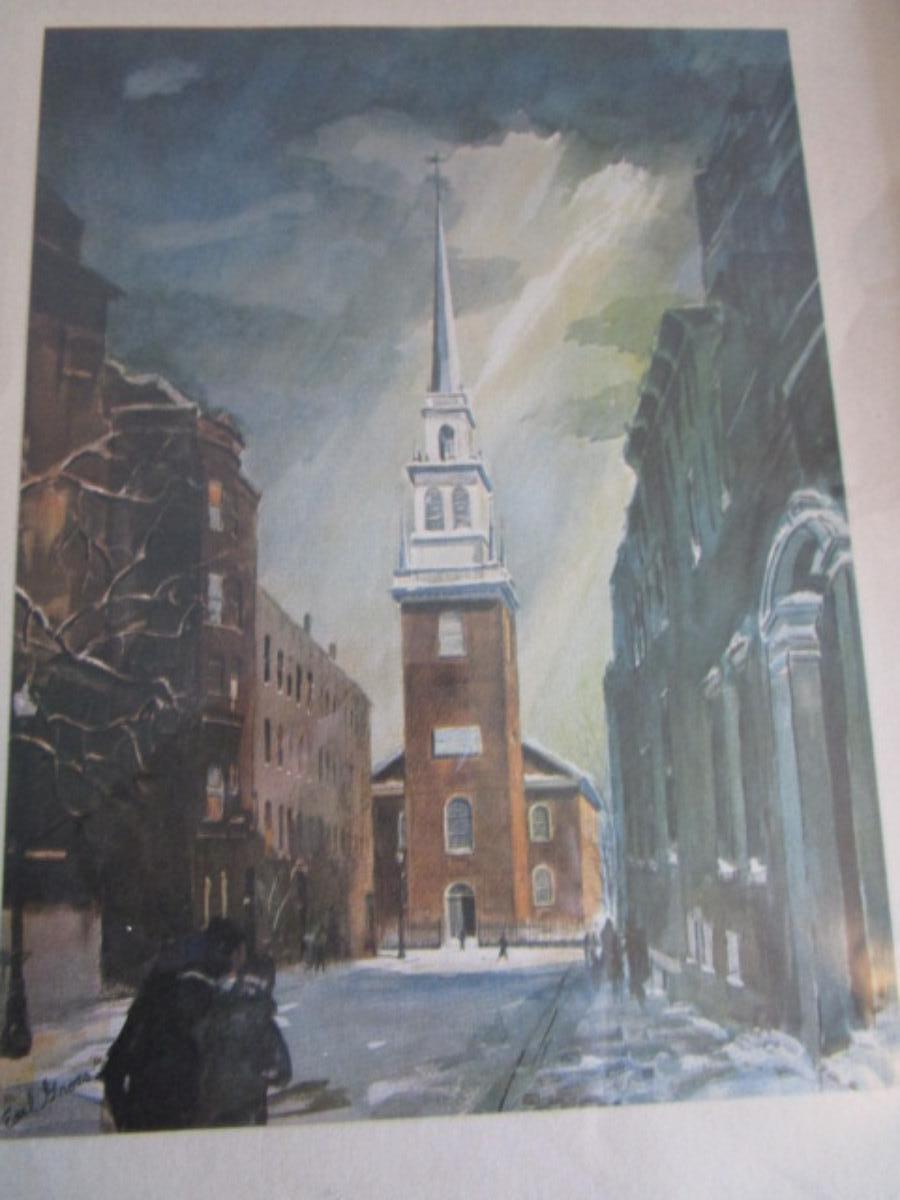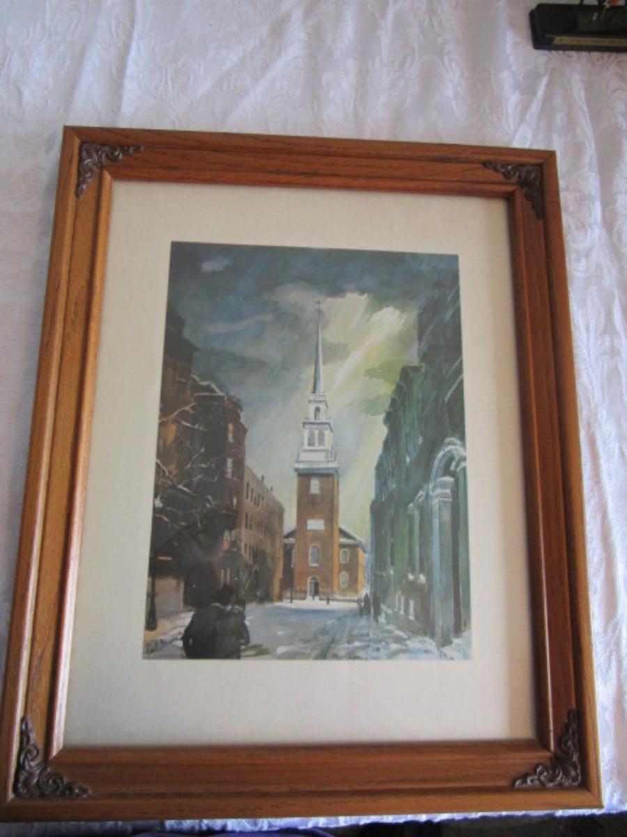 Framed Picture - Artist Earl Gross, Old North Church Boston Paul Revere American Revolution