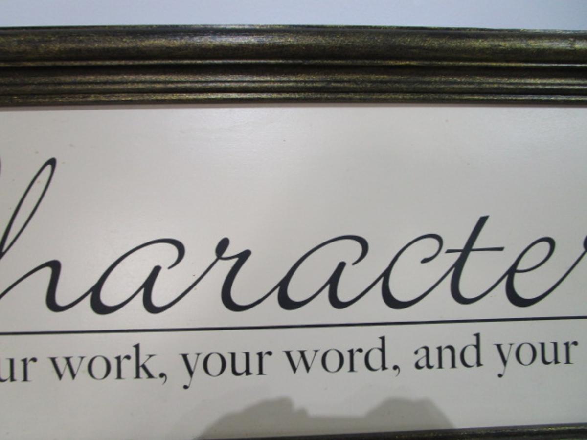 "Character, Be true to your work, your word, and your friends", 3' x 14"