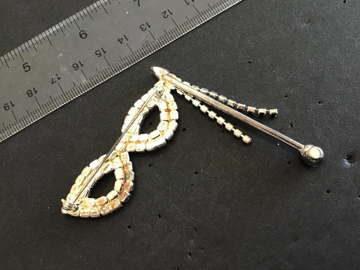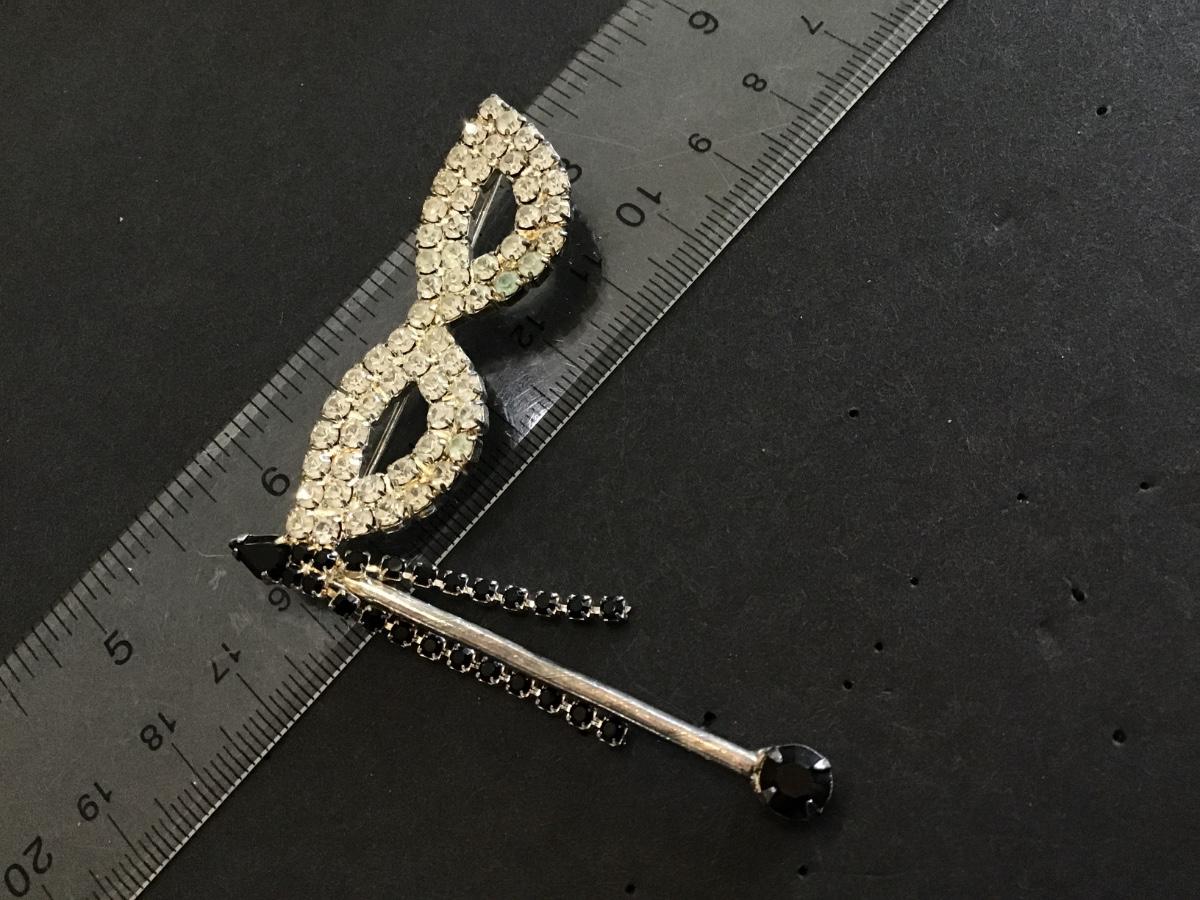French Quarter Black White Rhinestone Masquerade Ball Brooch Vintage
