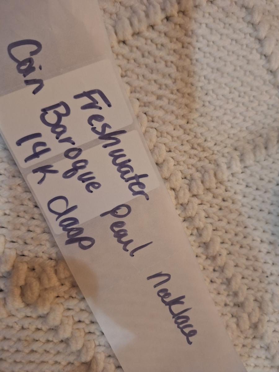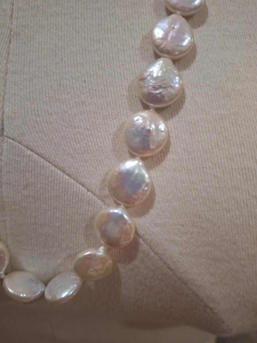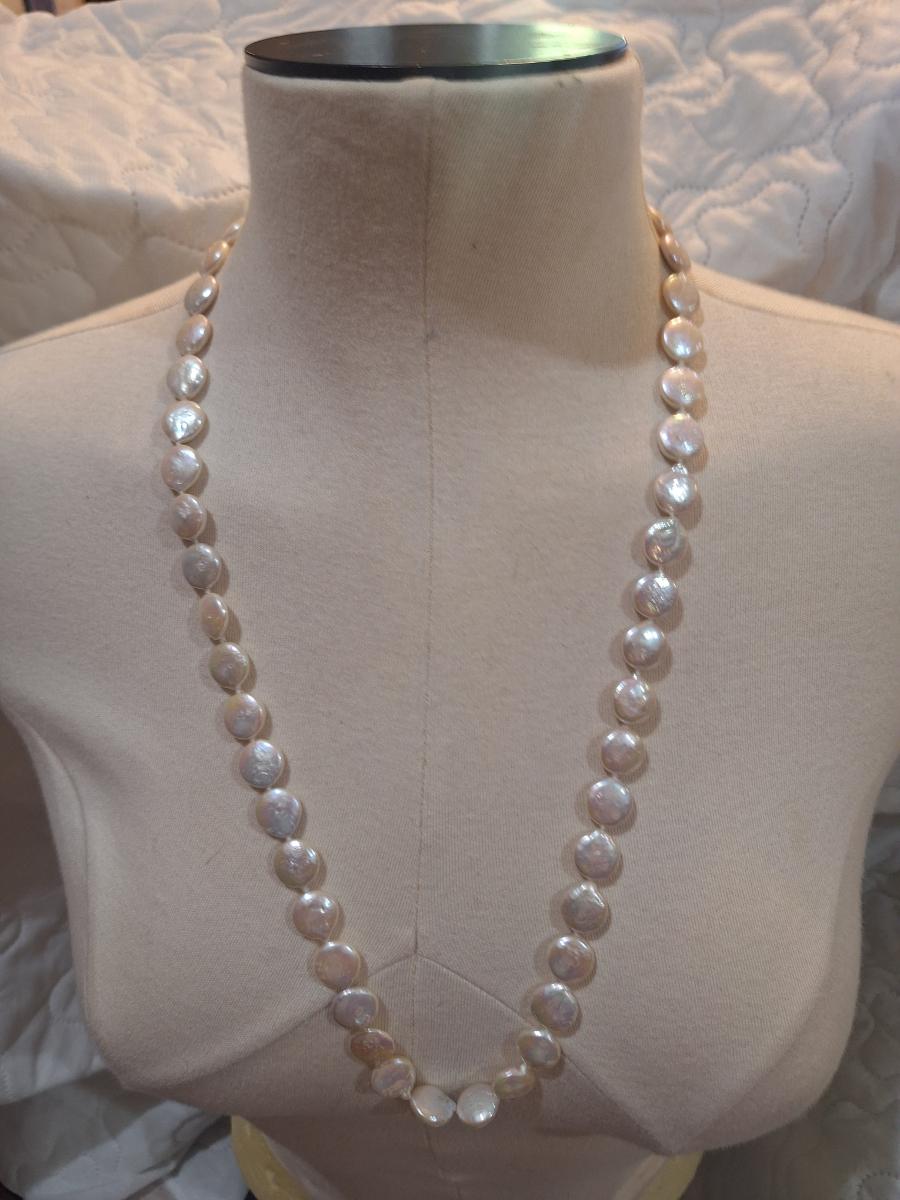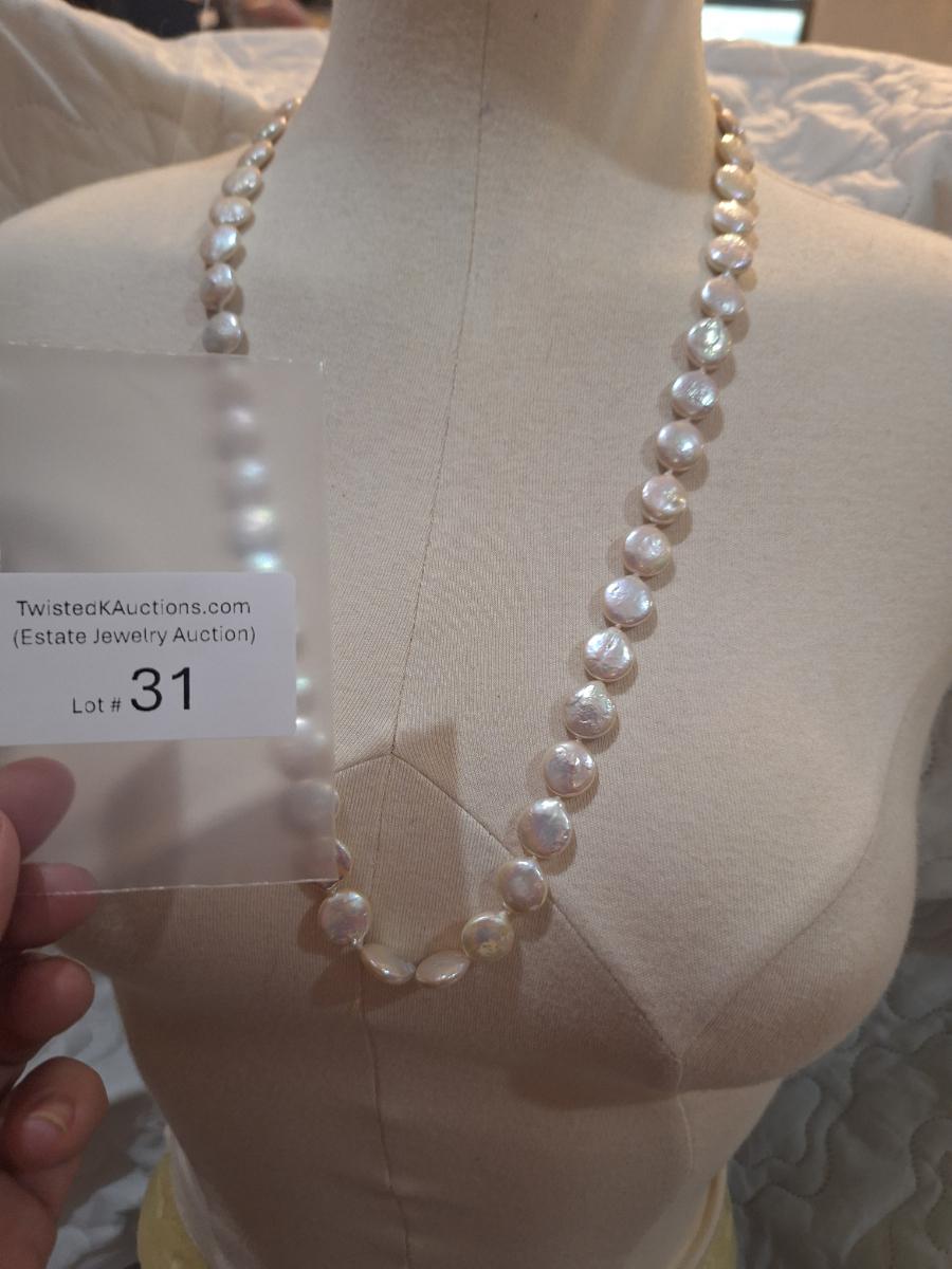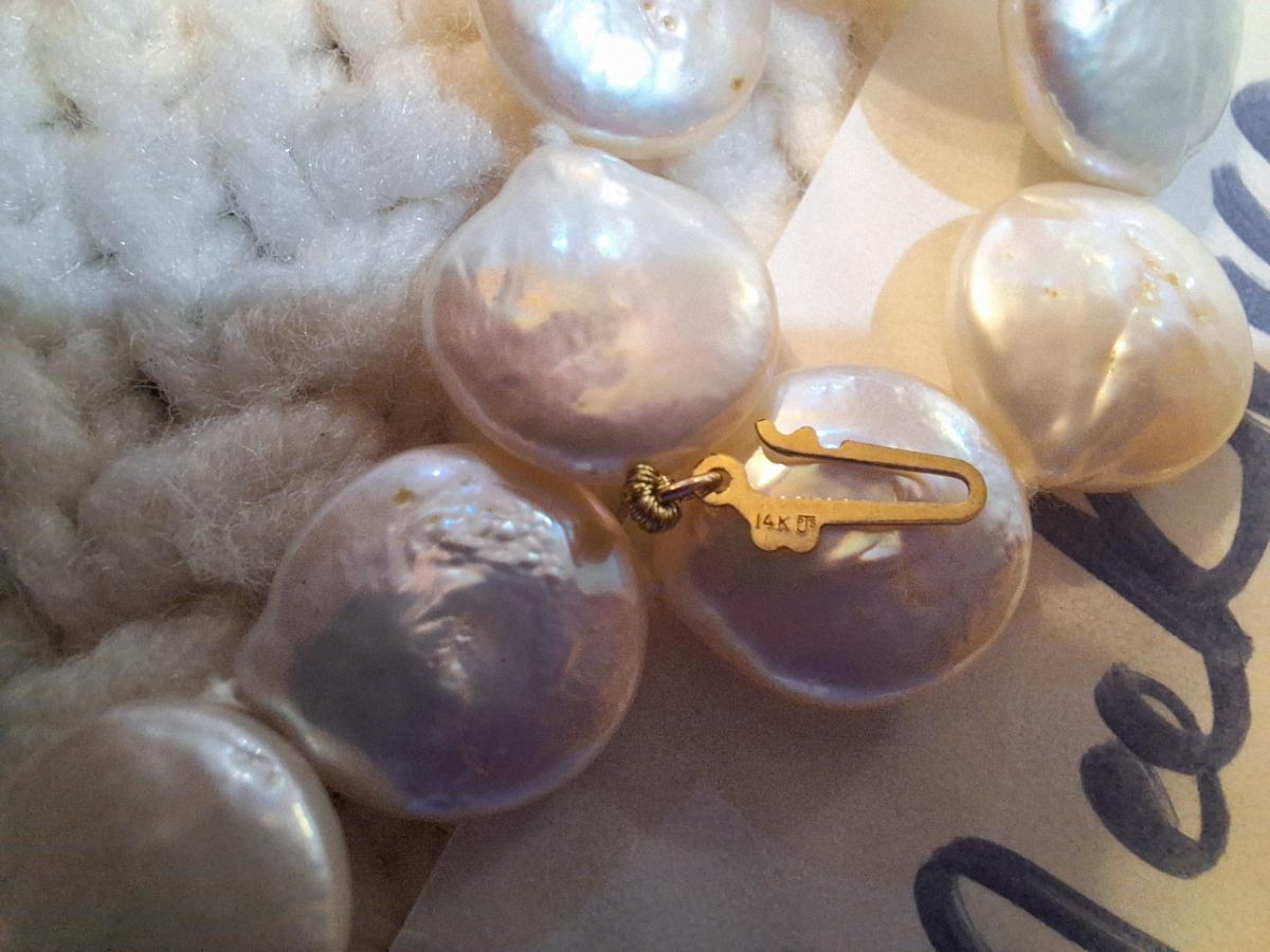Freshwater Coin Baroque Pearl Necklace -1/2" flat pearls with 14k Clasp marked SJS
