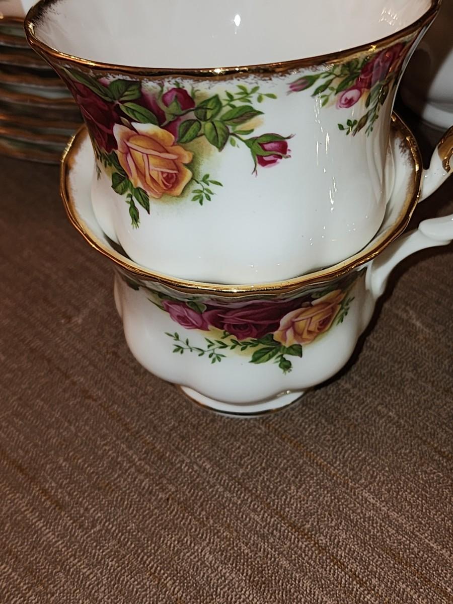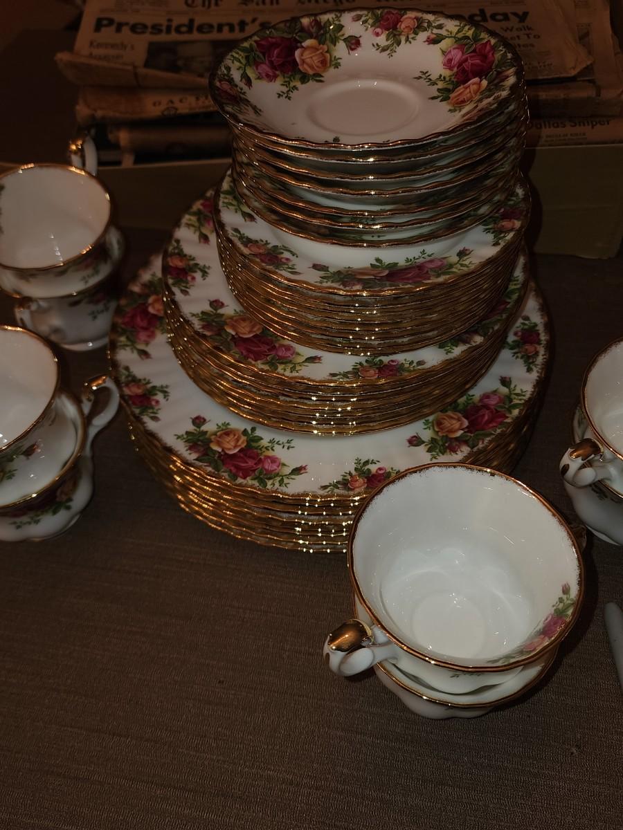 Tea cups and saucers. Salad and dinner plates and desert plates. Beautiful condition.