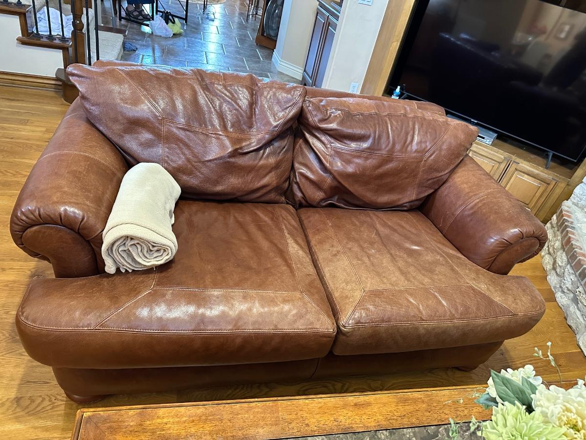 Furniture - Leather Loveseat w/throw