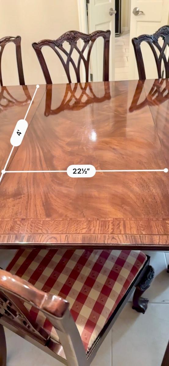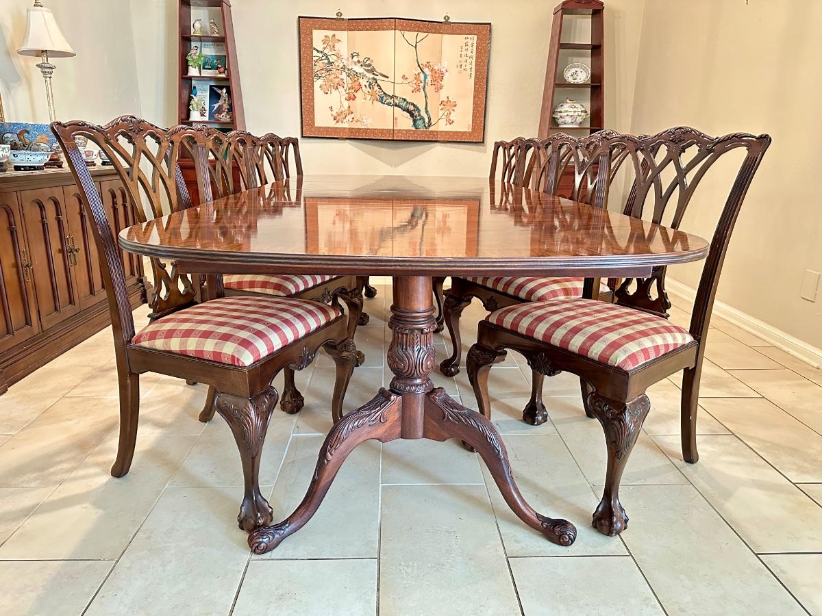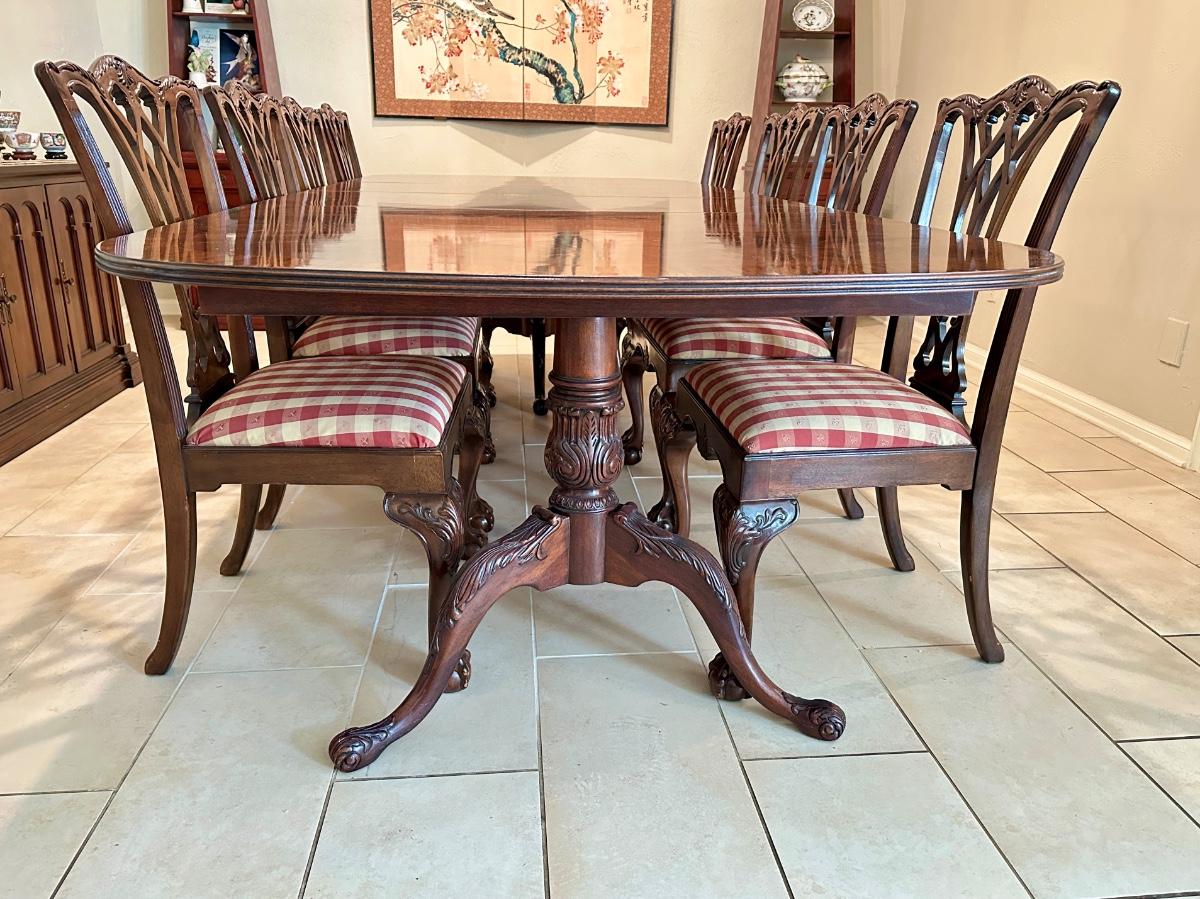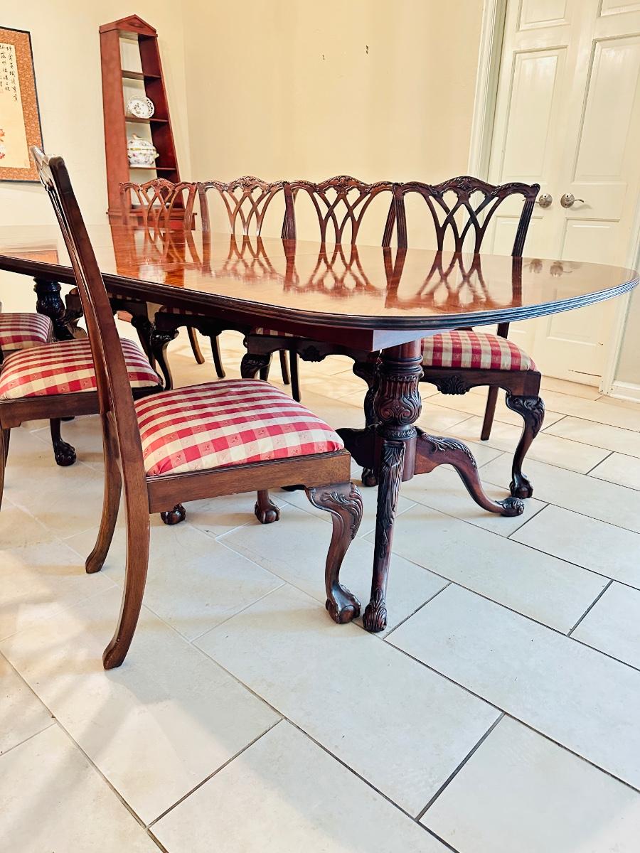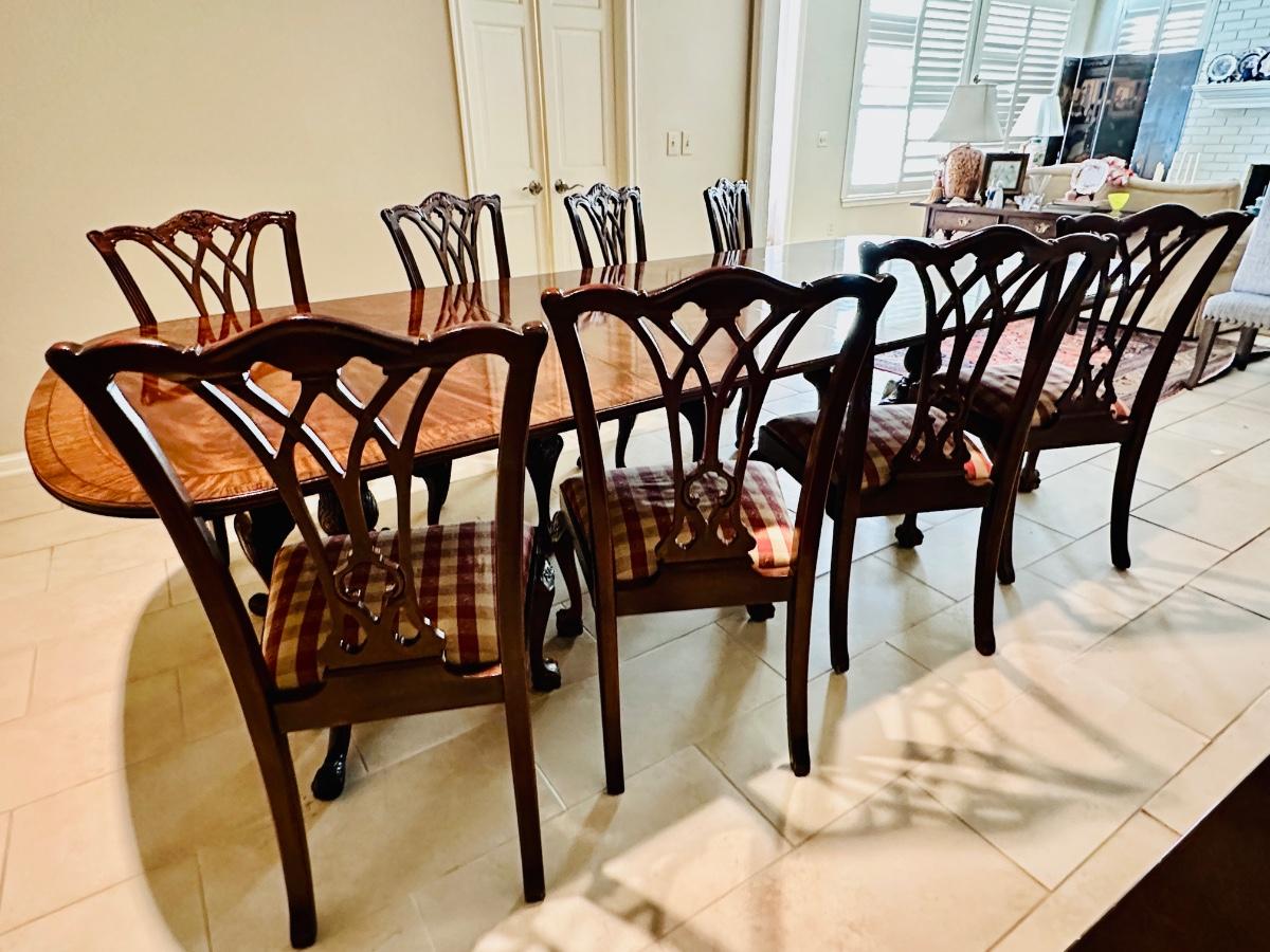 Furniture - Chippendale Table & 8 Chairs Ball & Claw with 2 leaves. Excellent Condition