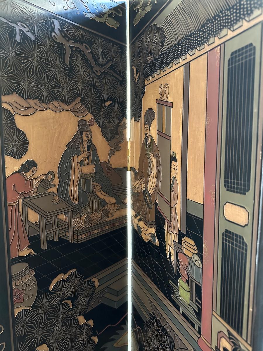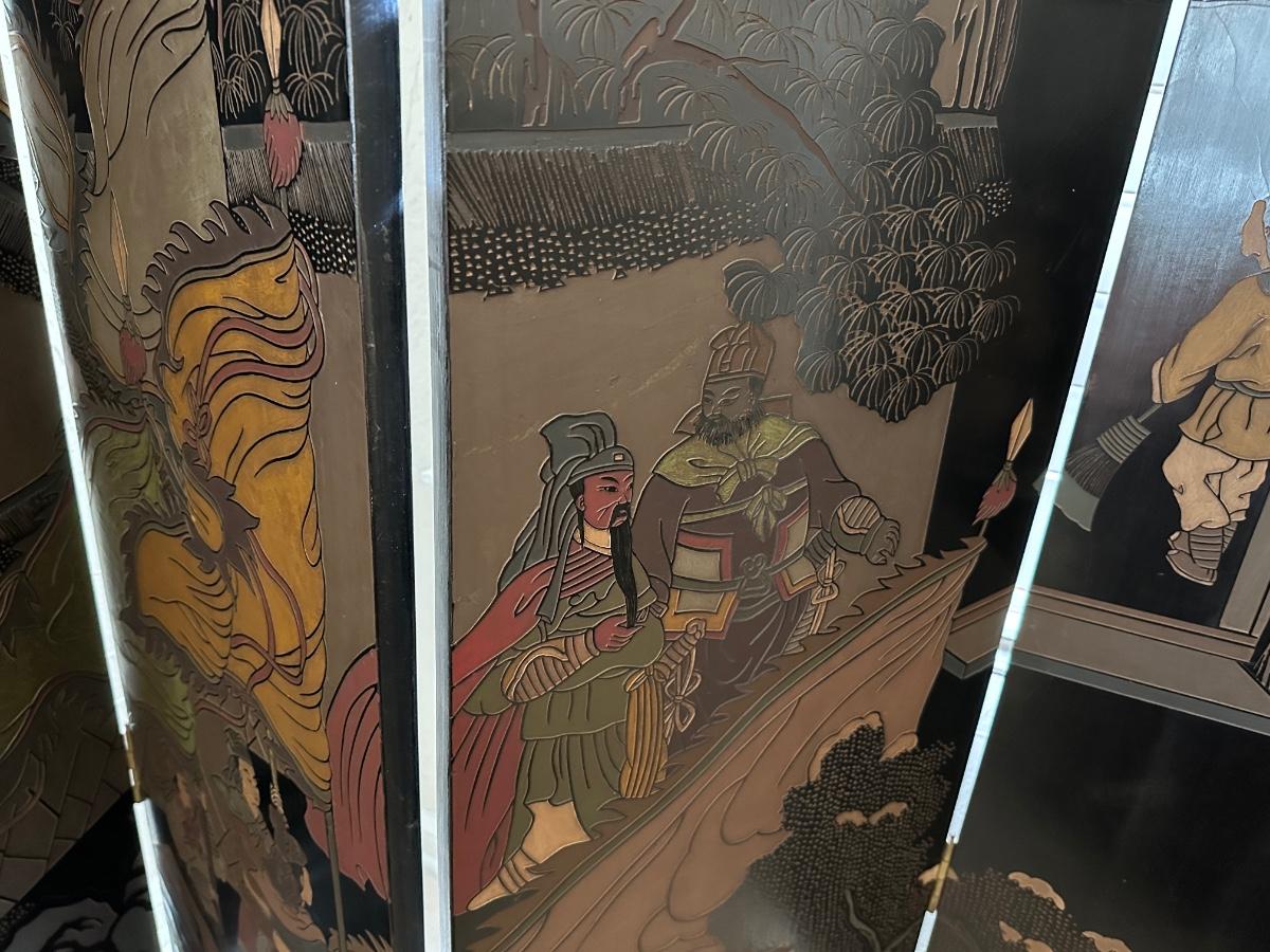 Furniture - Carved & Painted Wood Oriental Folding Room size Screen 4 Panel