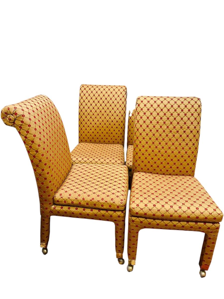 Furniture - 4 custom roll back upholstered chairs - one shows more wear
