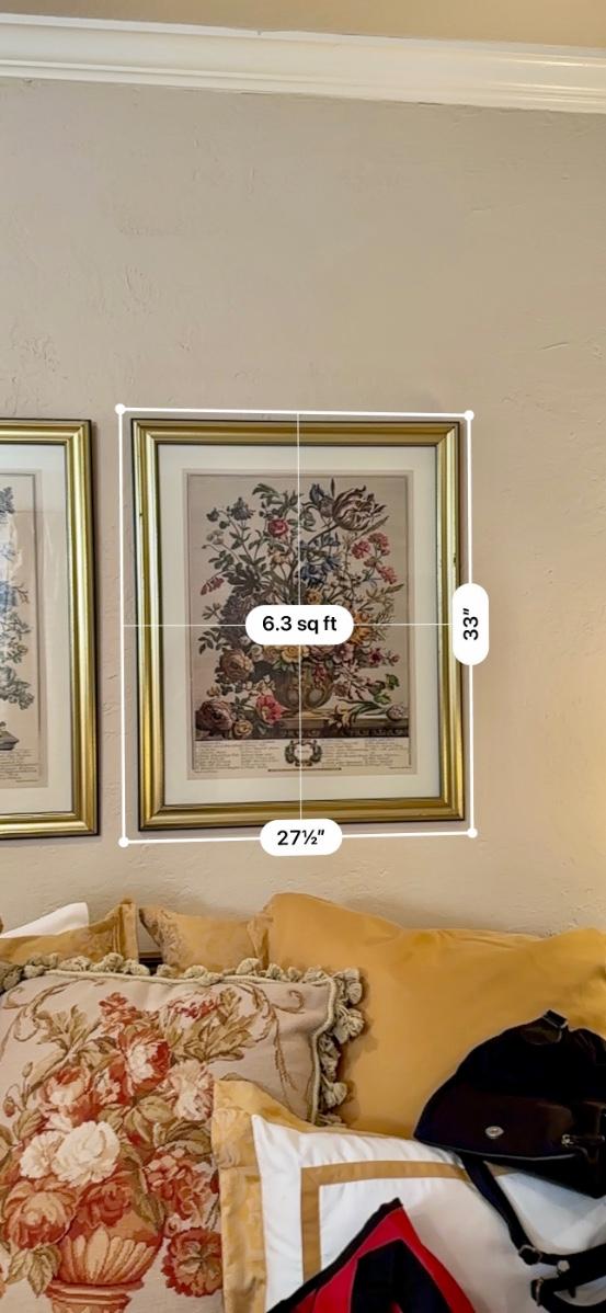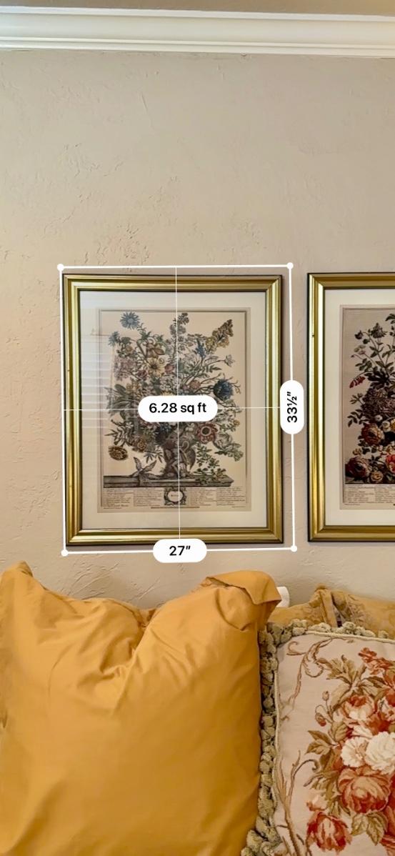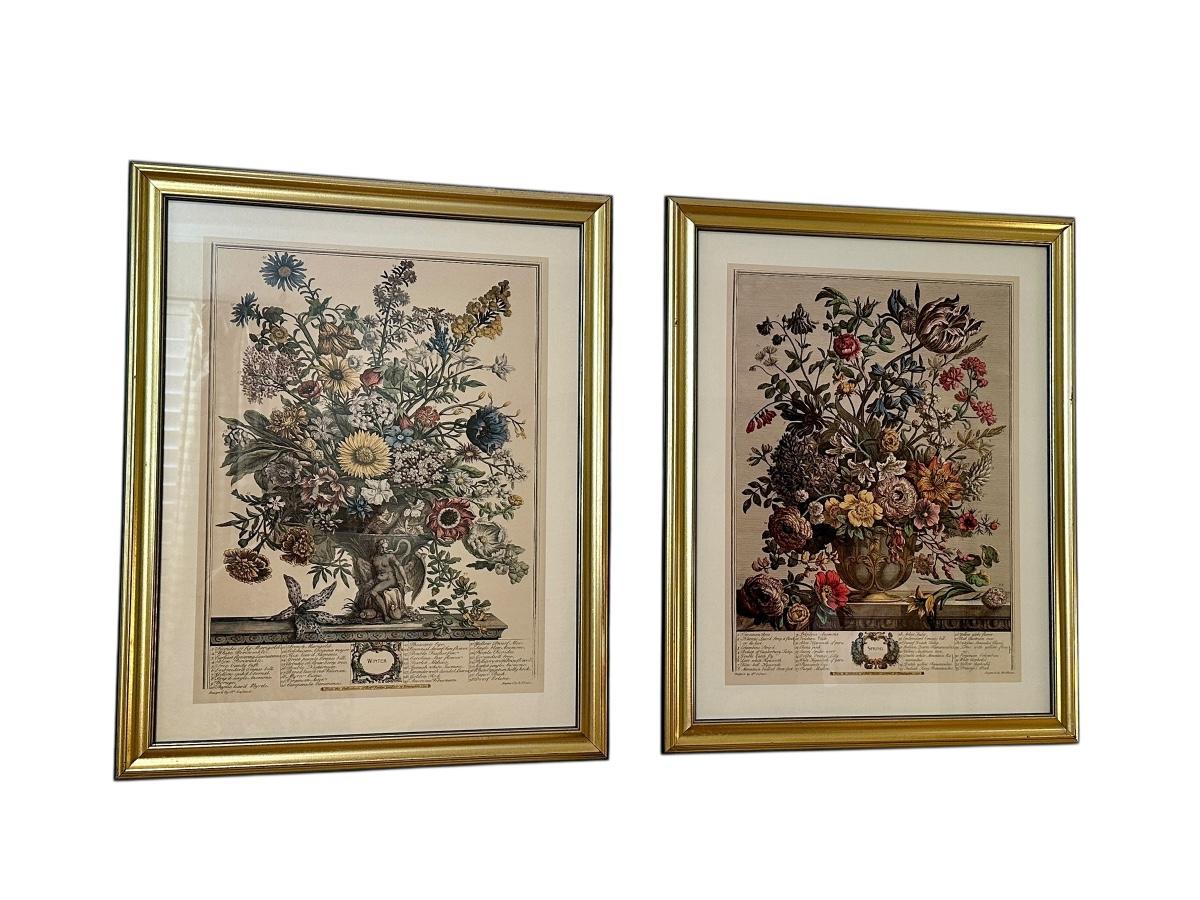 Furniture - King Size Master bed by Bragada w/ Hollywood Regency Gilt headboard & Botanical Art Prints - bedding sold separately