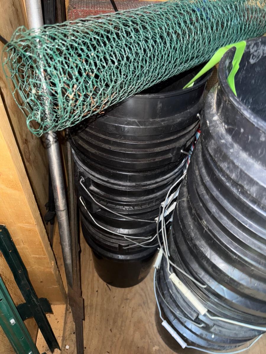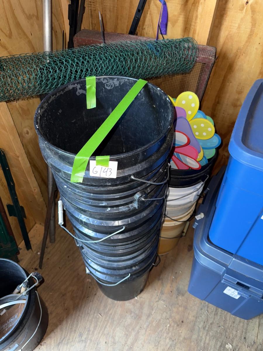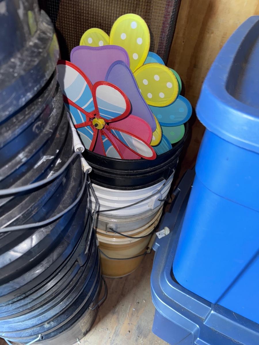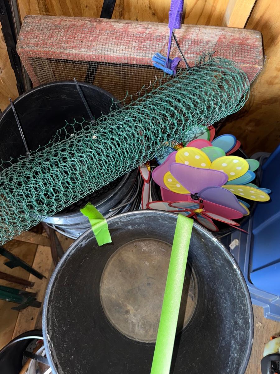 G143-Buckets, fencing and garden spinners