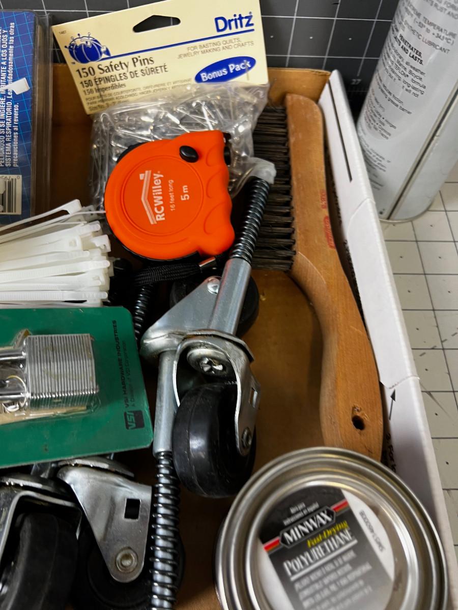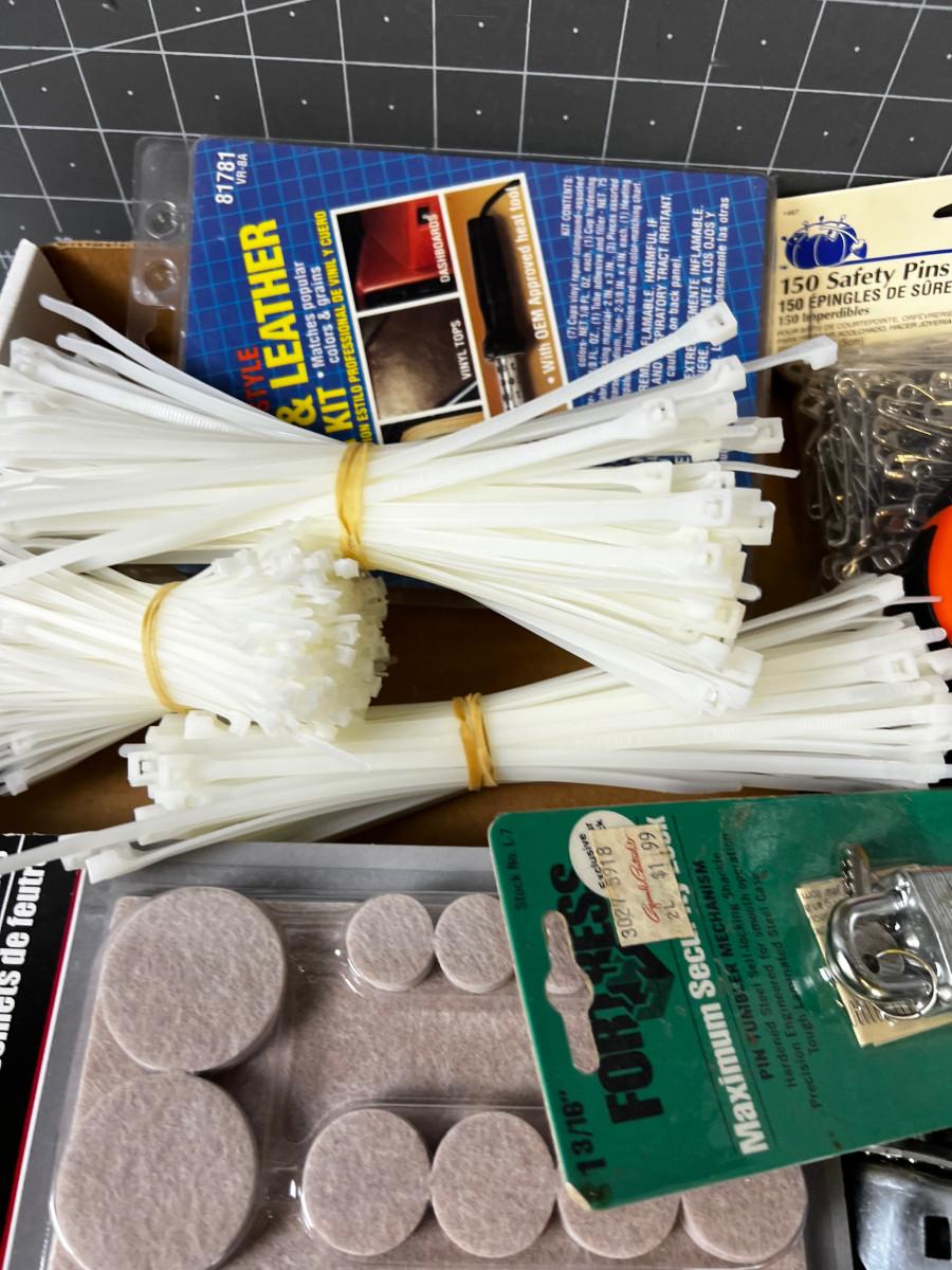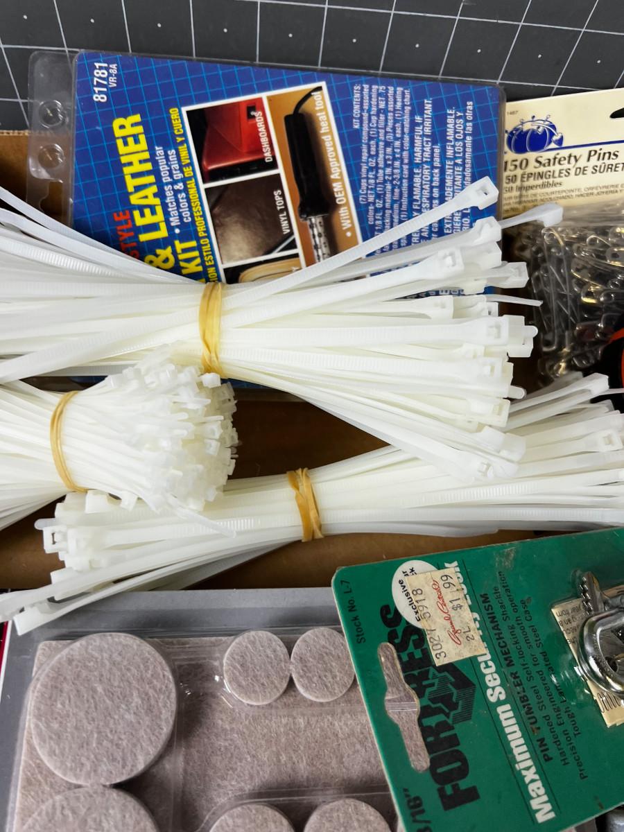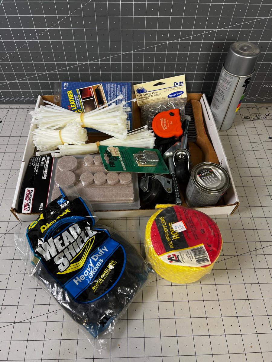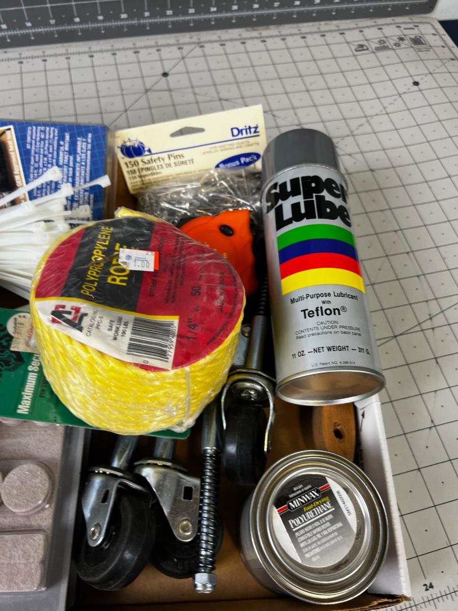 Garage Items: Zip Ties, Rope, Lube, Gloves.