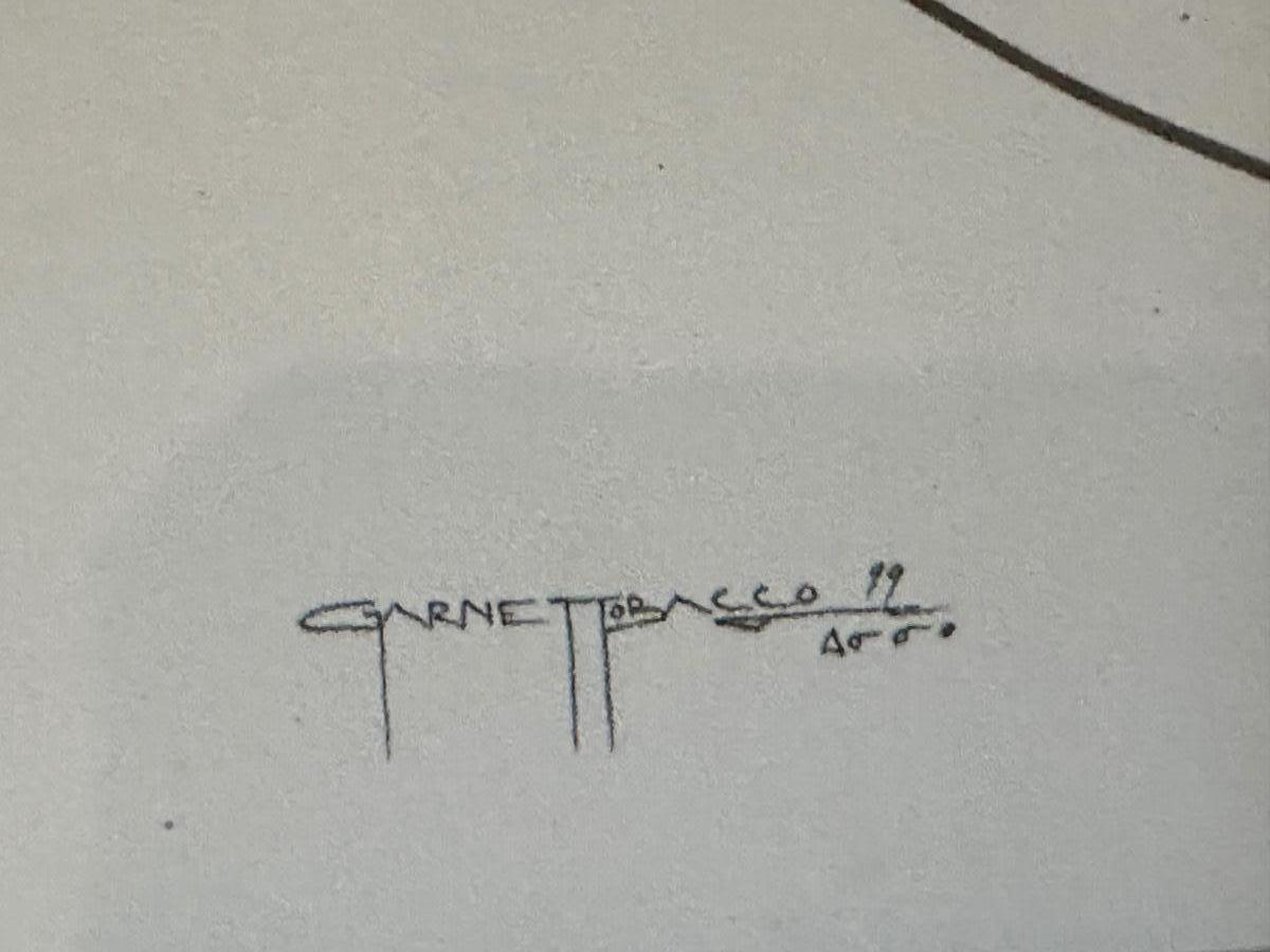 GARNET TOBACCO FRAMED ART(SEE PHOTOS FOR ARTIST BIO) 10X13 SOME DISCOLORATION(SEE PHOTOS)