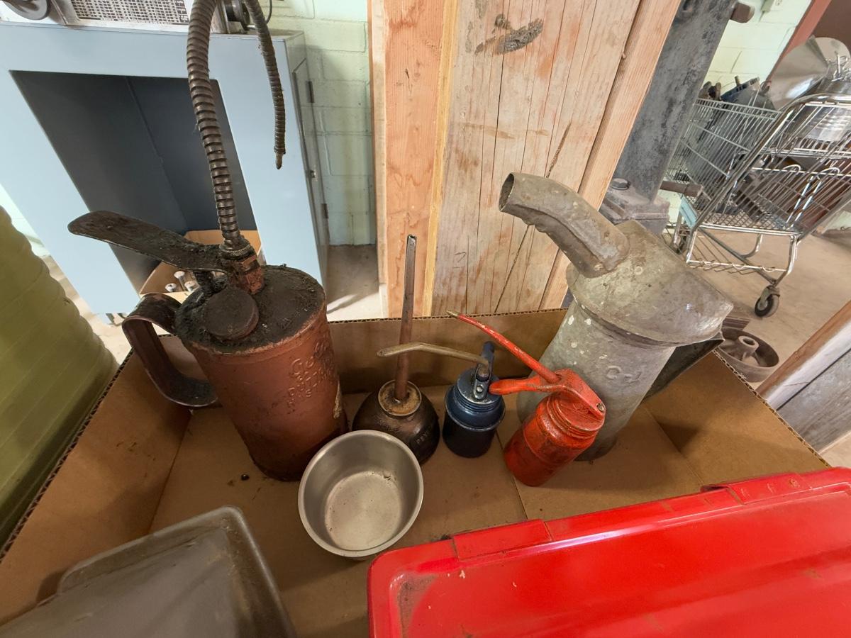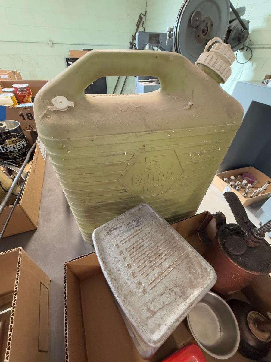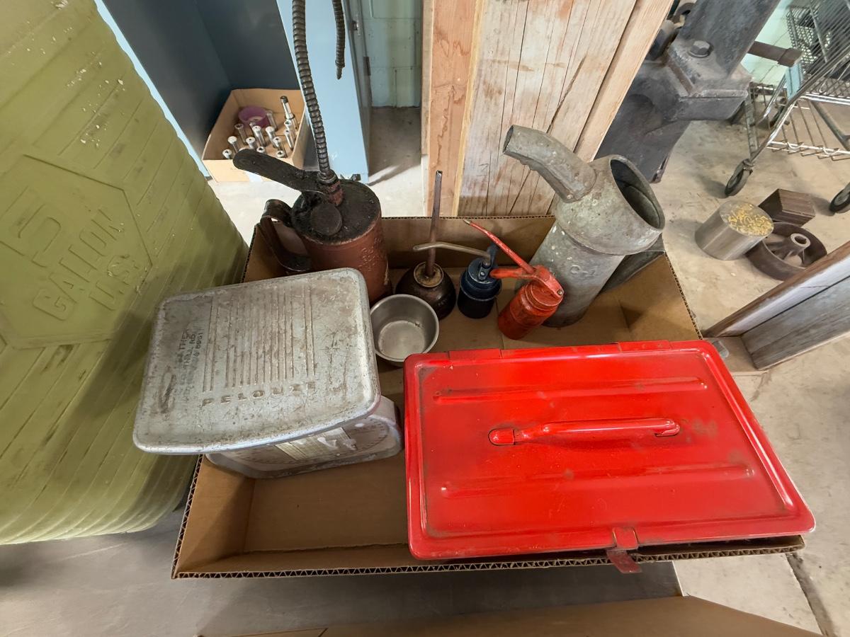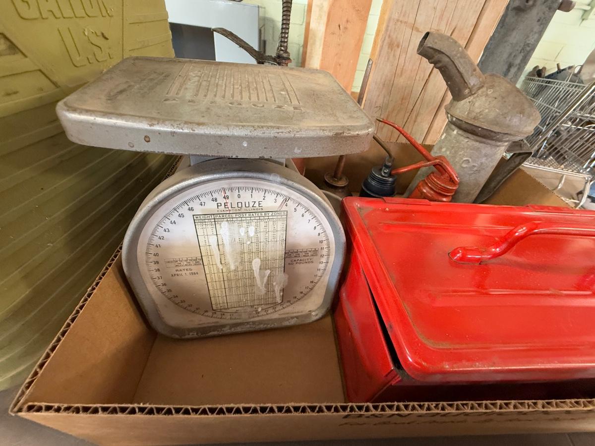 Gas Can/Vintage Oil Cans/Red Metal Box/Old Scale