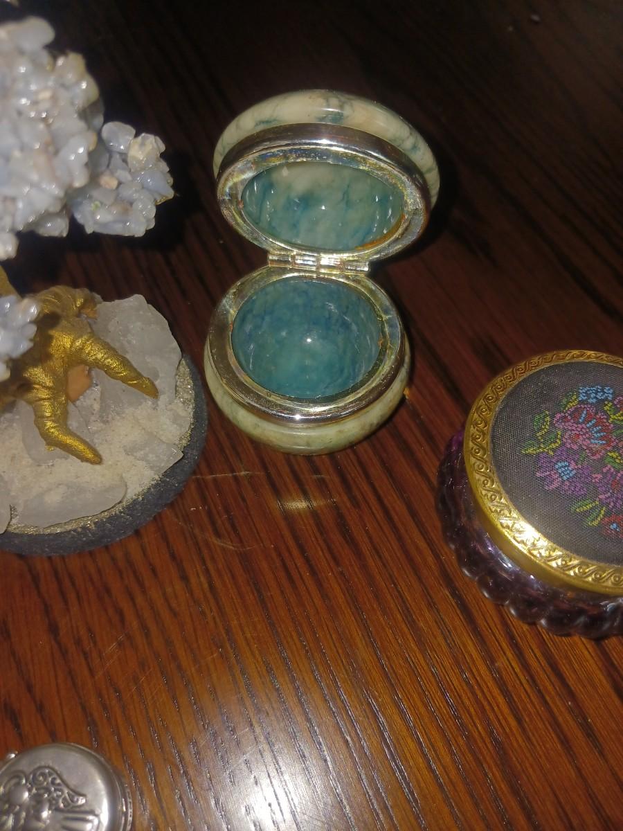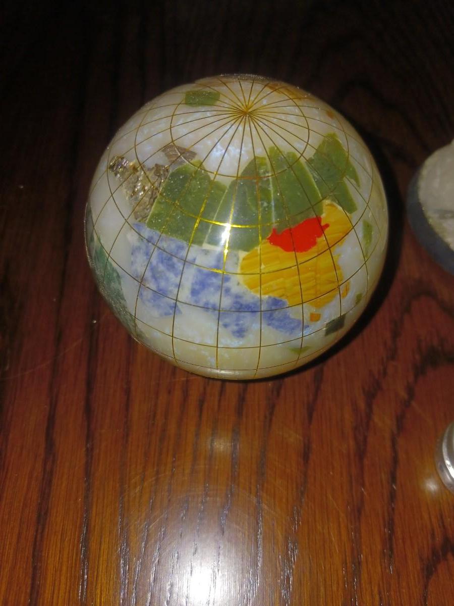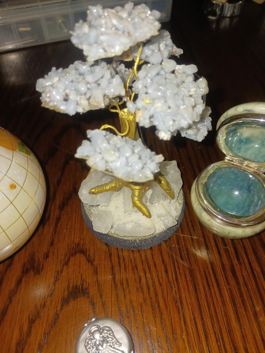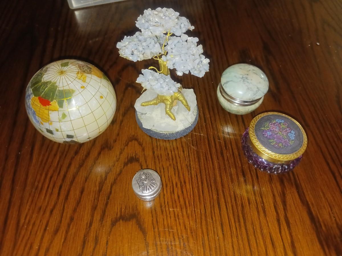 GEMSTONE BONSAI TREE, TRINKET BOXES AND A SMALL GLOBE