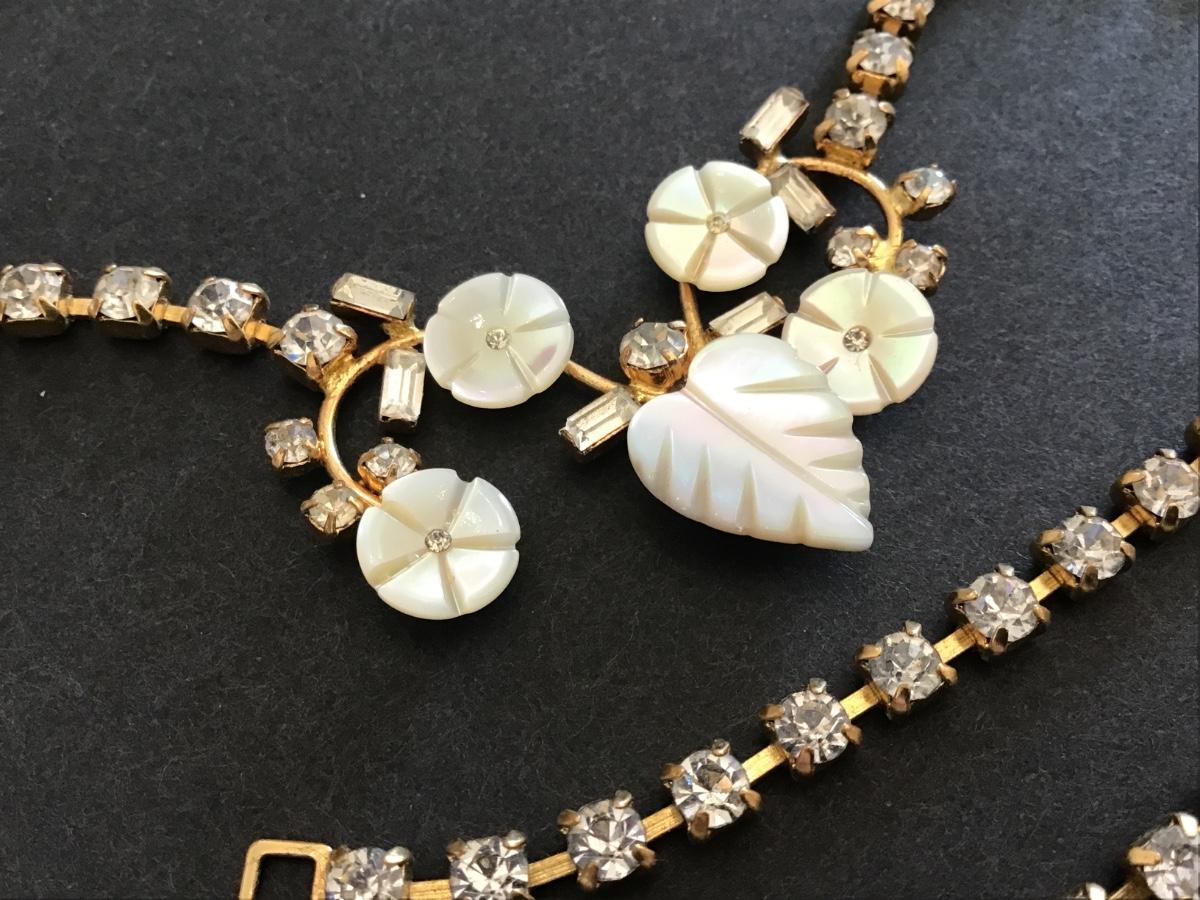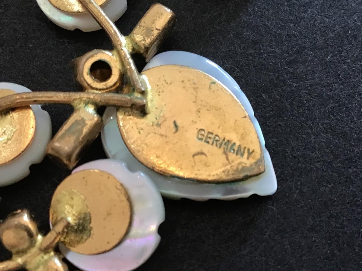Germany Vintage Carved MOP Rhinestone. Pretty