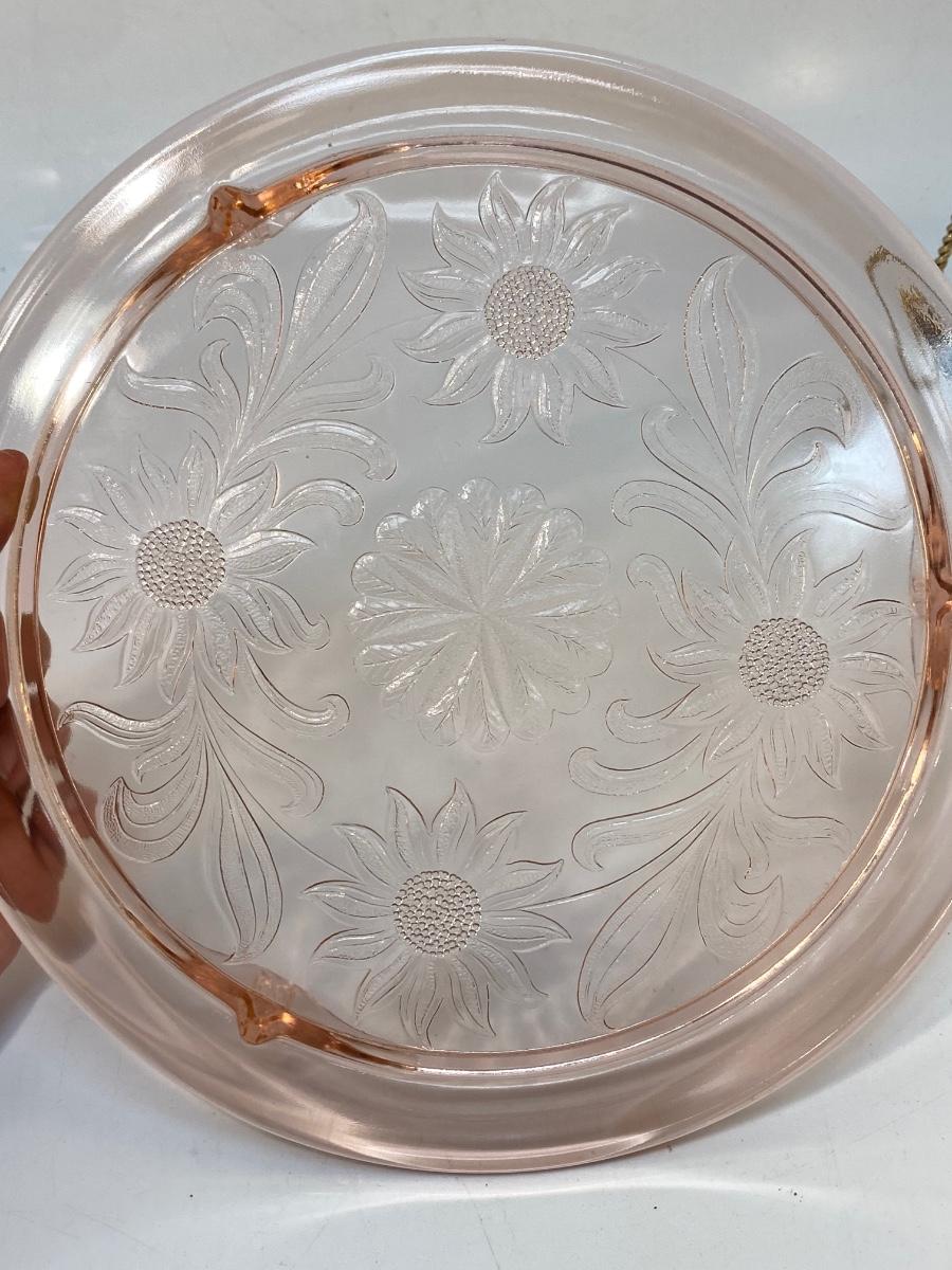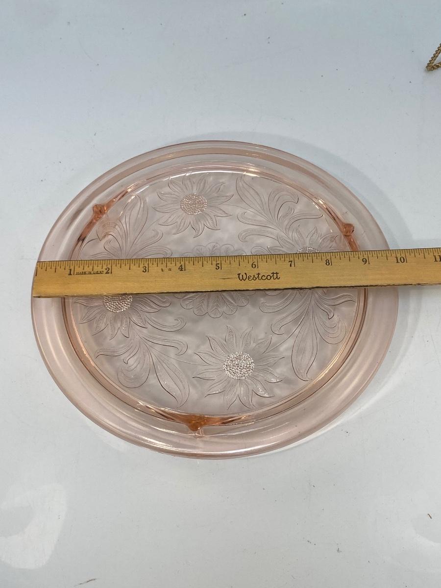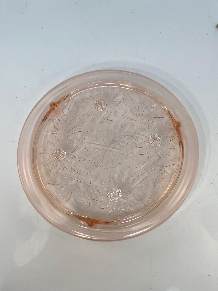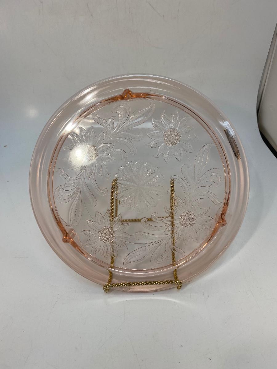 Vintage Pale Pink EAPG Flower Pattern Footed Cake Dessert Plate. In good condition. About 10" size.