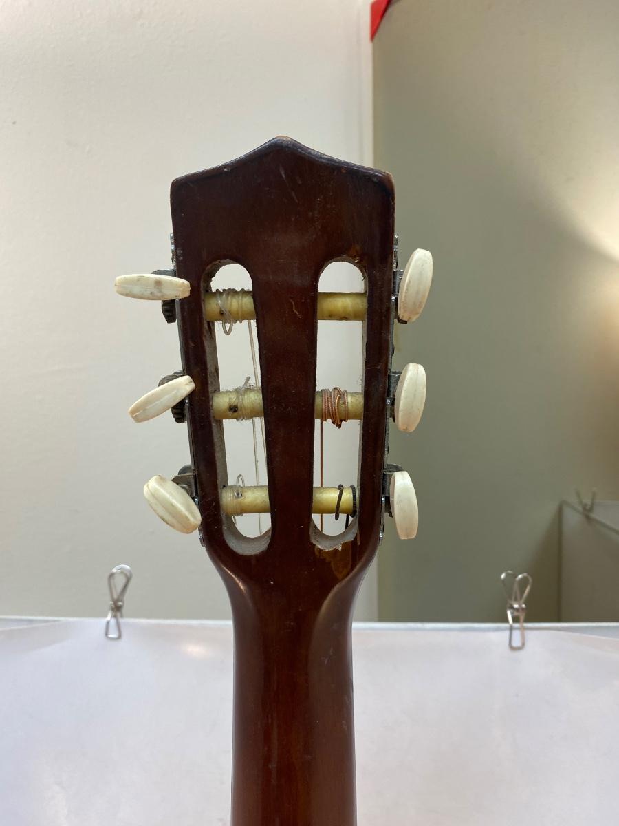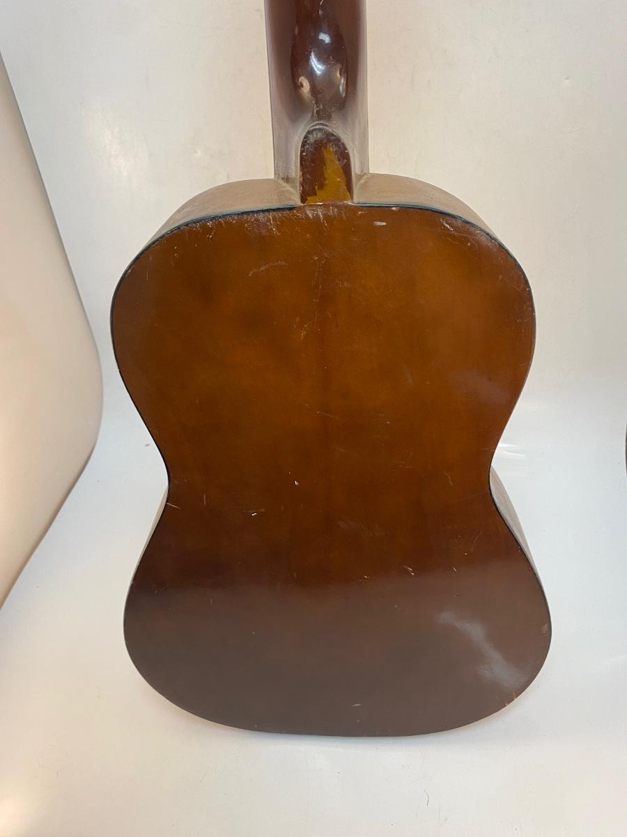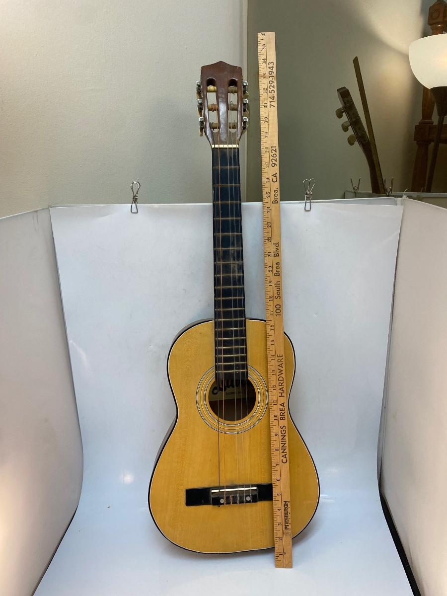 Vintage Lauren Model #LA34N Small Child's Acoustic Guitar. In fair condition. Could use new strings, one missing, and maybe serviced. Seems to be in playable condition, no body or neck damage.