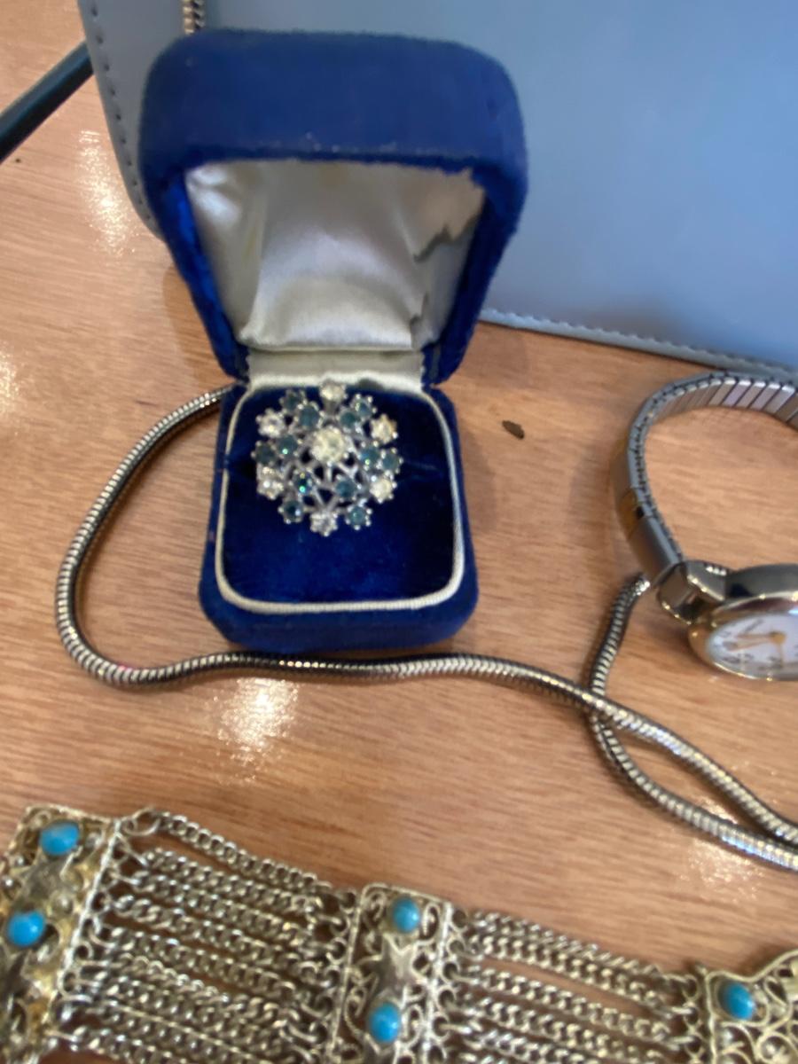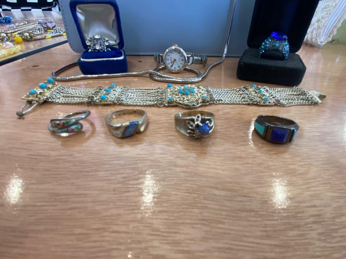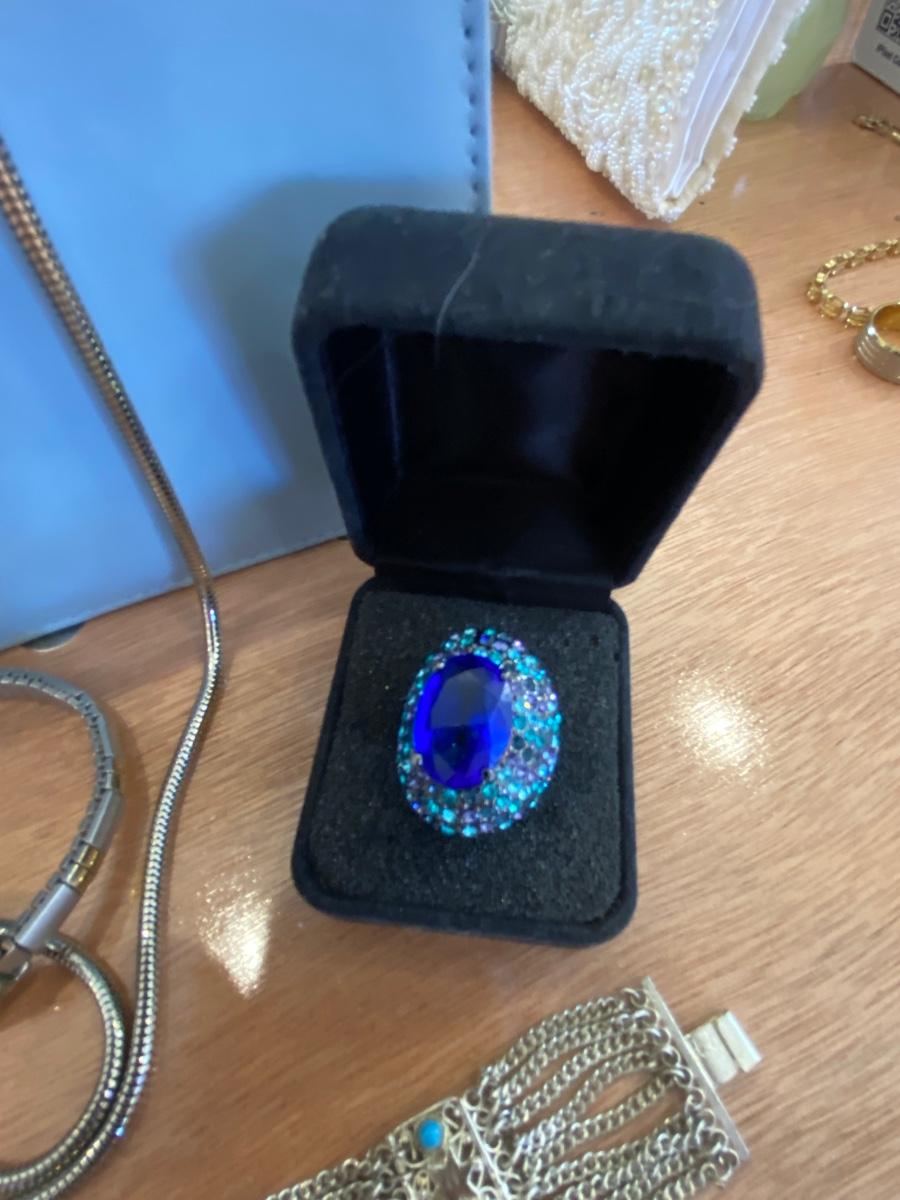 GIANI BERNINI CLUTCH AND SILVER AND BLUE TONE JEWELRY