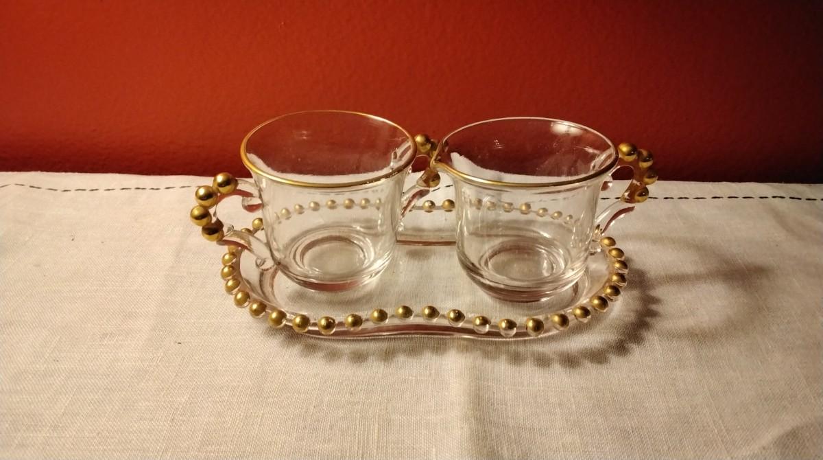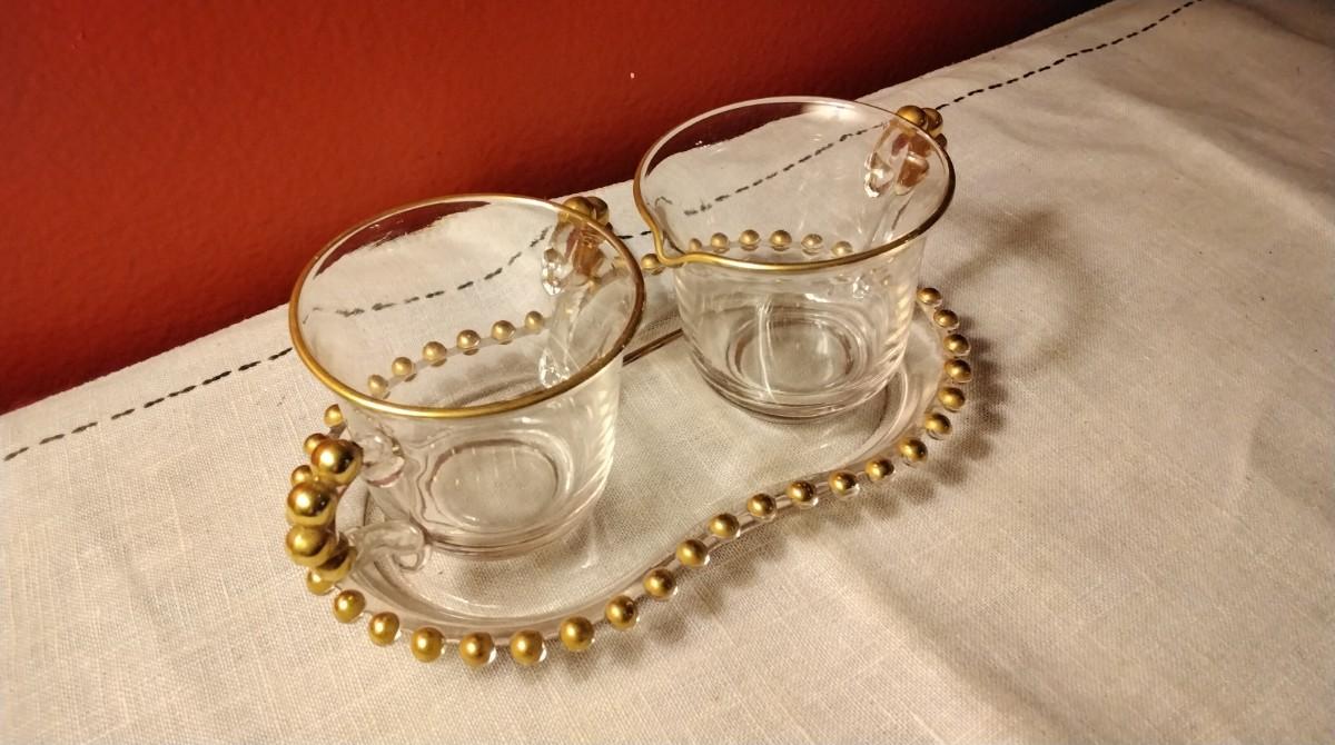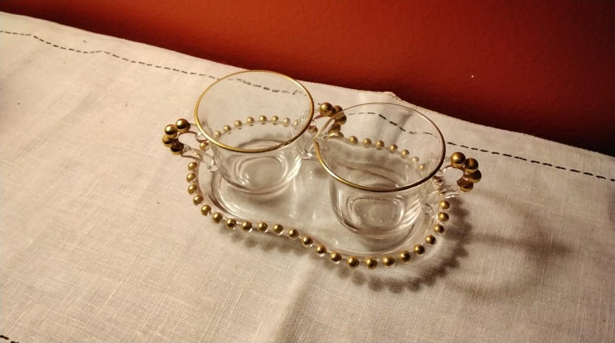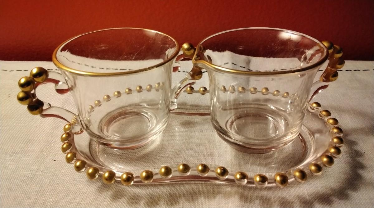 Vintage Imperial Candlewick Creamer and Sugar Bowl with Tray Set