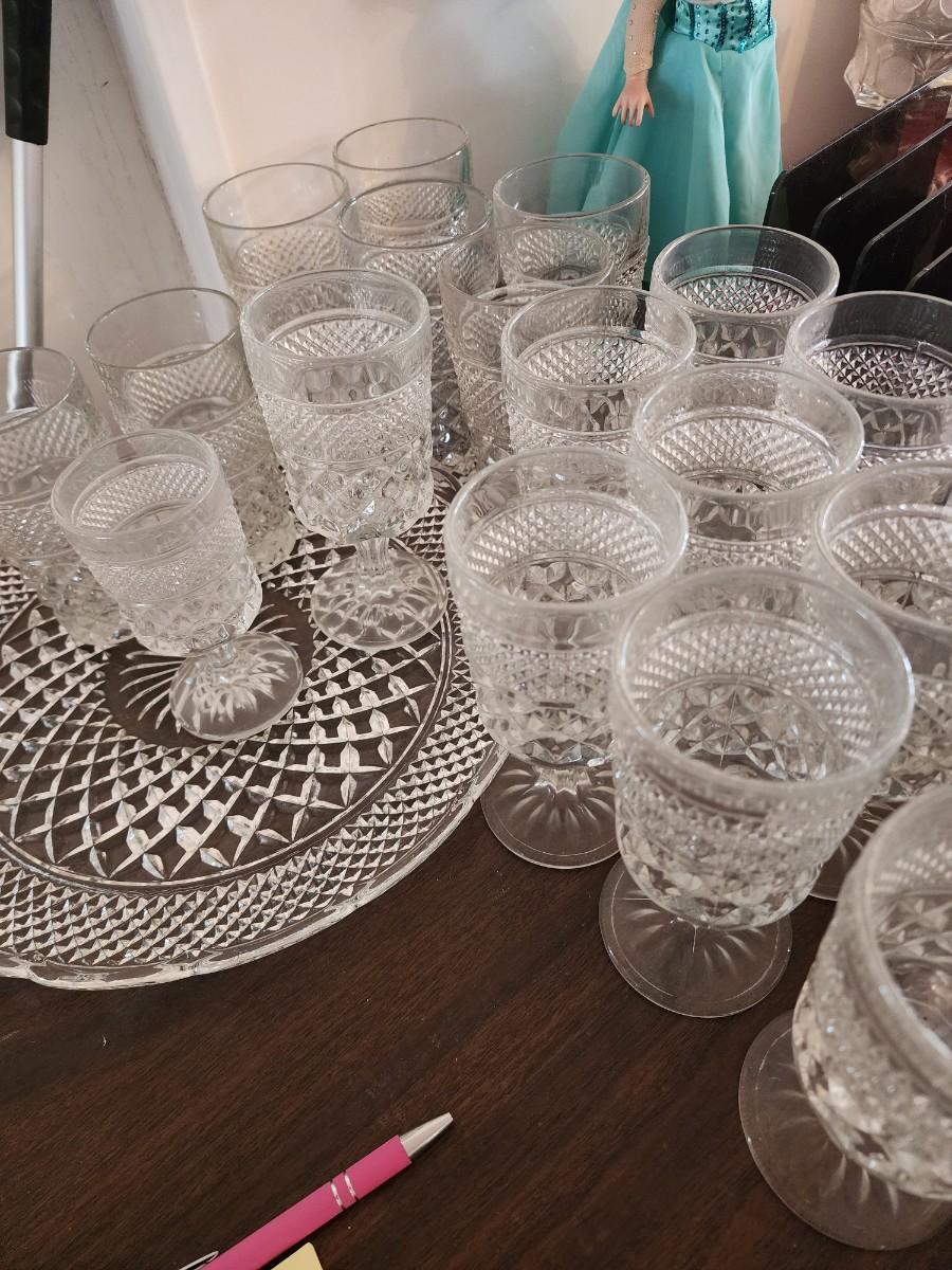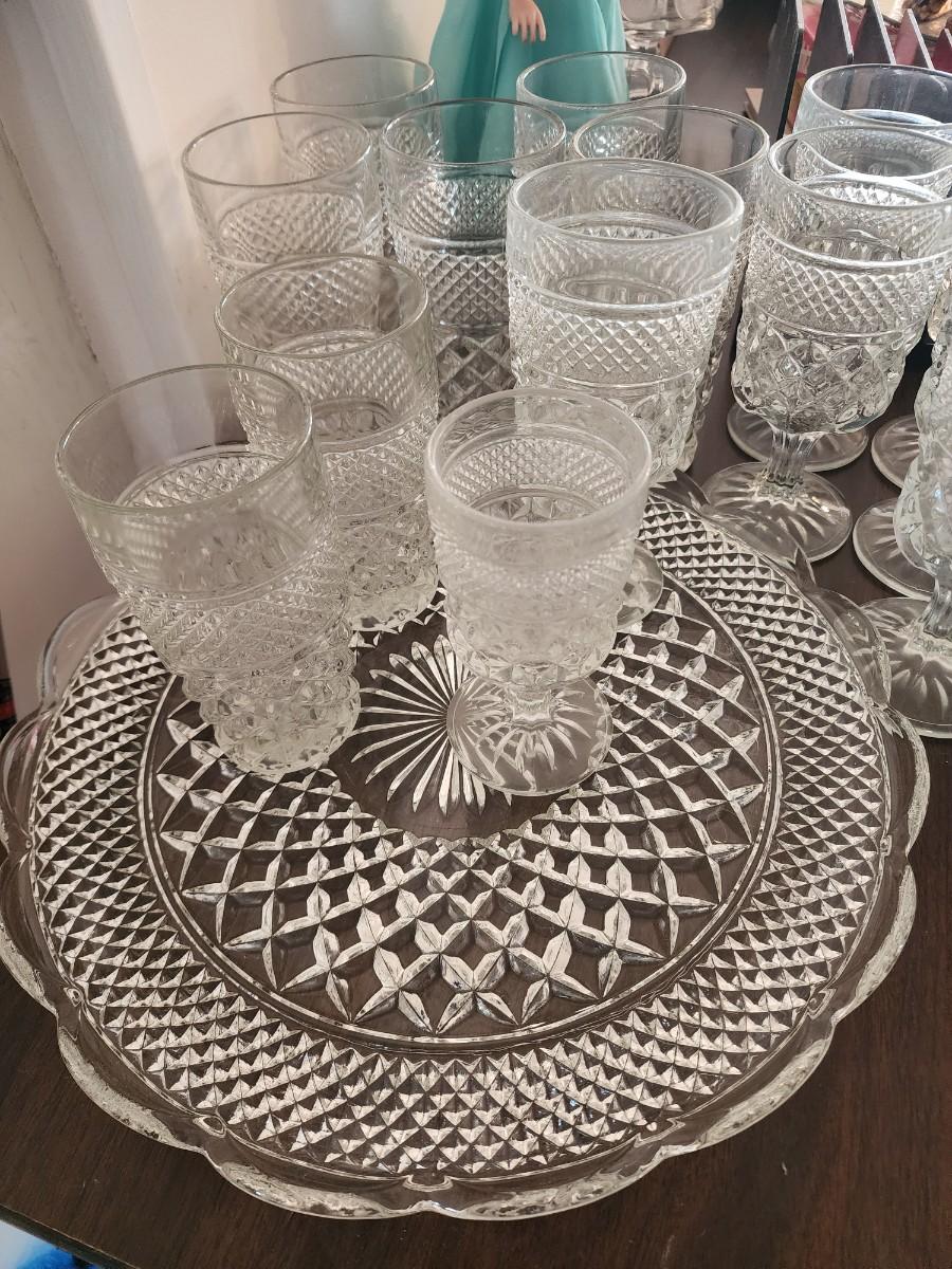 Platter, 12 goblets, 2 small goblets 6 glasses.
