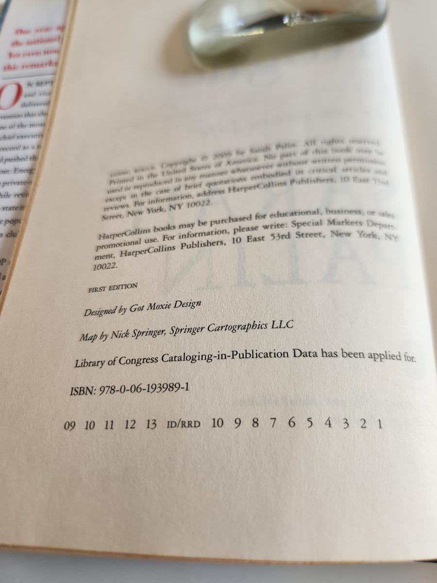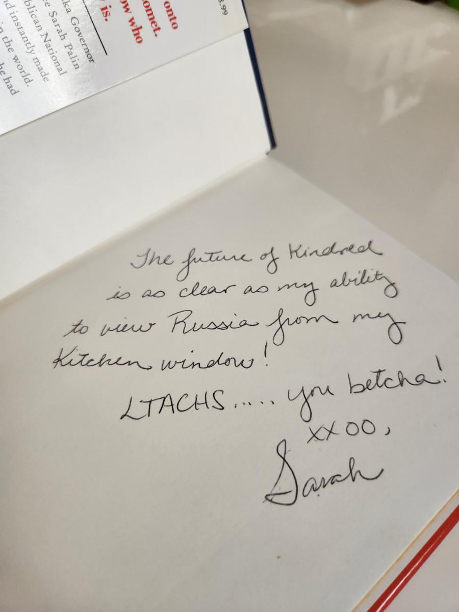 This auction lot is for an crisp copy of Going Rogue by Sarah Palin - Autographed. This book by the world-renown politico is quite unique as in the inscription Ms. Palin actually mentions seeing Russia from her kitchen. Probably her most famous line. This is a hardbound book with with a very good dust cover in as new condition. Published by Harper, 2009, 1st Edition. 413 Pages.
