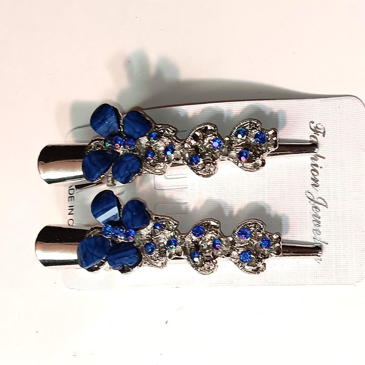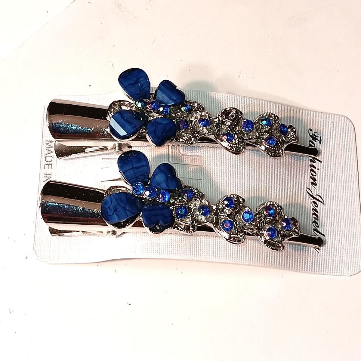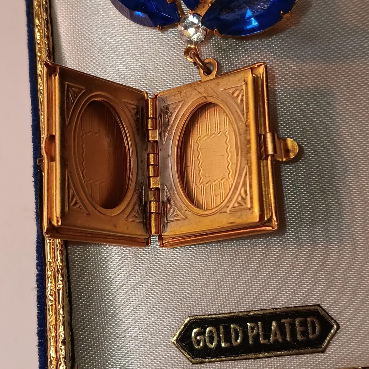 GOLD PLATED "SISTER" LOCKET BROOCH WITH BLUE STONES AND 2 NEW HAIR CLIPS
