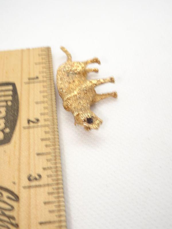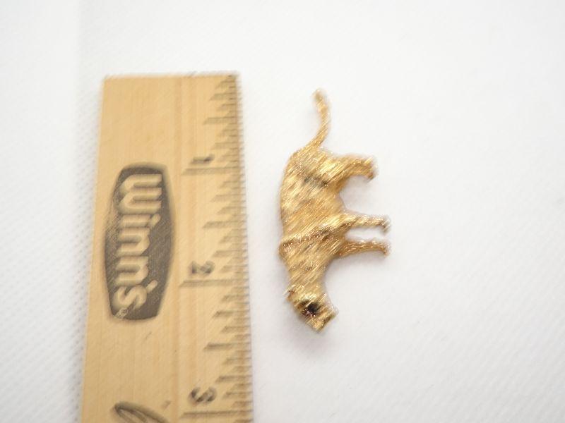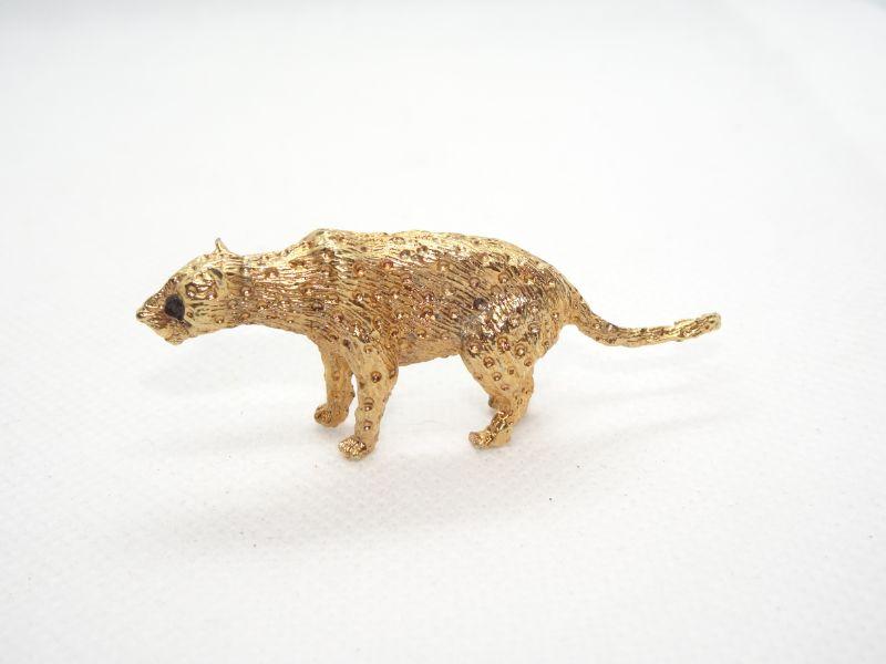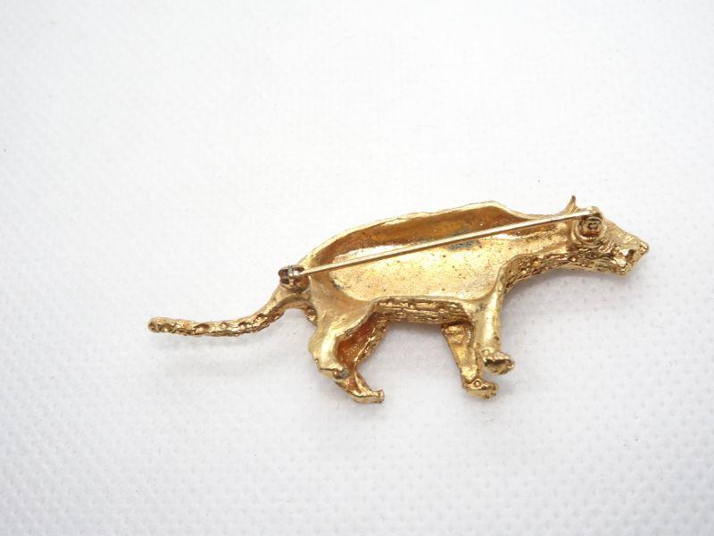 Gold Tone Cheetah Brooch Pin, Rhinestone Eyes