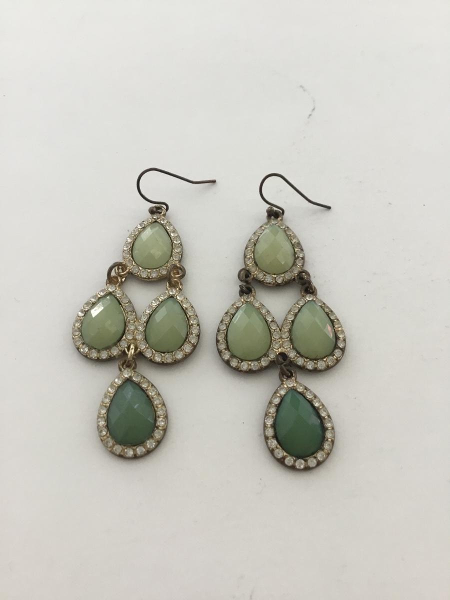 Gold tone green dangle fashion earrings