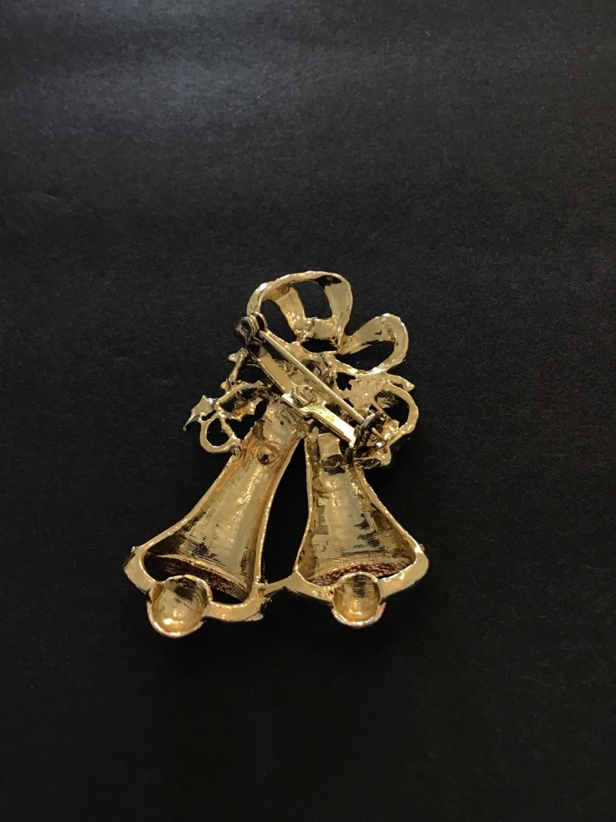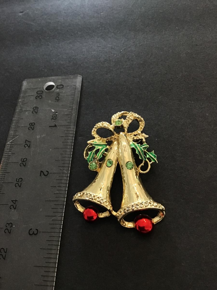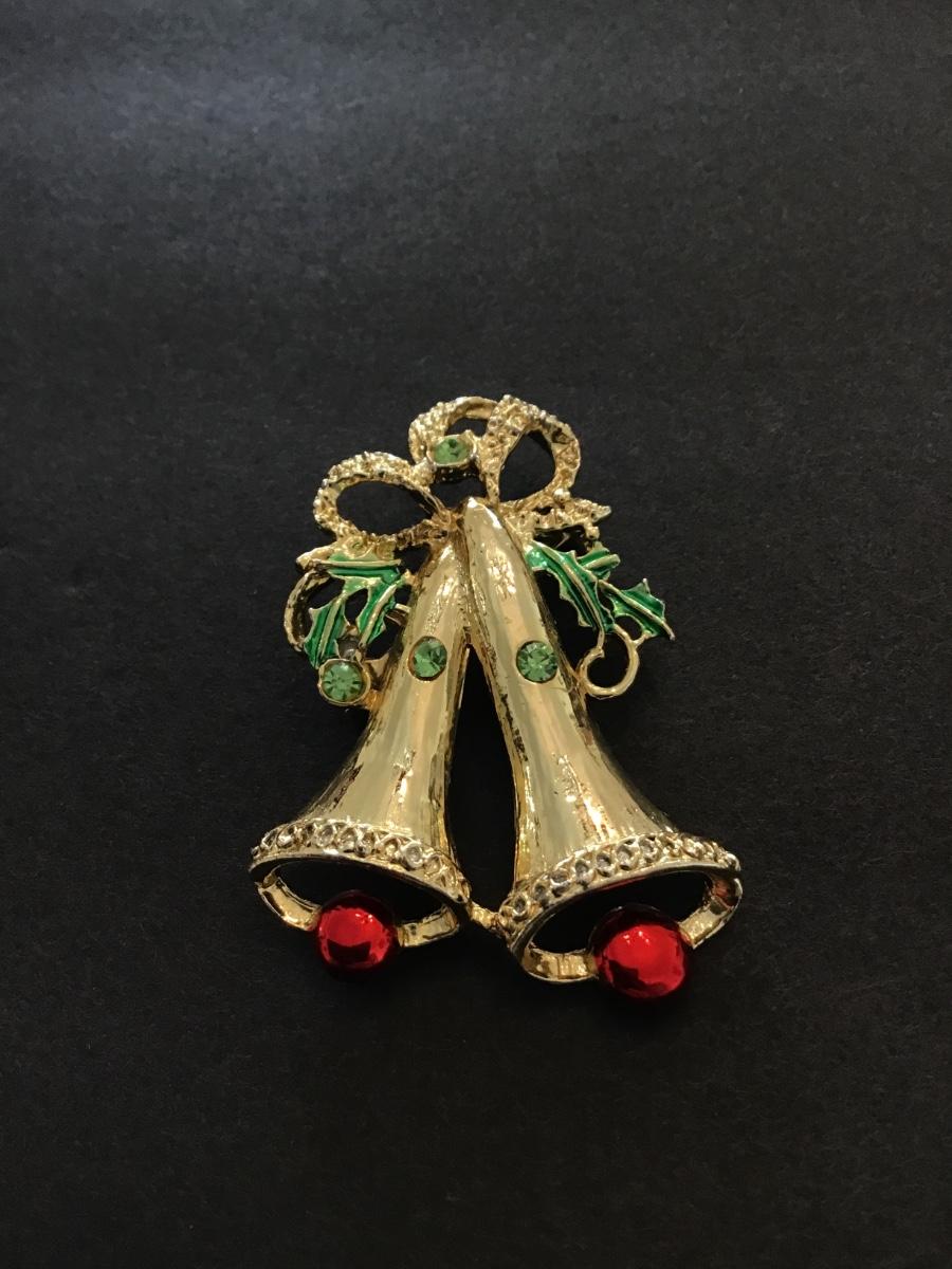 Gold tone vintage Christmas bell brooch pin