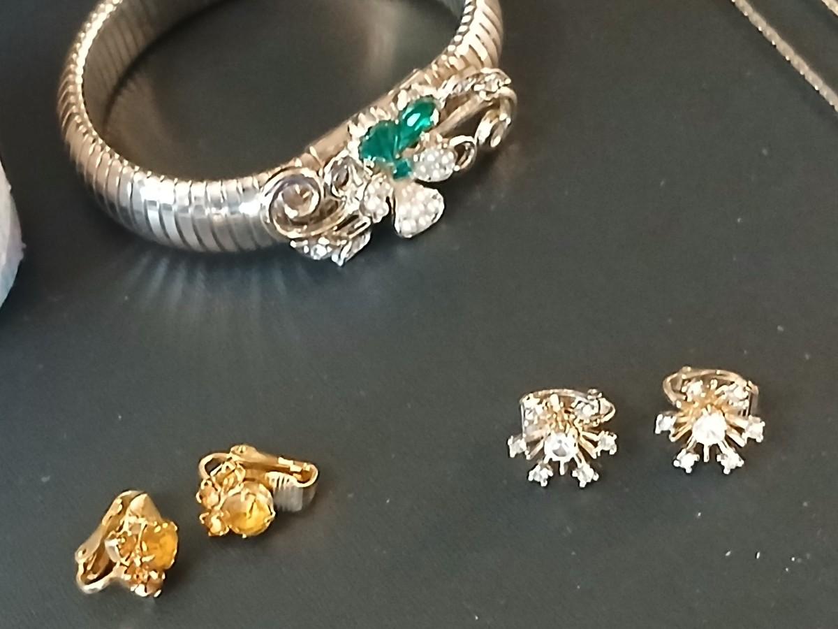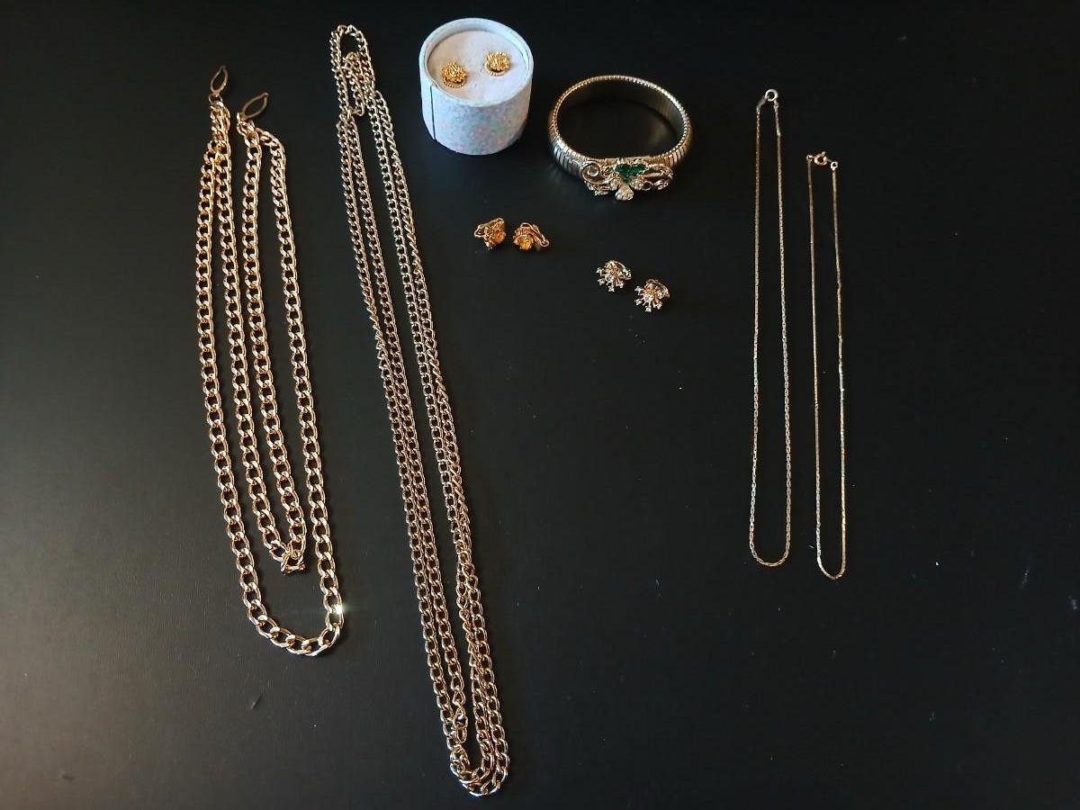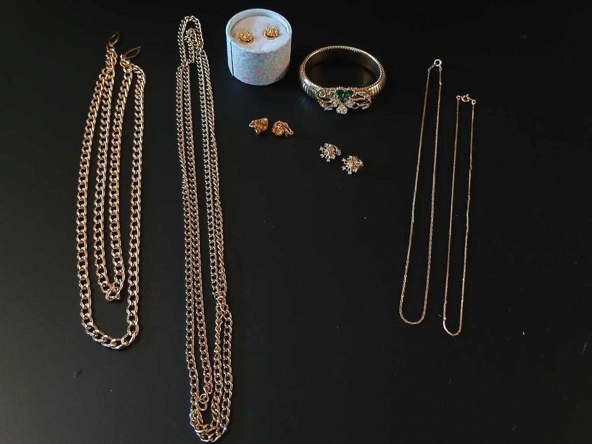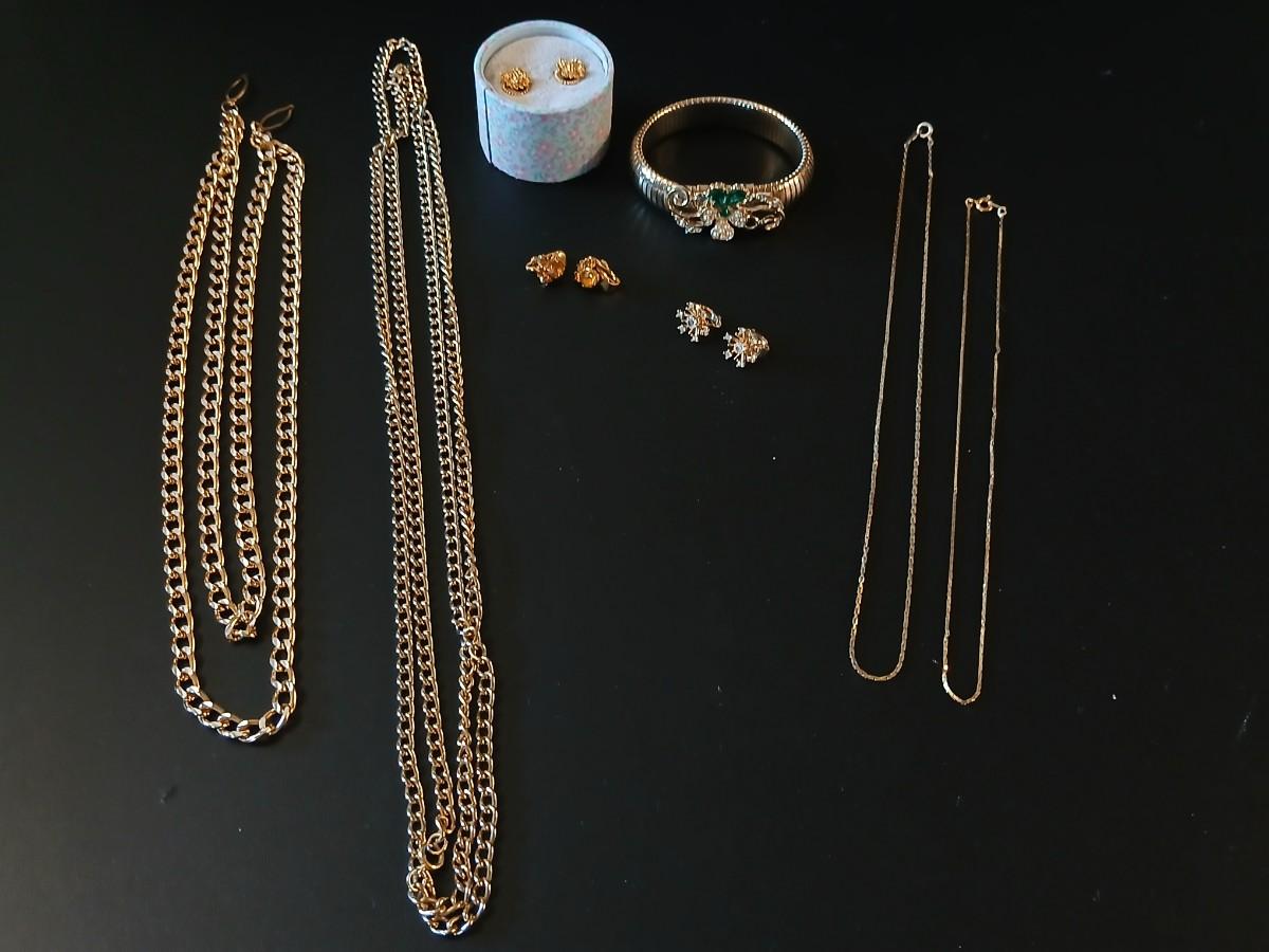 Gold toned Jewelry - chains - ring - earrings - rhinestone