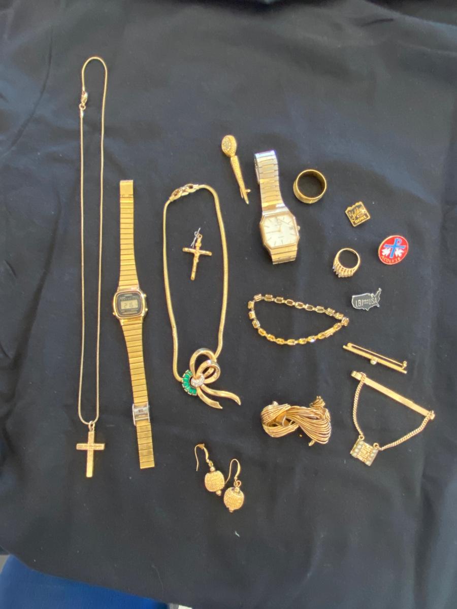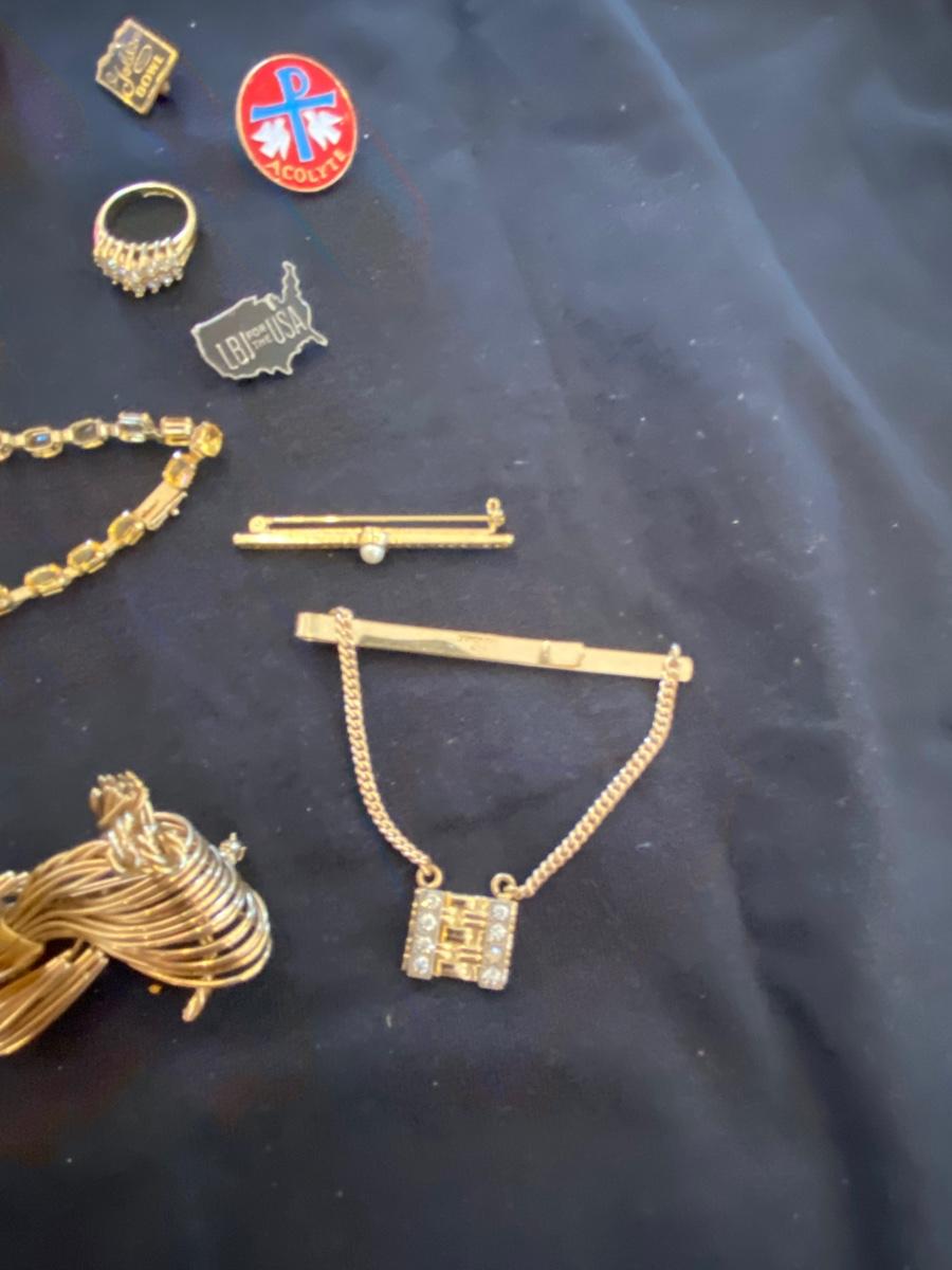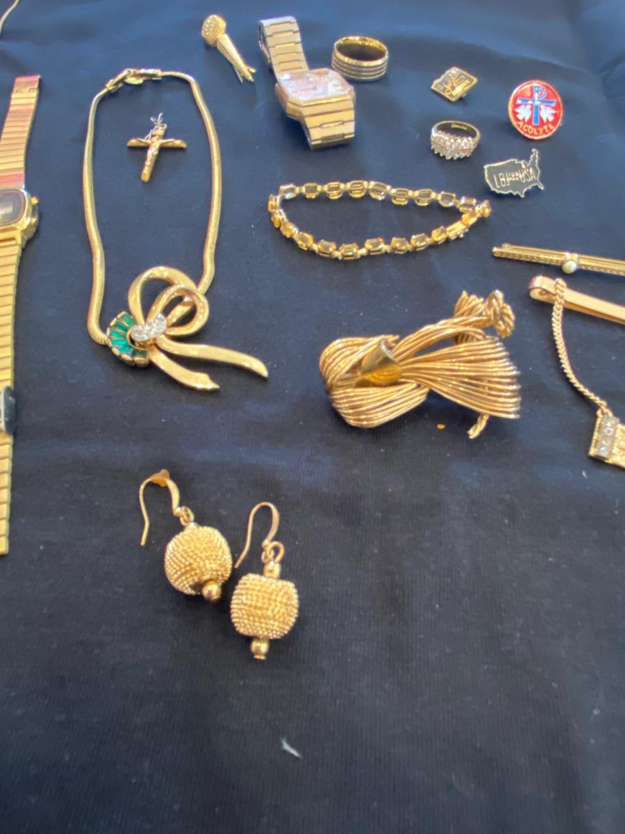 GOLD TONE COSTUME JEWELRY, AND MEN’S ELGIN WATCH.
