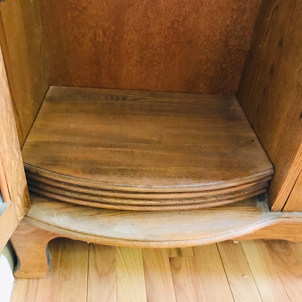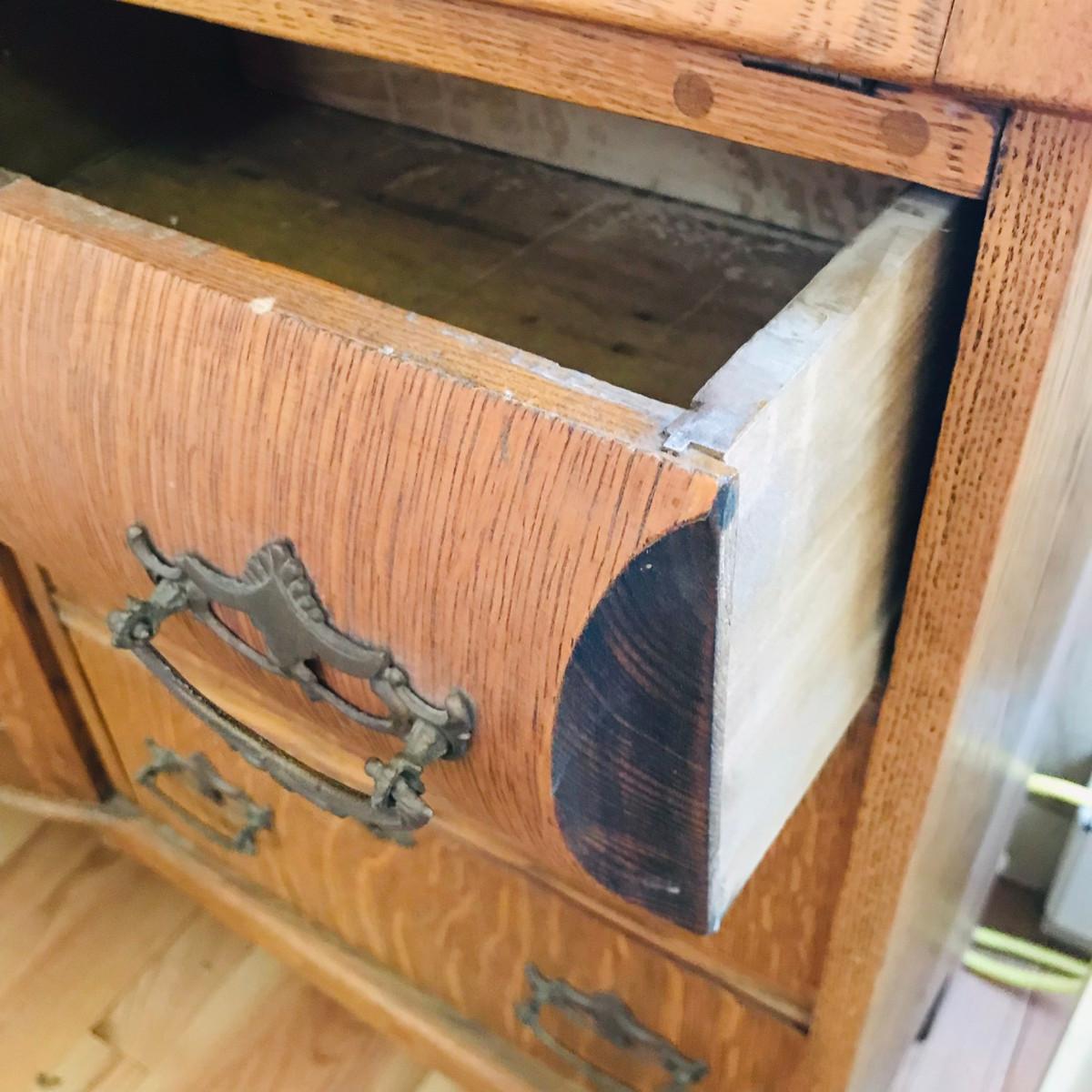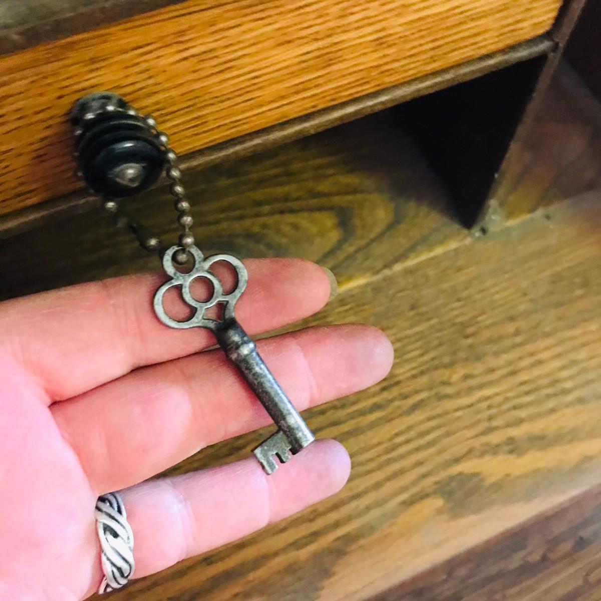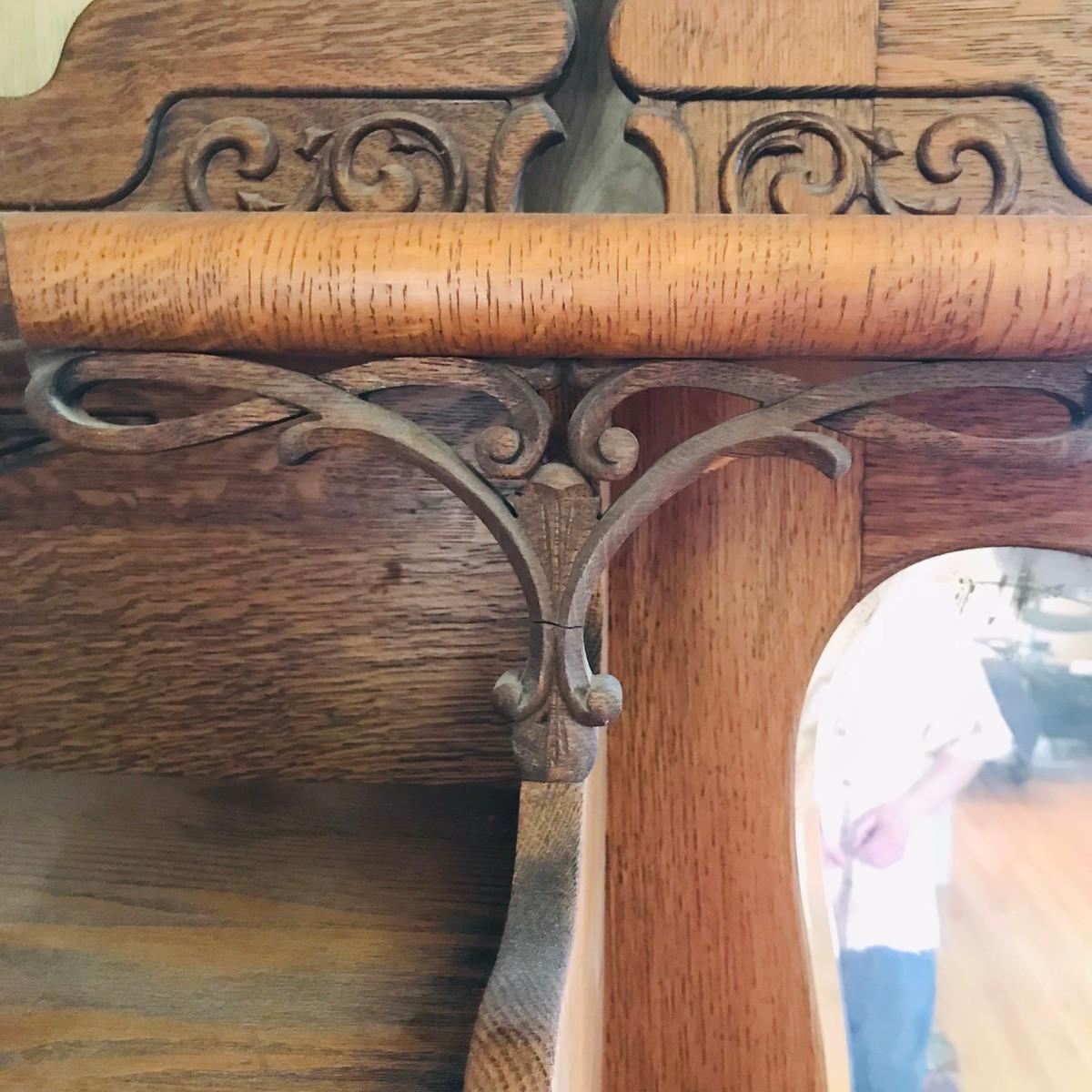 This is a fabulous piece, lots of gingerbread design! Have the KEY!! The shelves are on the bottom. Complete, the handle for the book case is not attached but there!