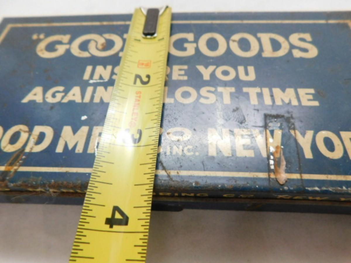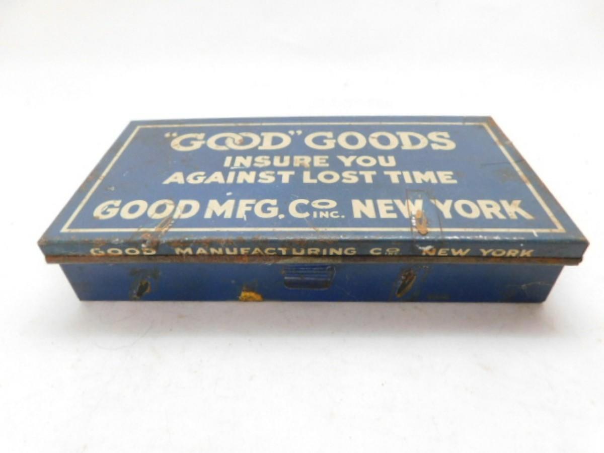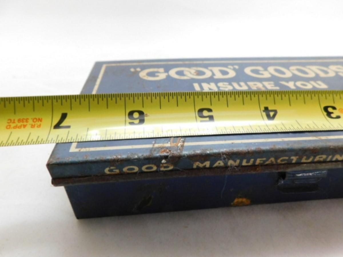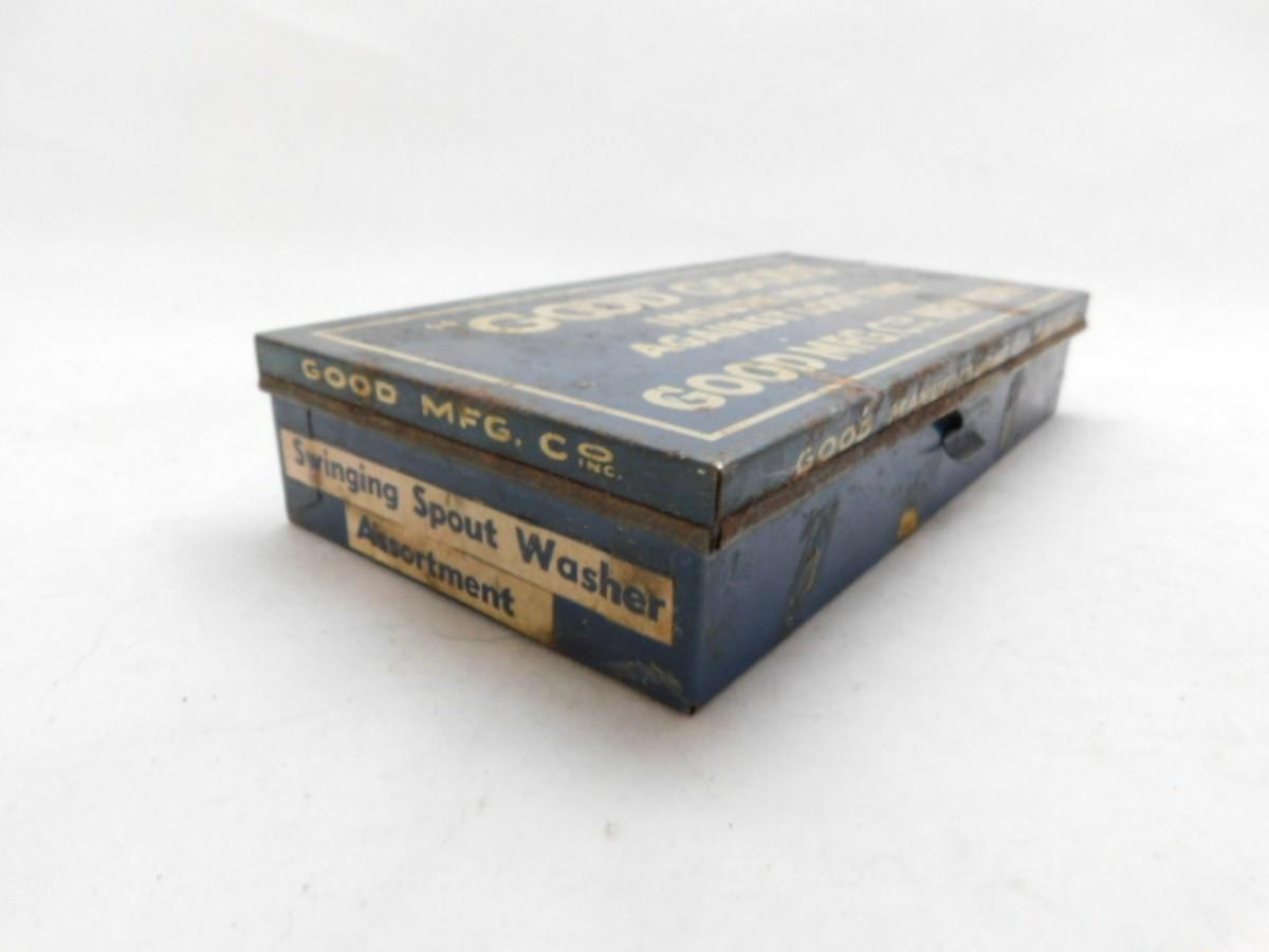 Vintage Good MFG. Co. Goods Spout Washer Metal Storage Box Advertising