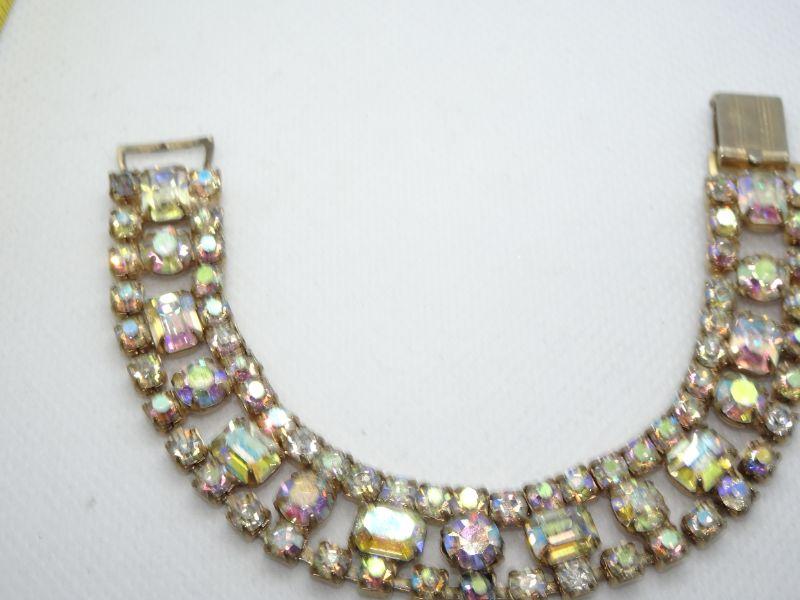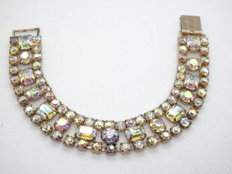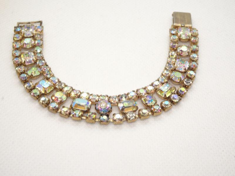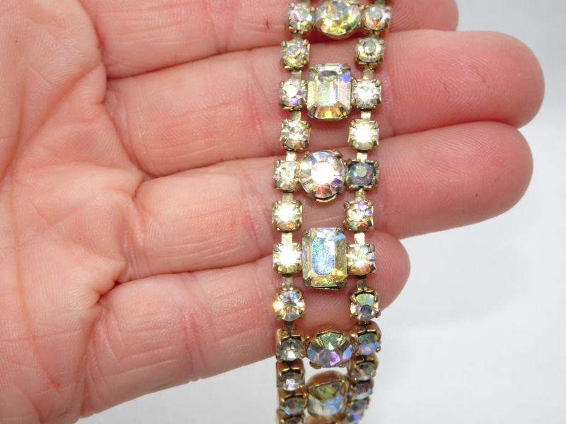 Gorgeous Aurora Borealis color Rhinestone Bracelet, Mid Century Modern