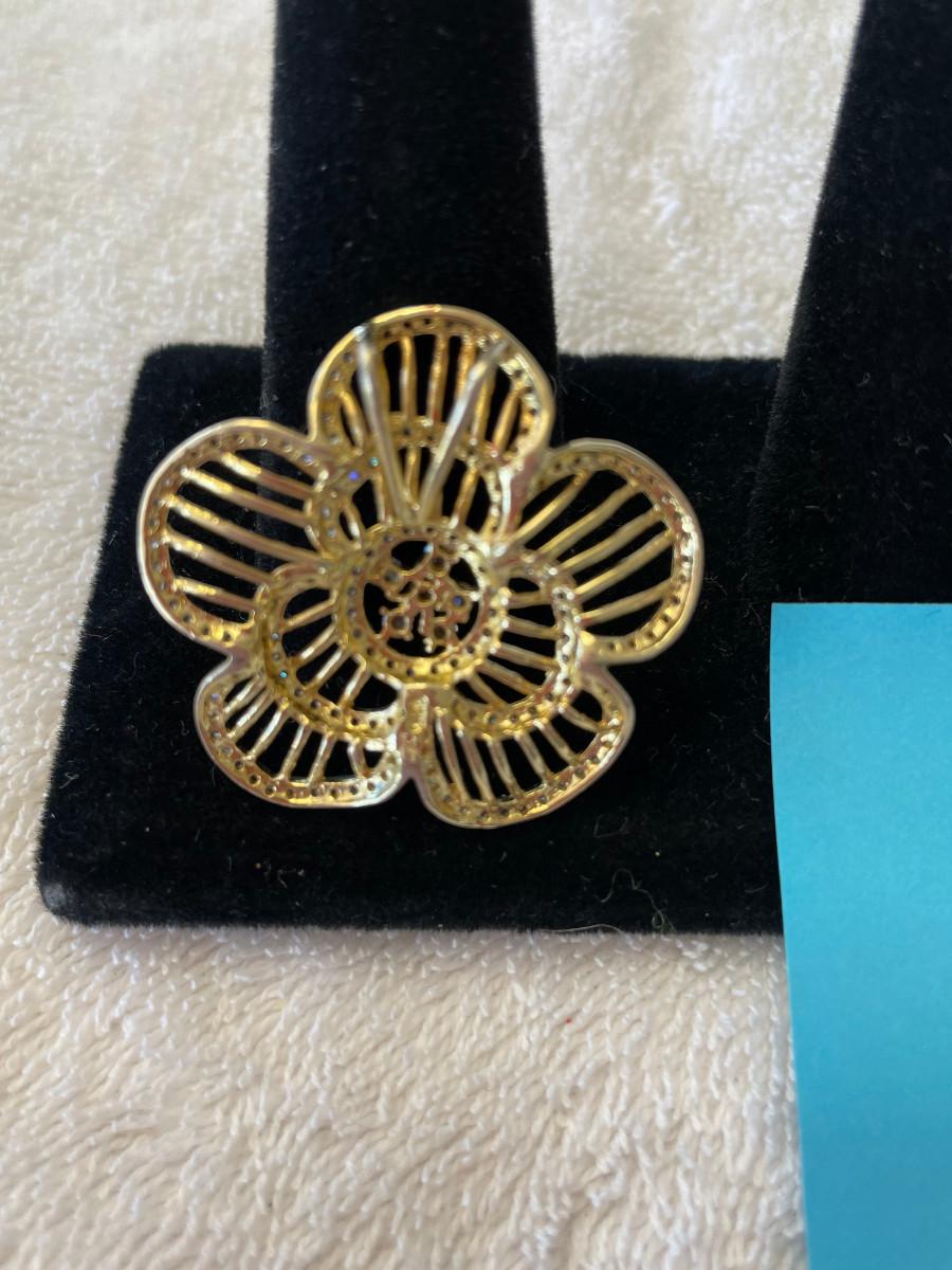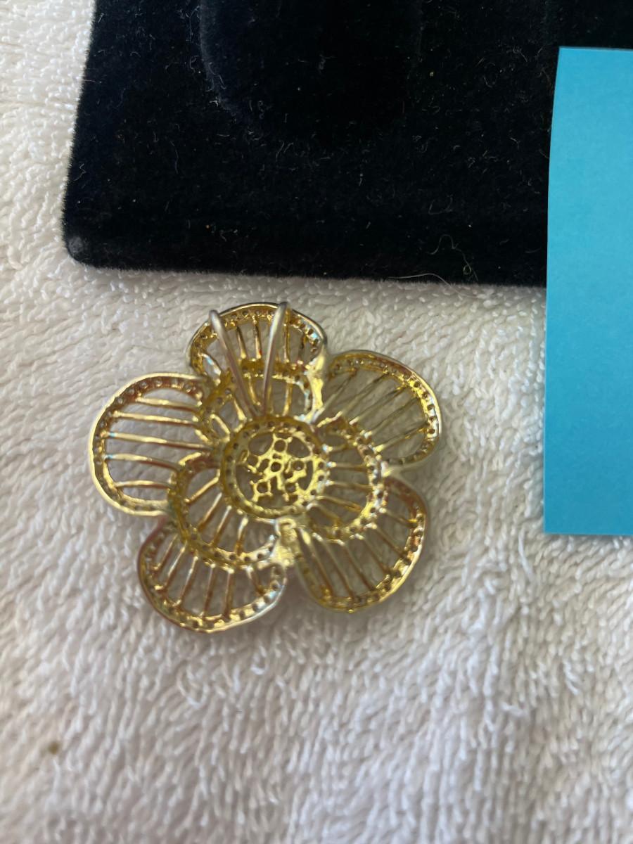 Gorgeous Filigree Retro Floral Pendant Gold on Sterling