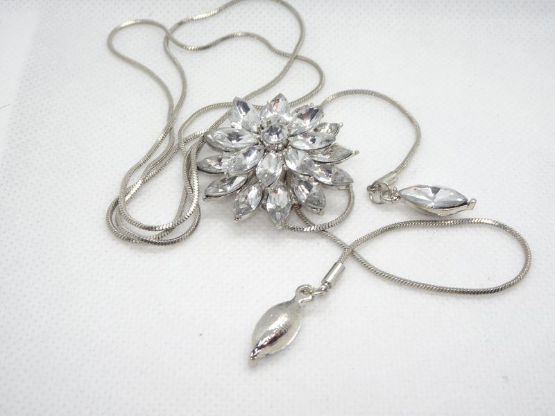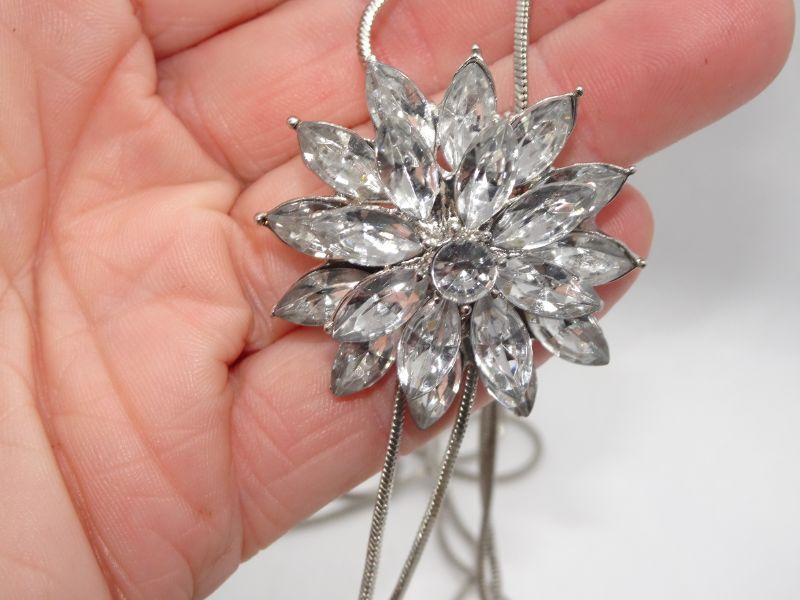 Gorgeous Rhinestone Silver Tone Drop Necklace, Adjustable