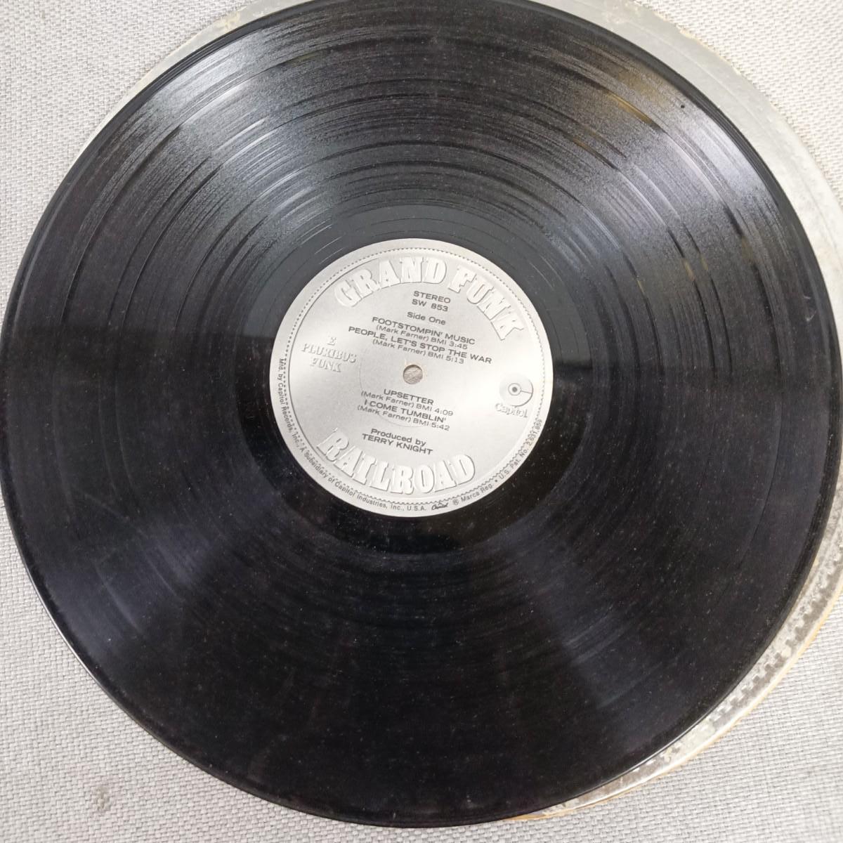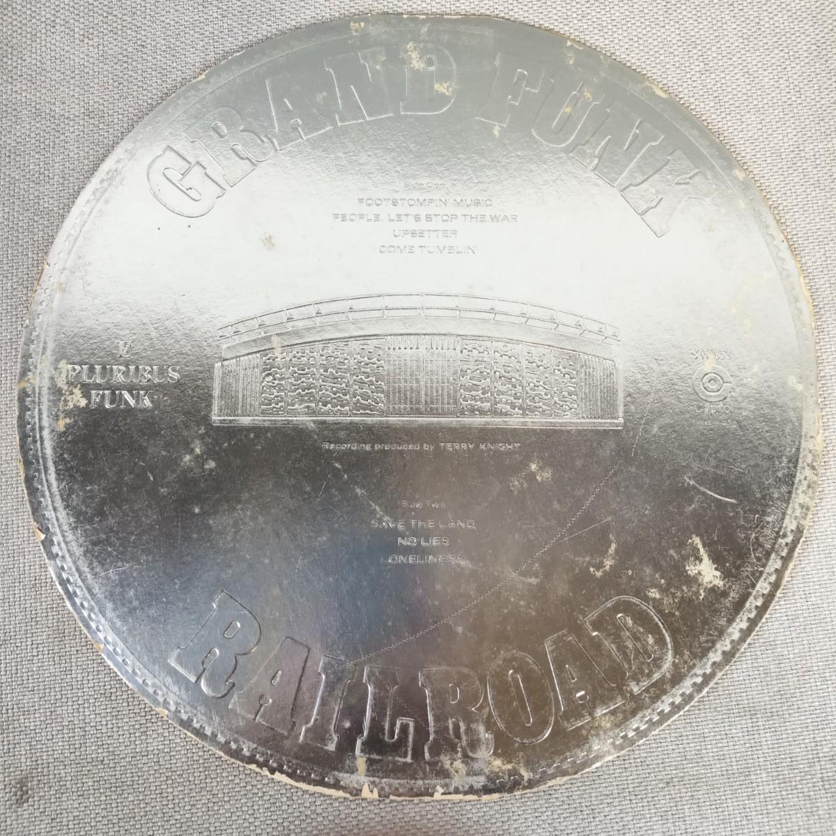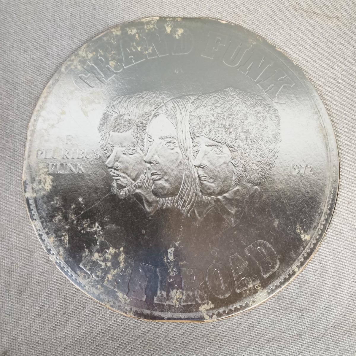 Cool round Silver "coin" sleeve - with Grand Funk Railroad stickers - Capitol SW 853