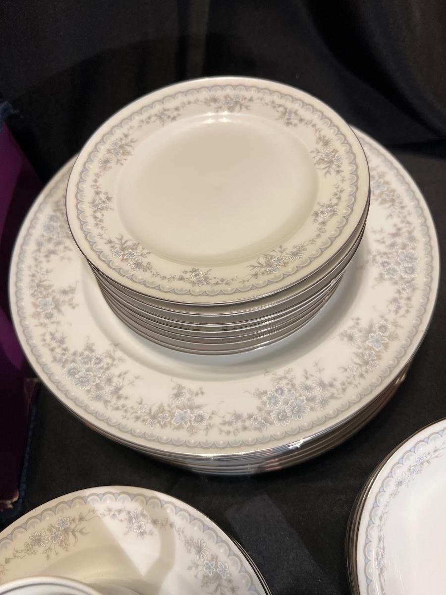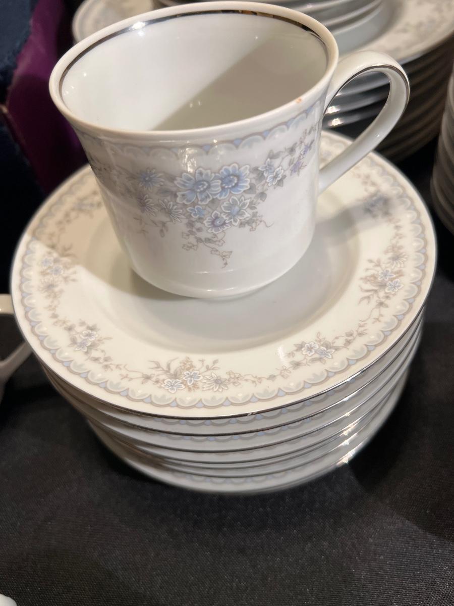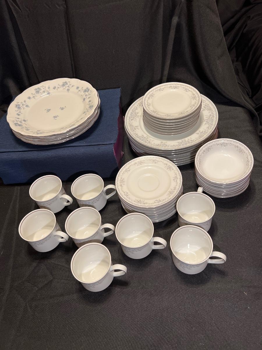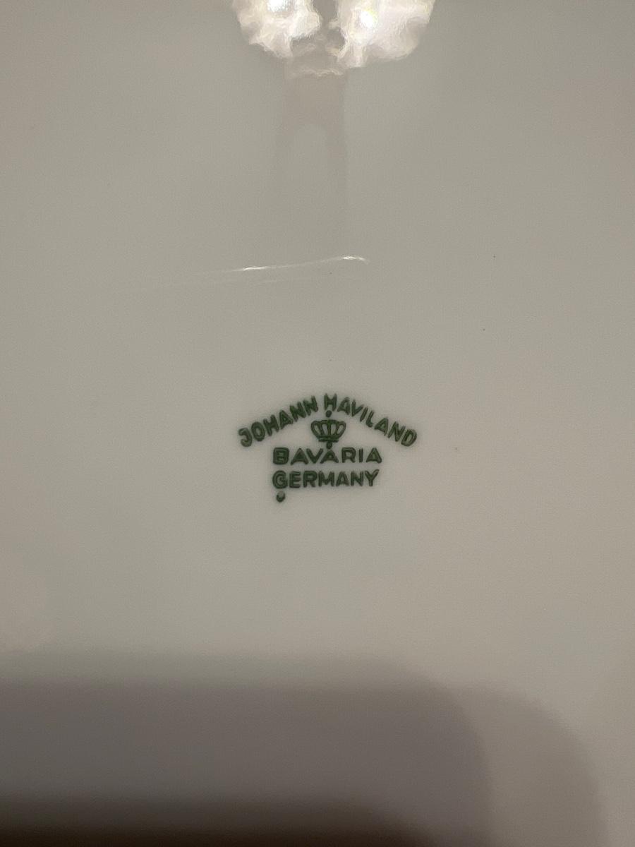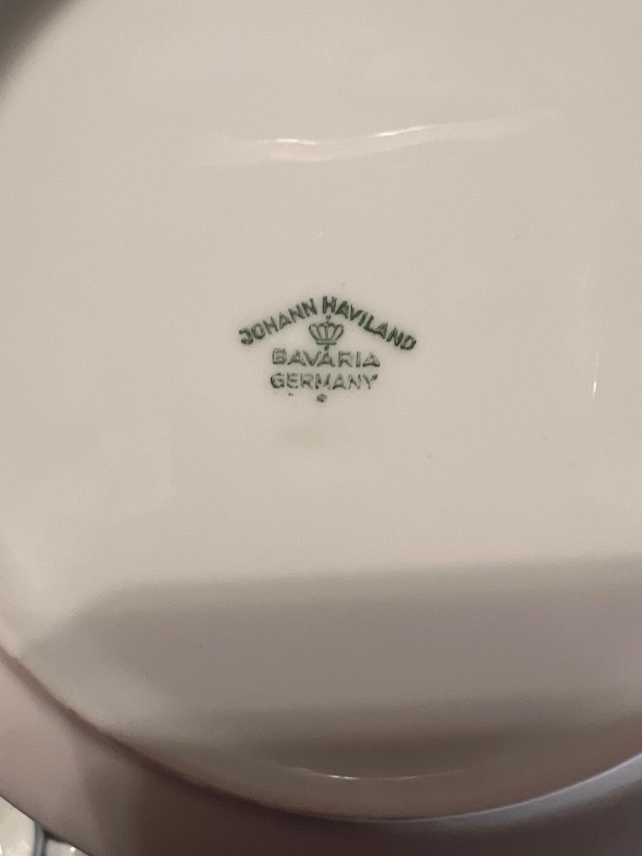 Johann Haviland 8 place setting set. 8 dinner plates, 8 saucers, 8 coffee cups, 8 bread and butter plates, 8 bowls. Then there are 4 dinner plates of a different blue flower pattern, also Johann Haviland Bavaria Germany brand.