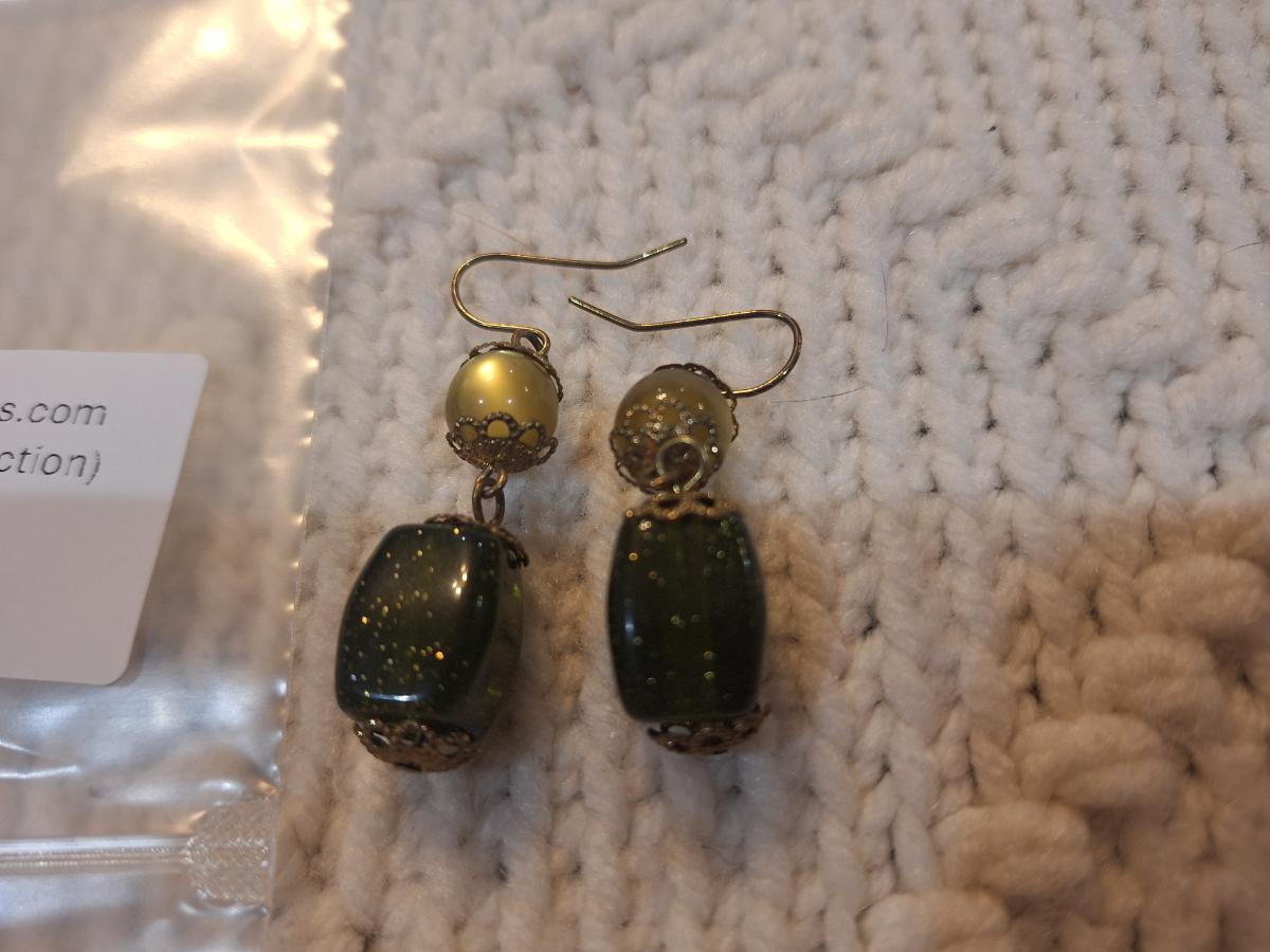 Green bead dangle earrings.- look through the auction, there is probably a necklace that these will match.