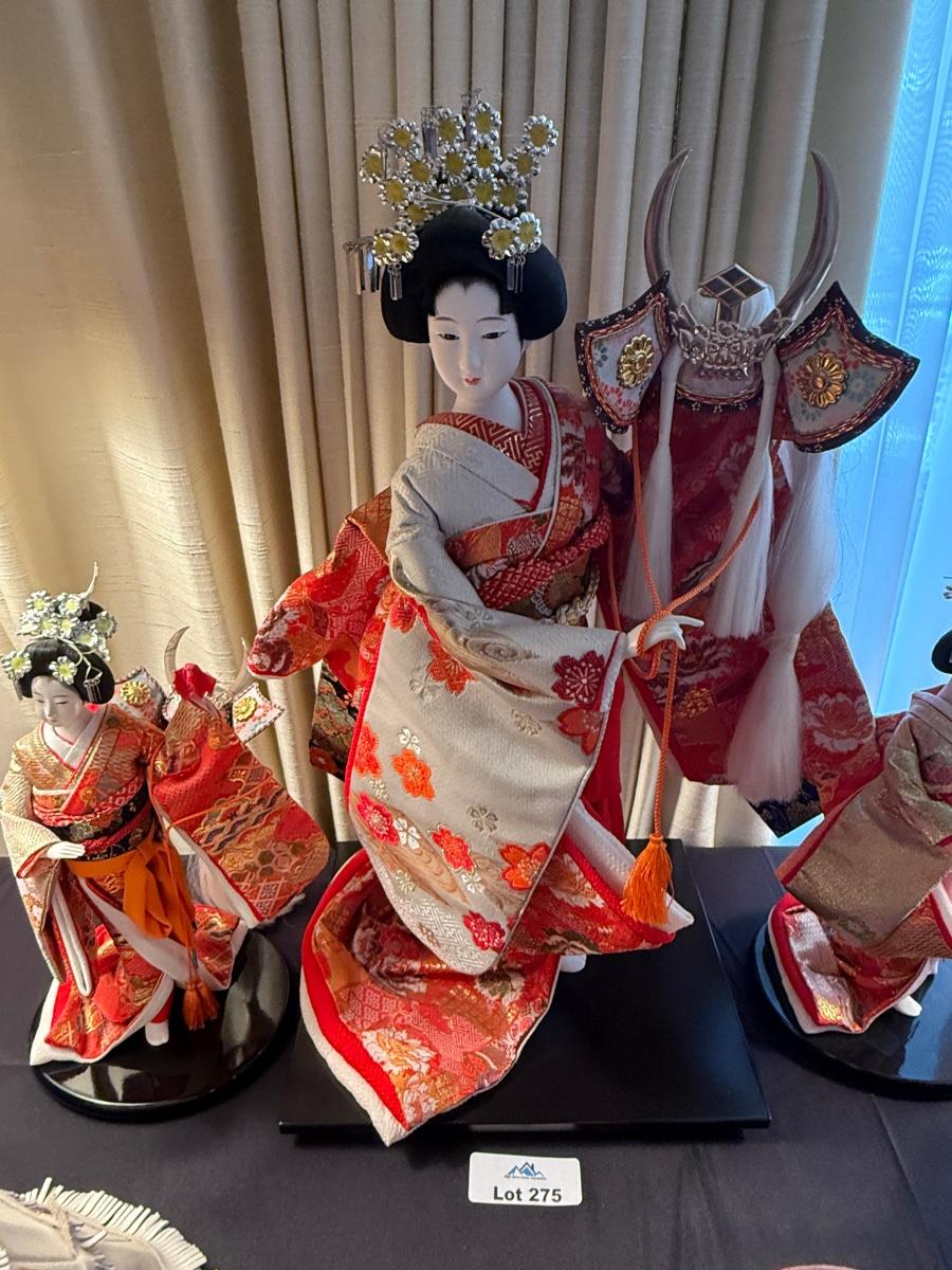 Group of 3 Japanese Geisha Girl dolls 22” one & 2 that are 13”