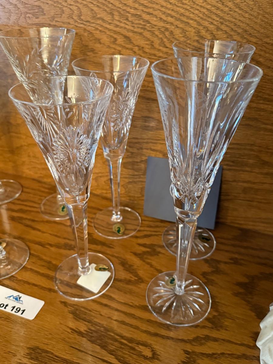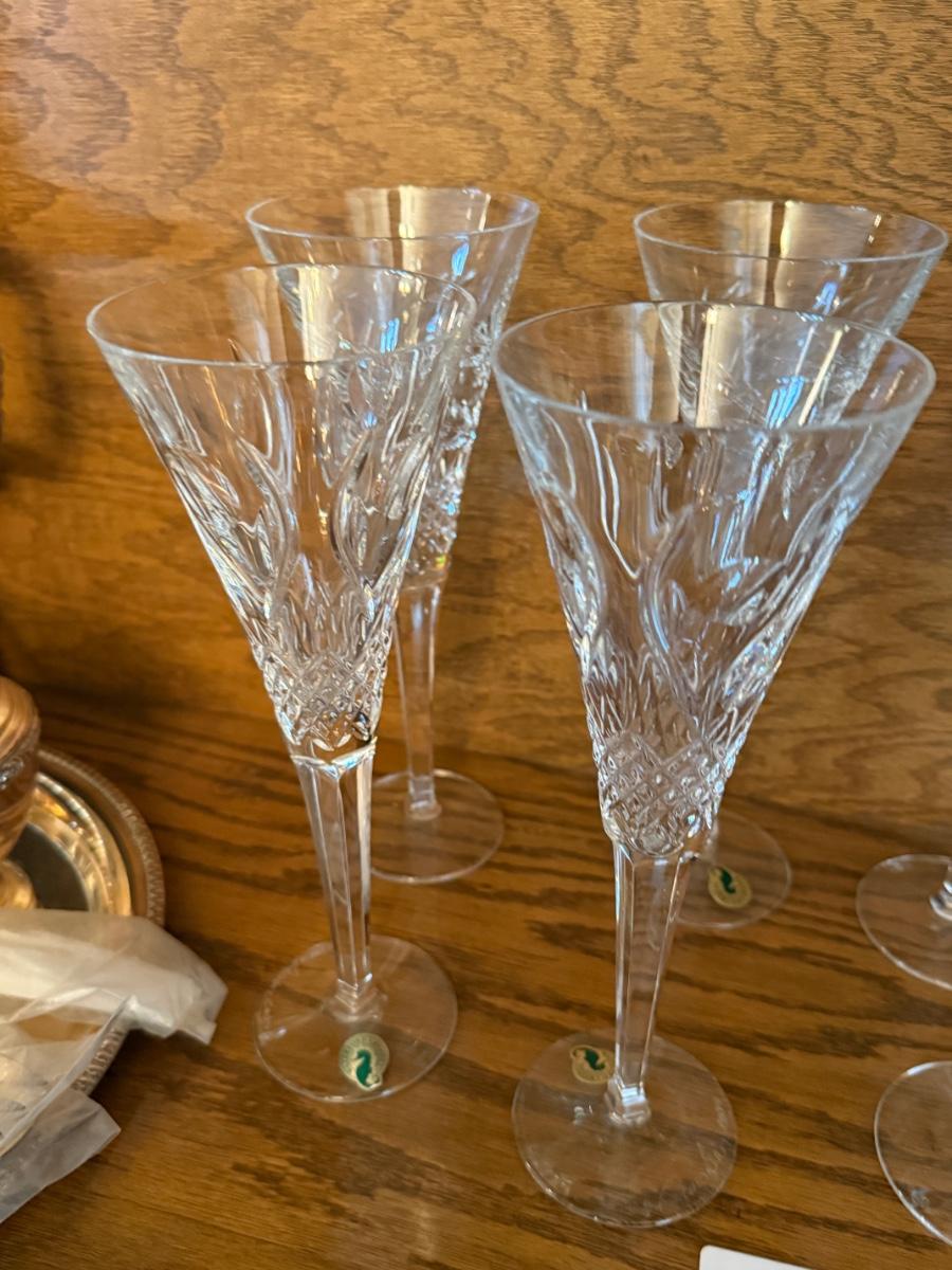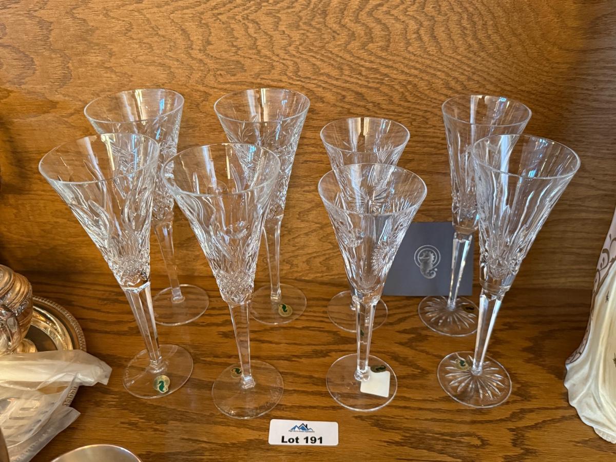 Group of 8 Waterford tall champagne flutes