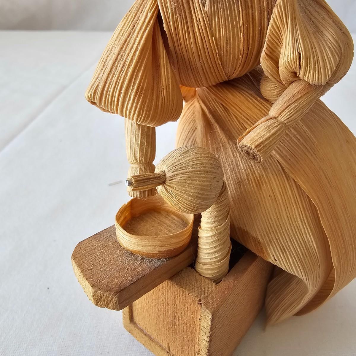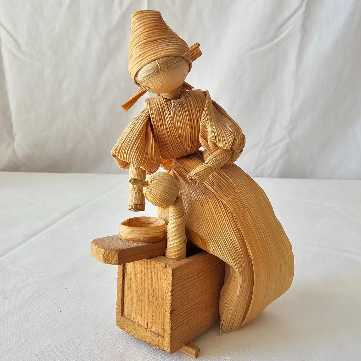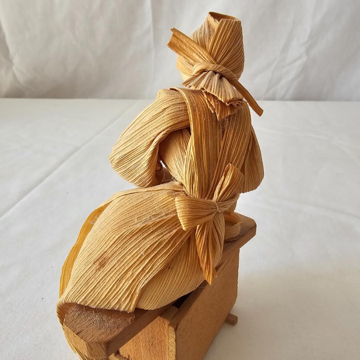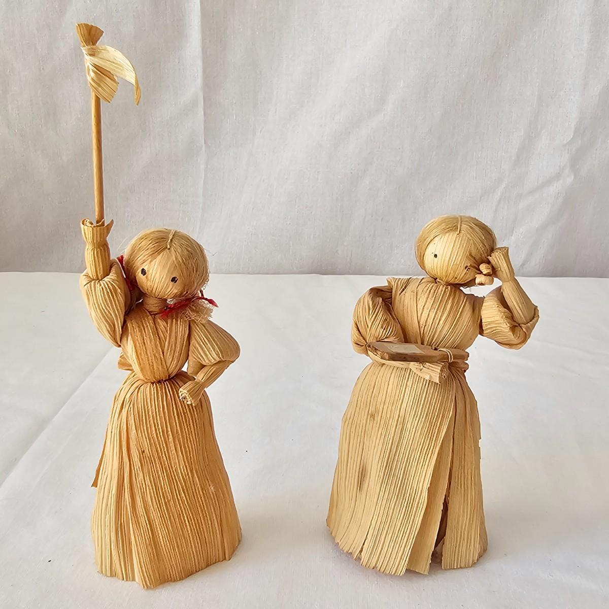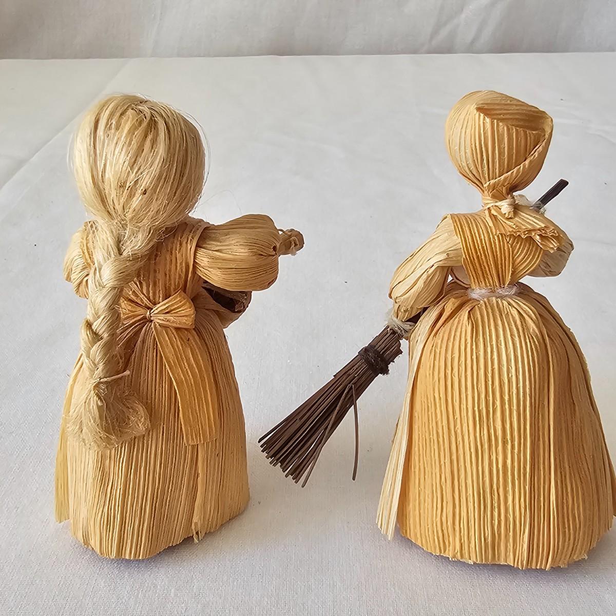 Seven delicate constructions of timeless past made from the husks of corn. A craft that has perseverd down through the ages. Appears to be a mother and youngsters in various tasks. Largest doll is 5.5" x 4" x 8"H, shortest is 2.5" x 1.5" x 3"H. Braids, twists and some facial expressions. See photos for details. Shipping available.